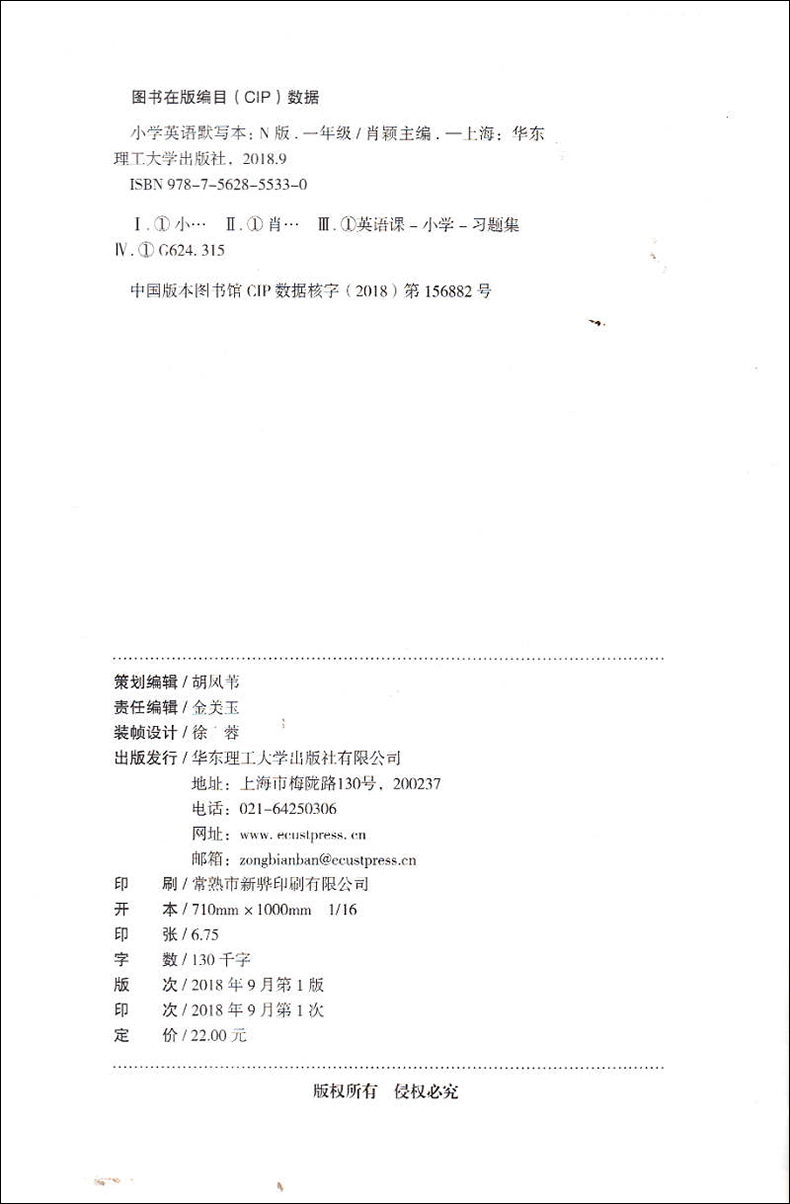 小学英语默写本(N版) 一年级/1年级全一册上海专版 与新课改教材同步配套小学英语书写规范单词短语句型课外复习辅导一日一练
