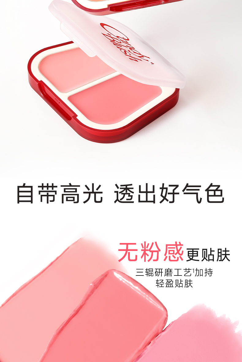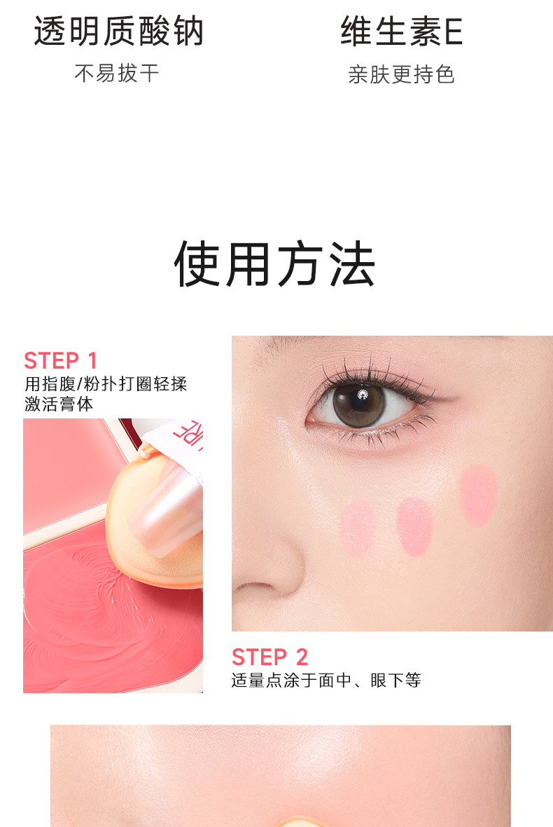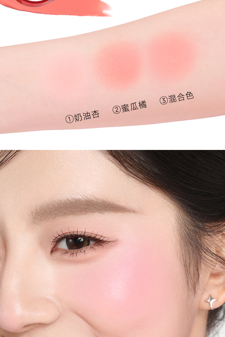 菲鹿儿双色腮红膏自然胭脂水润脸部提亮膨胀收缩色持久好气色便携粉扑一体