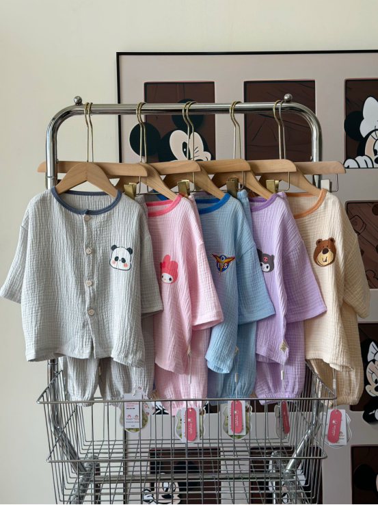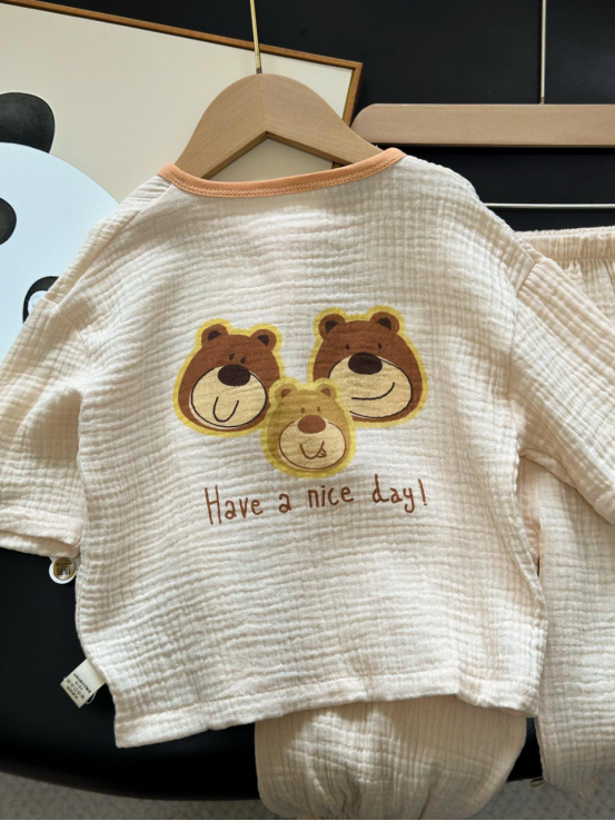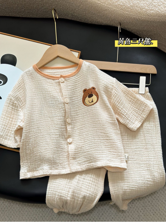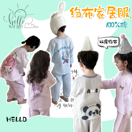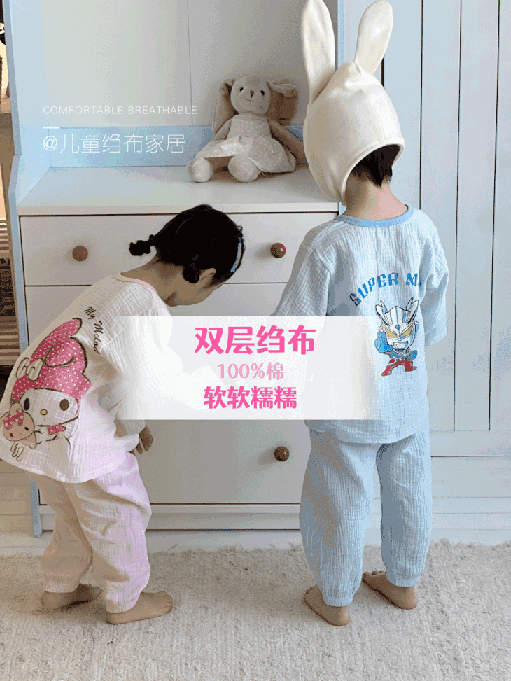 📣📣📣向全世界安利 双层绉纱空调服套装,100%纯棉➕双层绉纱❗婴儿肌般触感❗ 很多小宝宝衣服用的都是这个面料‼‼💪💪💪 ✅新型绉纱织造技术 吸湿透气💨 蓬松超超超超柔软☁️,亲肤 ‼️ ✅🅰️类一等品!,软糯舒适,云朵般的轻柔触感 ✅面料轻薄透气,吸湿排汗,一整天舒爽 ✅植物环保印花,可爱萌趣,男宝女宝都喜欢 简简单单搞定宝贝穿搭!居家外出都🉑!