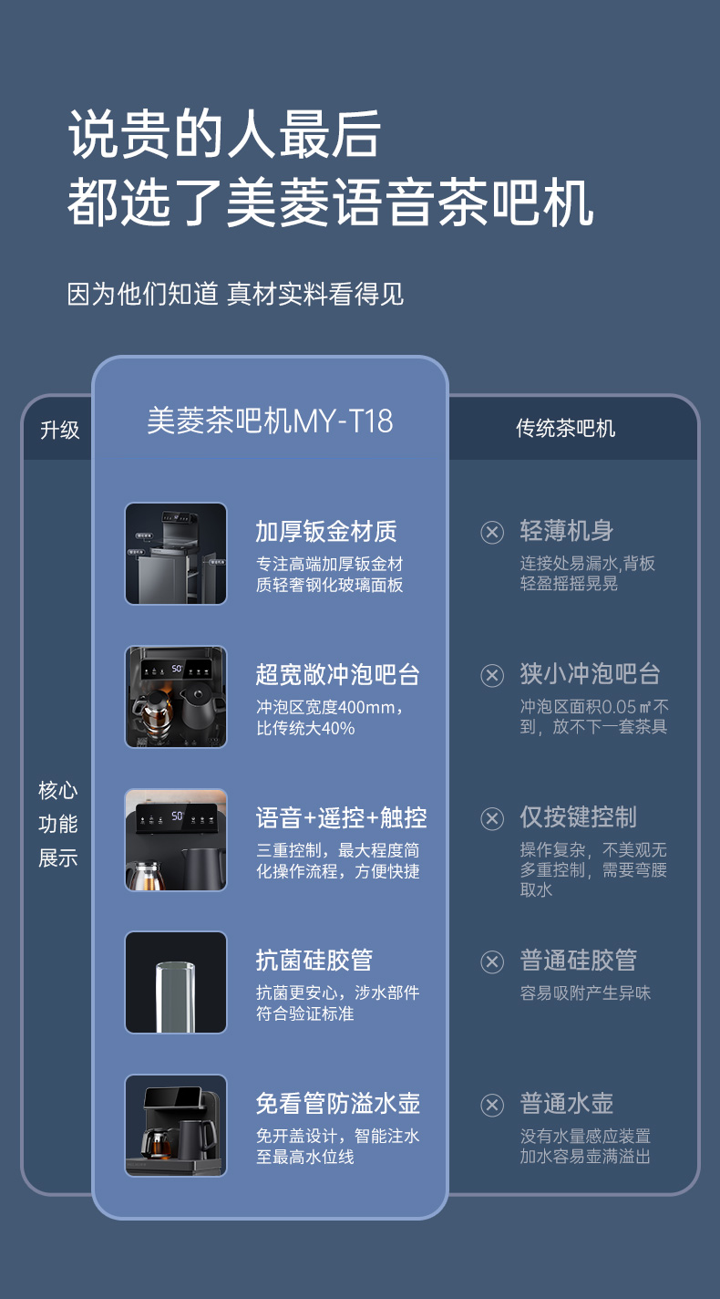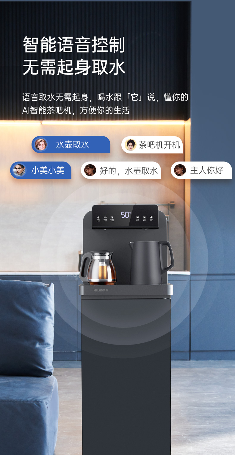 美菱茶吧机家用全自动温热型智能语音声控饮水机T18立柜式下置水桶24小时恒温保温