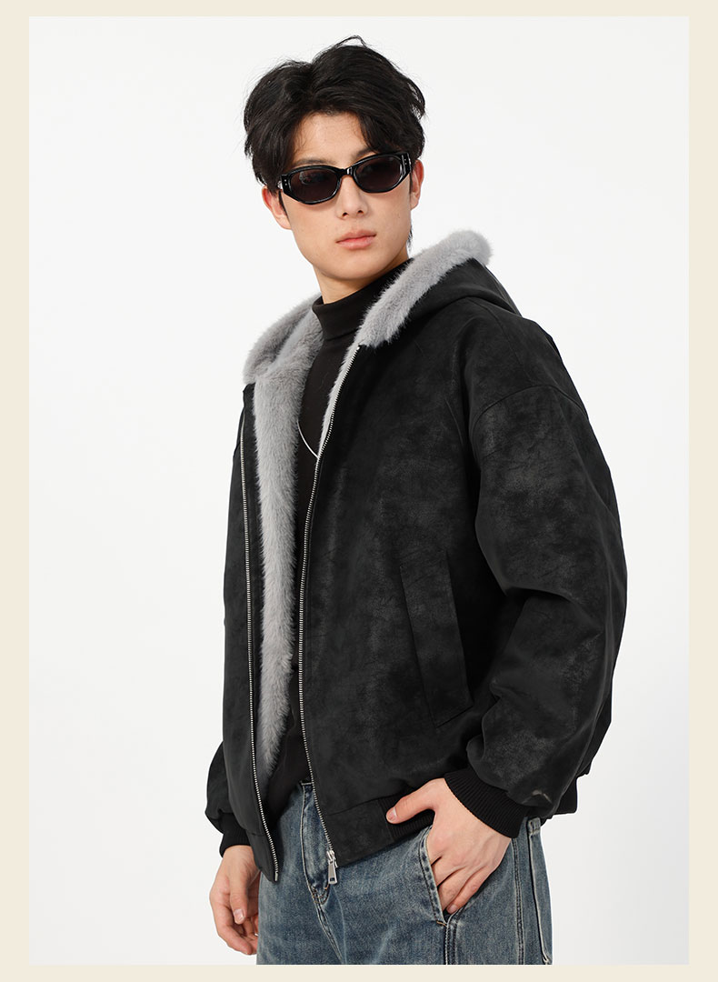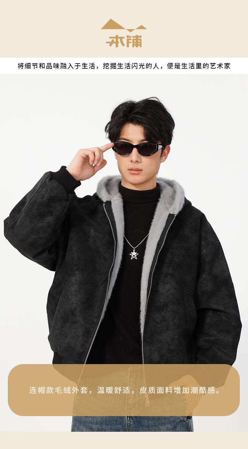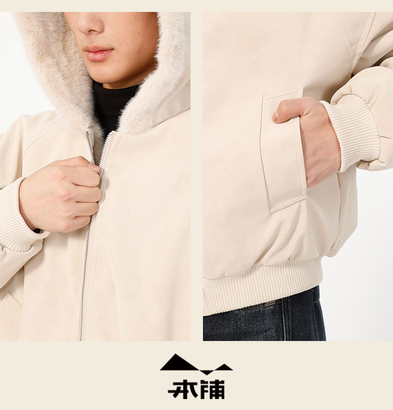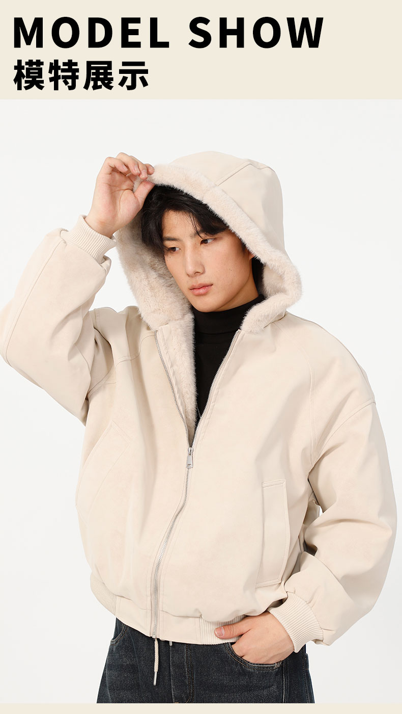 男款冬季加绒连帽毛边夹棉外套-纪念日百货门店同款168194128