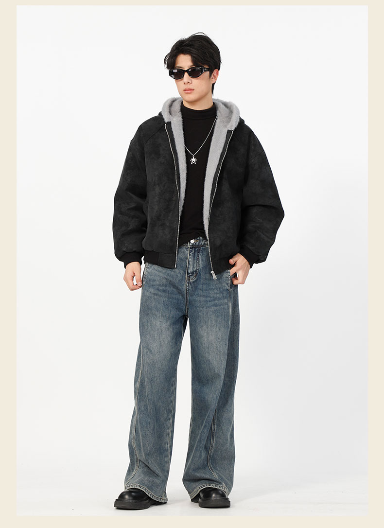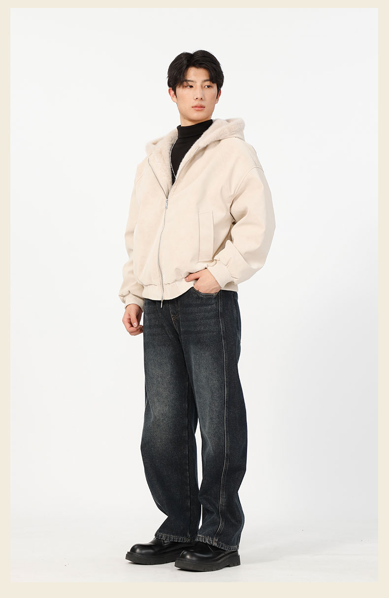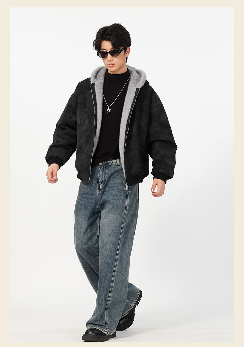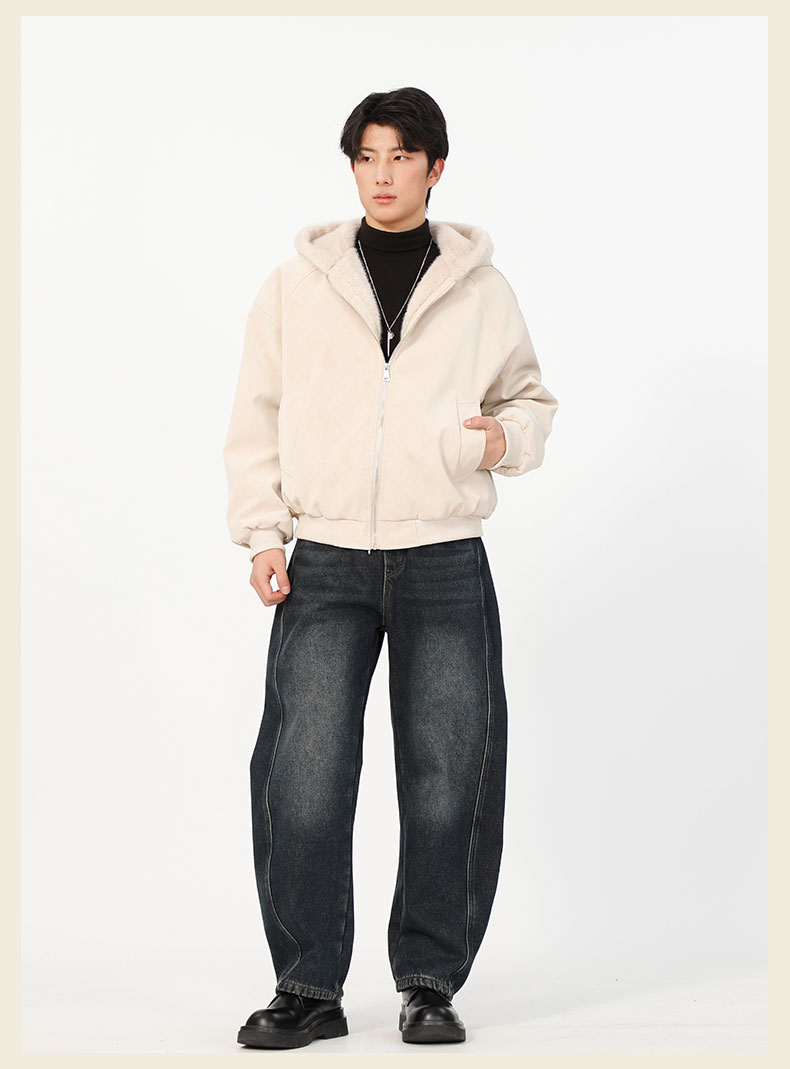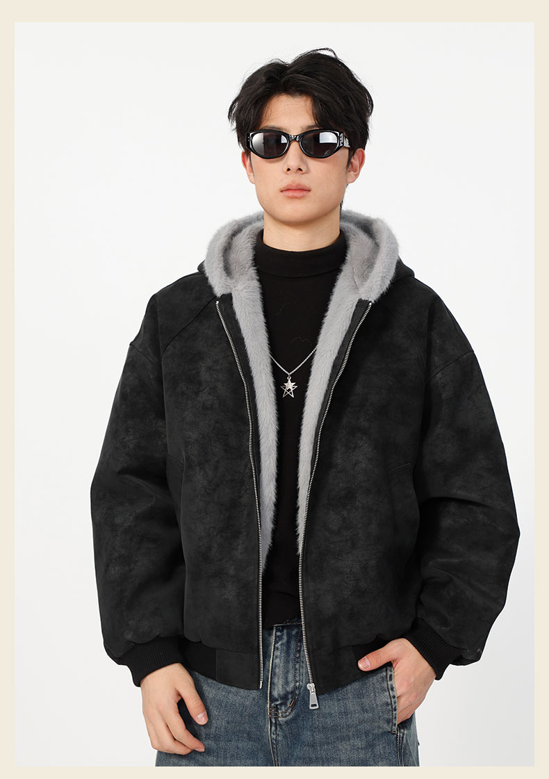 男款冬季加绒连帽毛边夹棉外套-纪念日百货门店同款168194128