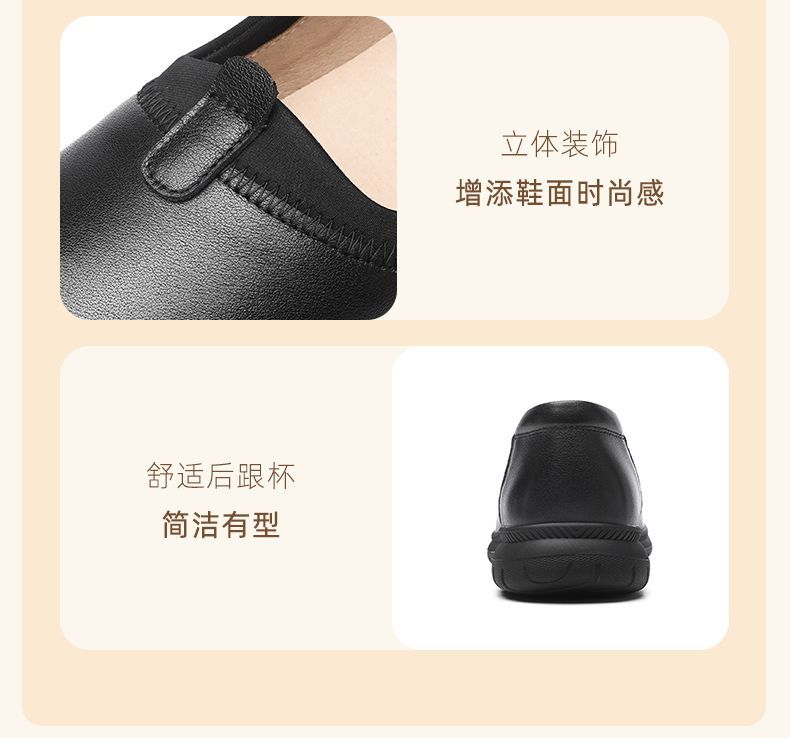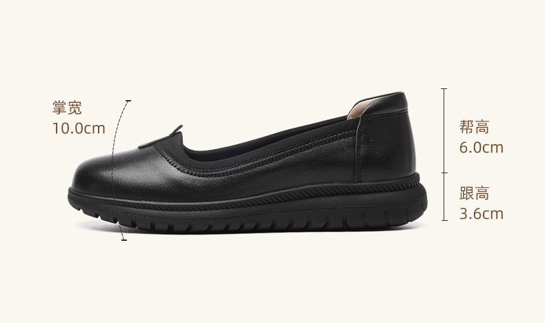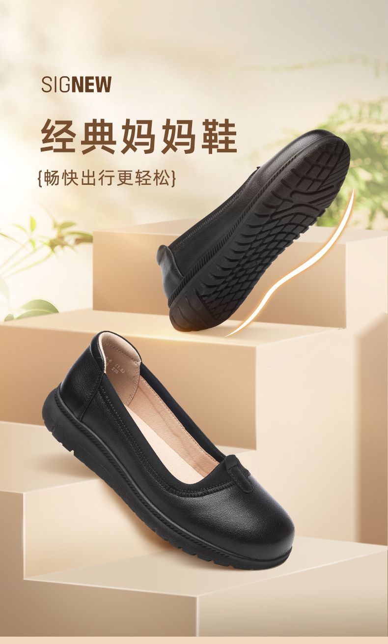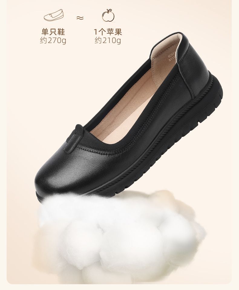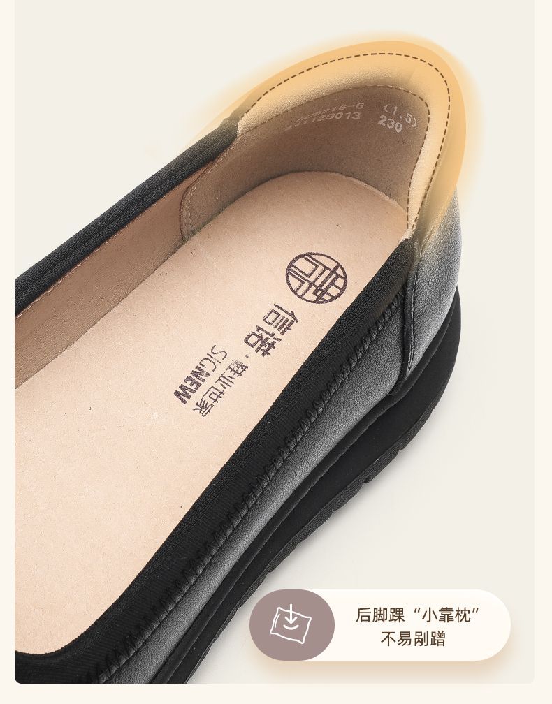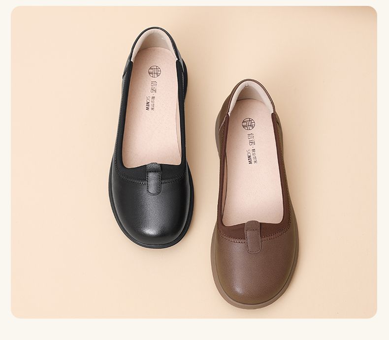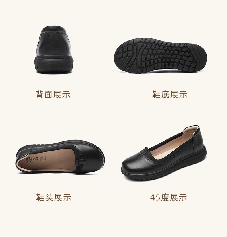 信诺真皮舒适妈妈工作鞋圆头软底平底职业酒店舒适黑色上班皮鞋女5C5216-6