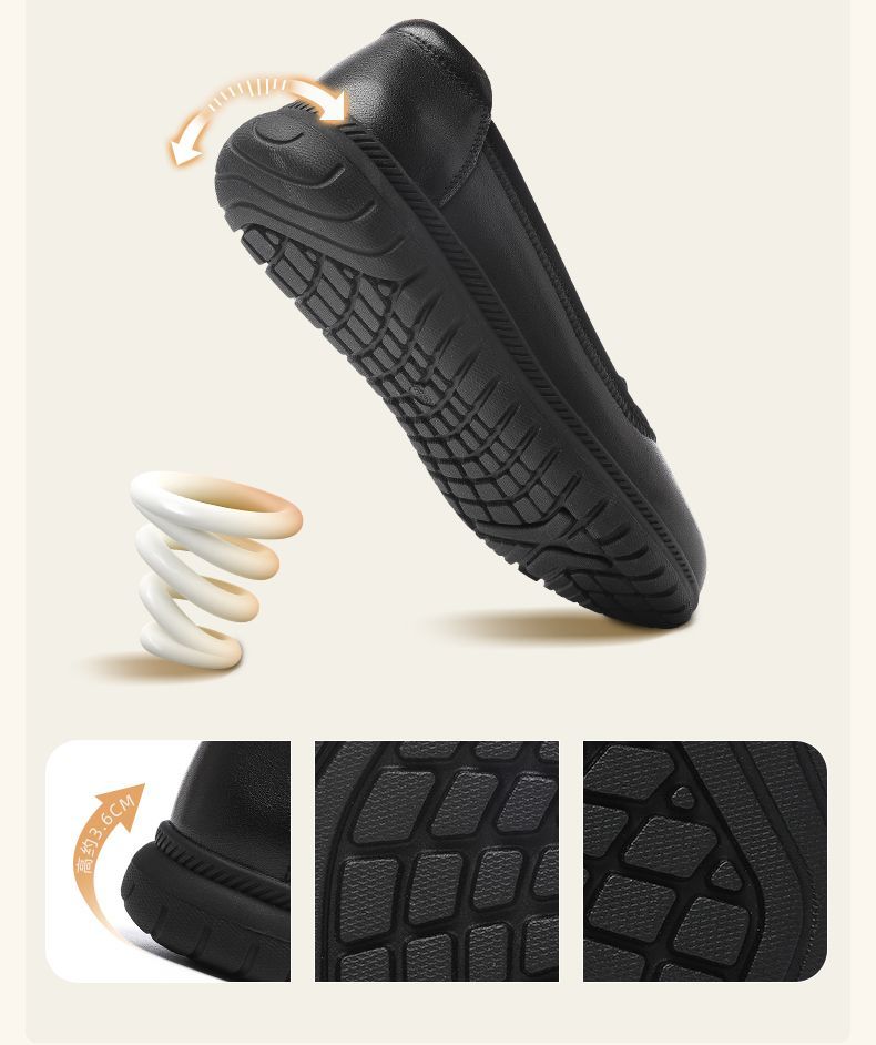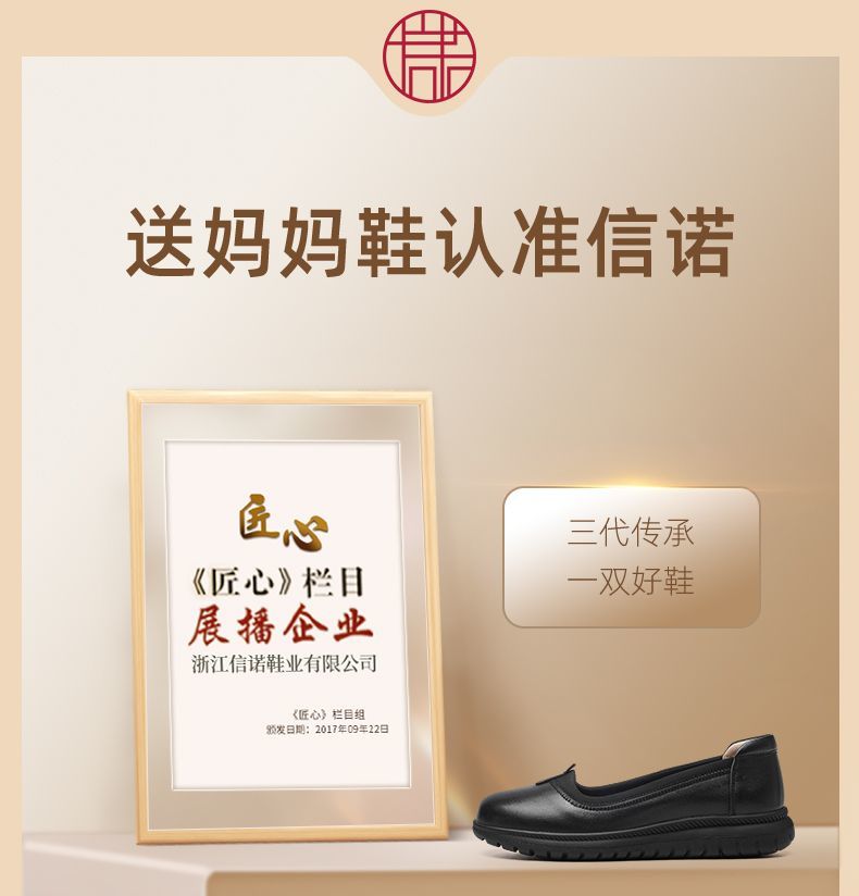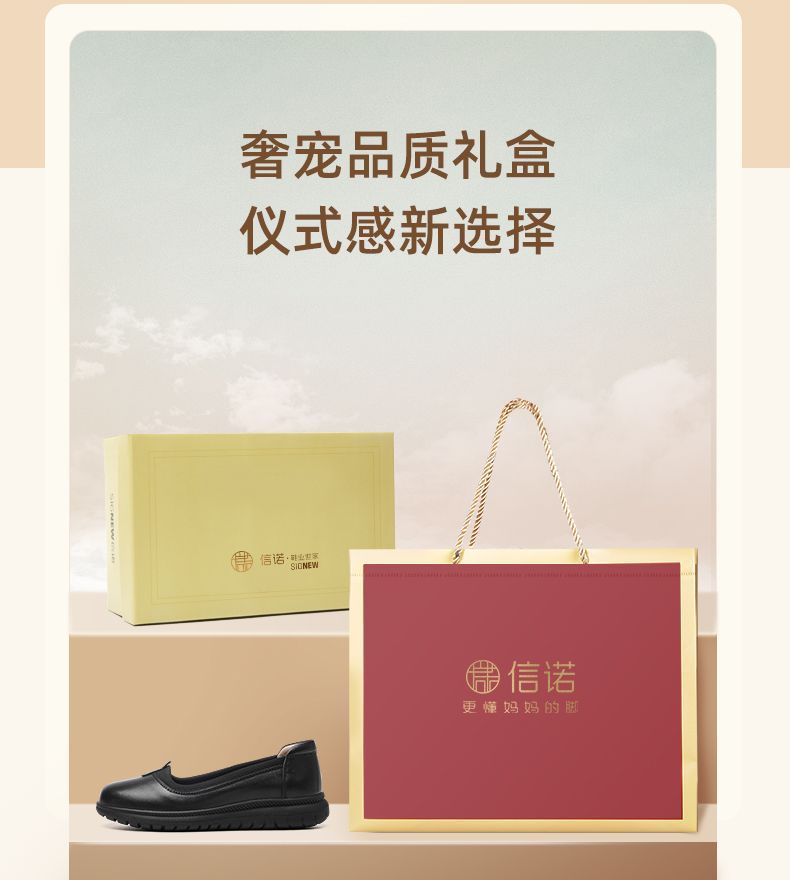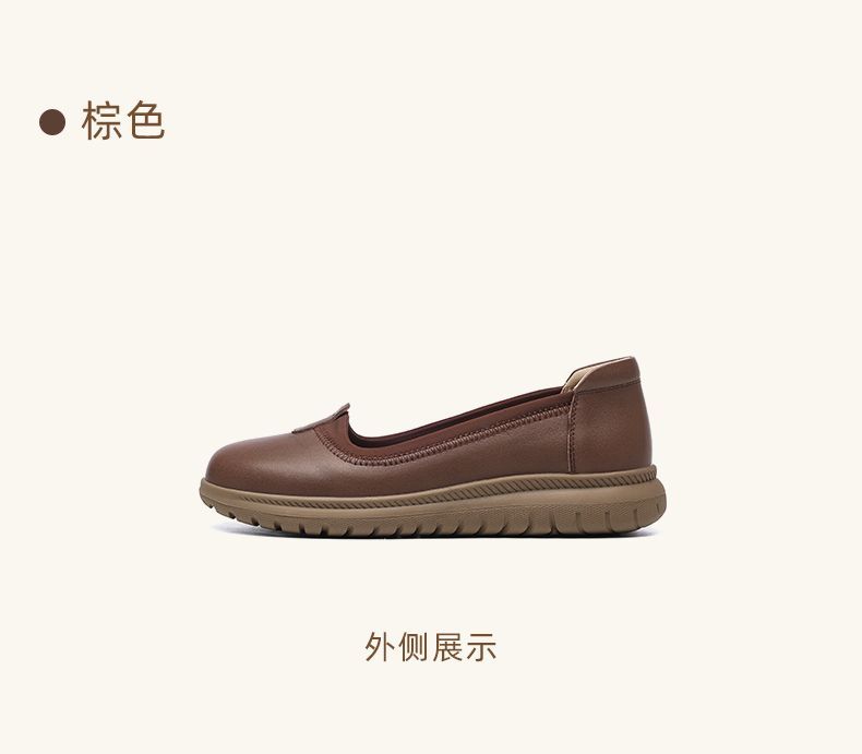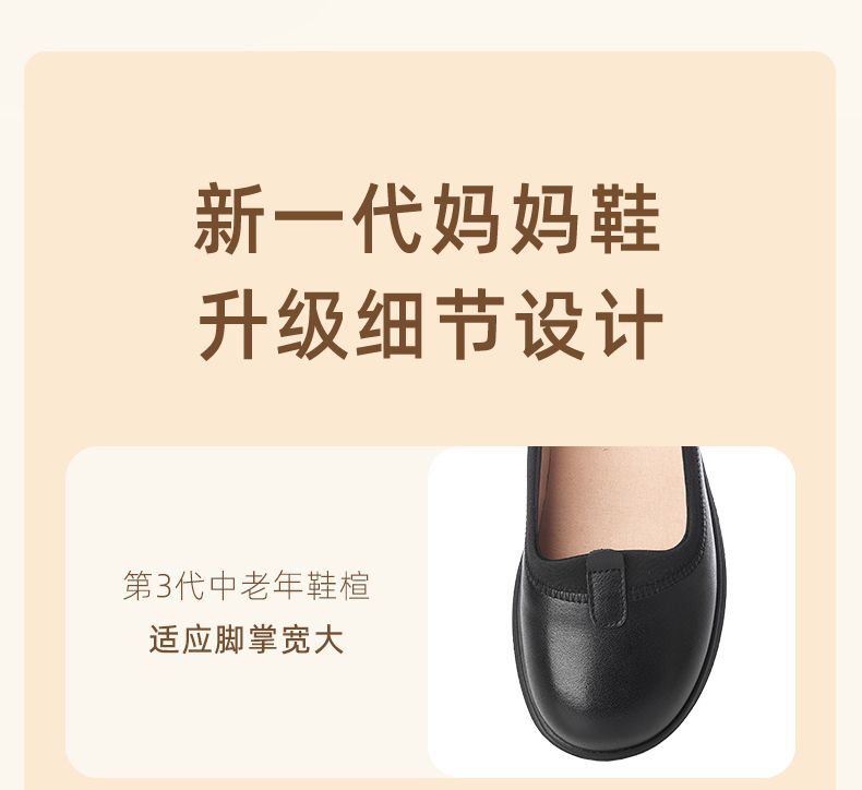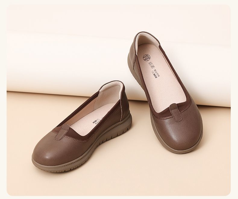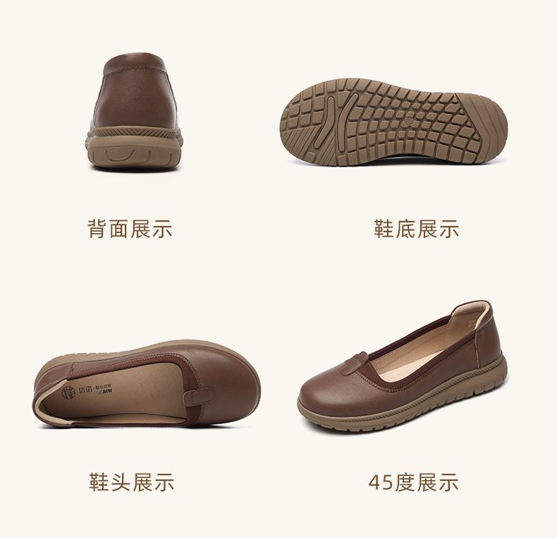 信诺真皮舒适妈妈工作鞋圆头软底平底职业酒店舒适黑色上班皮鞋女5C5216-6