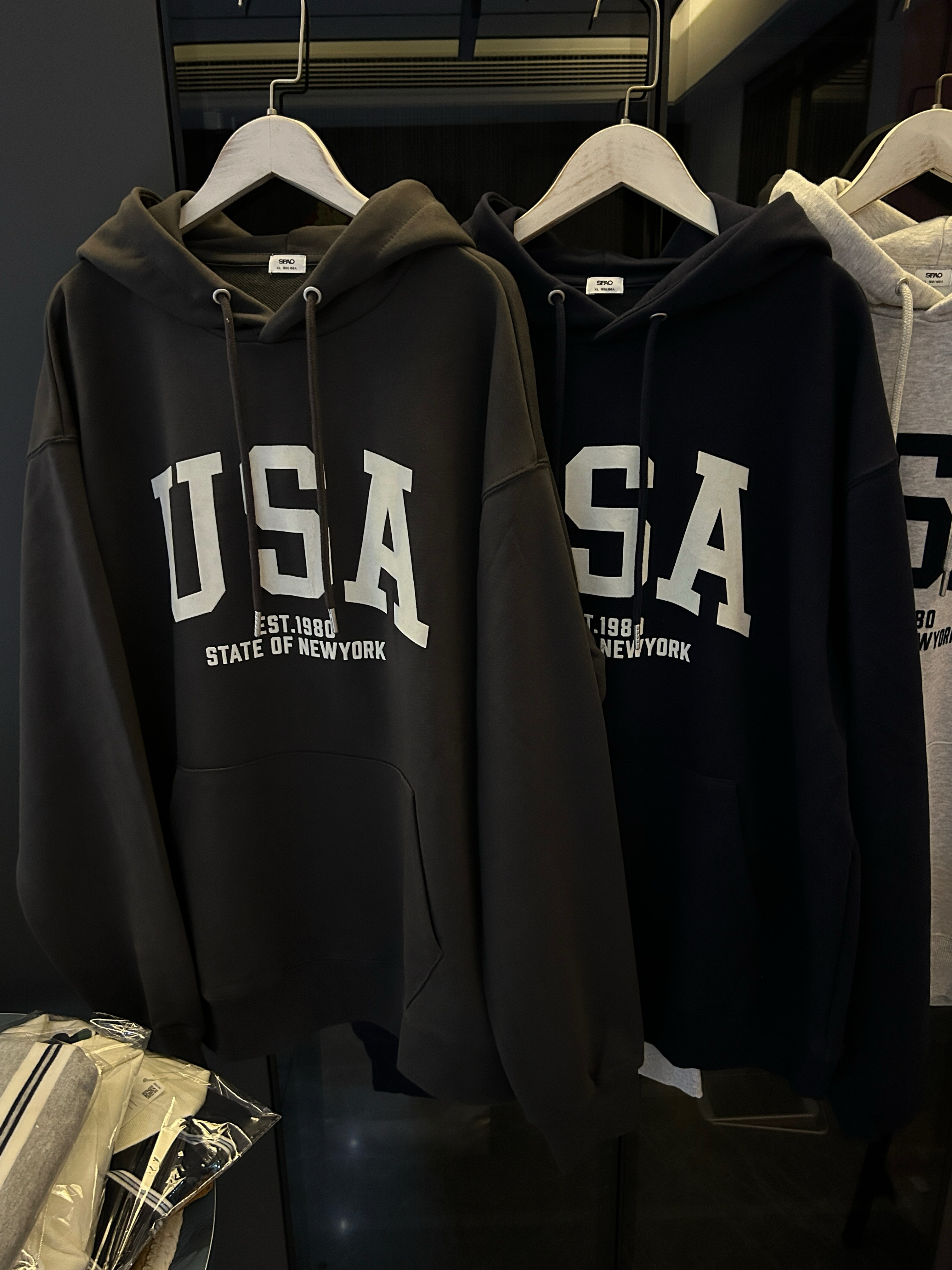 去韩国的订单,sp* 纯元,官网最新款!休闲 美式 usa 徽标字母 植绒 图案 男女同款 学院风 宽松 连帽 卫衣~