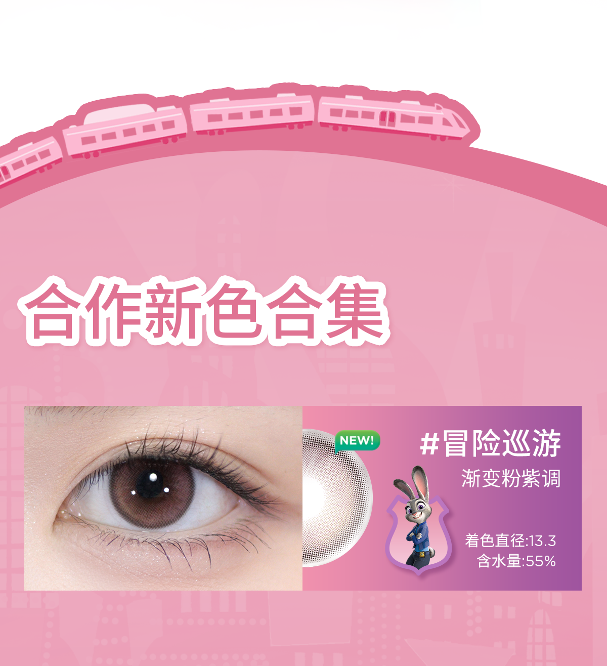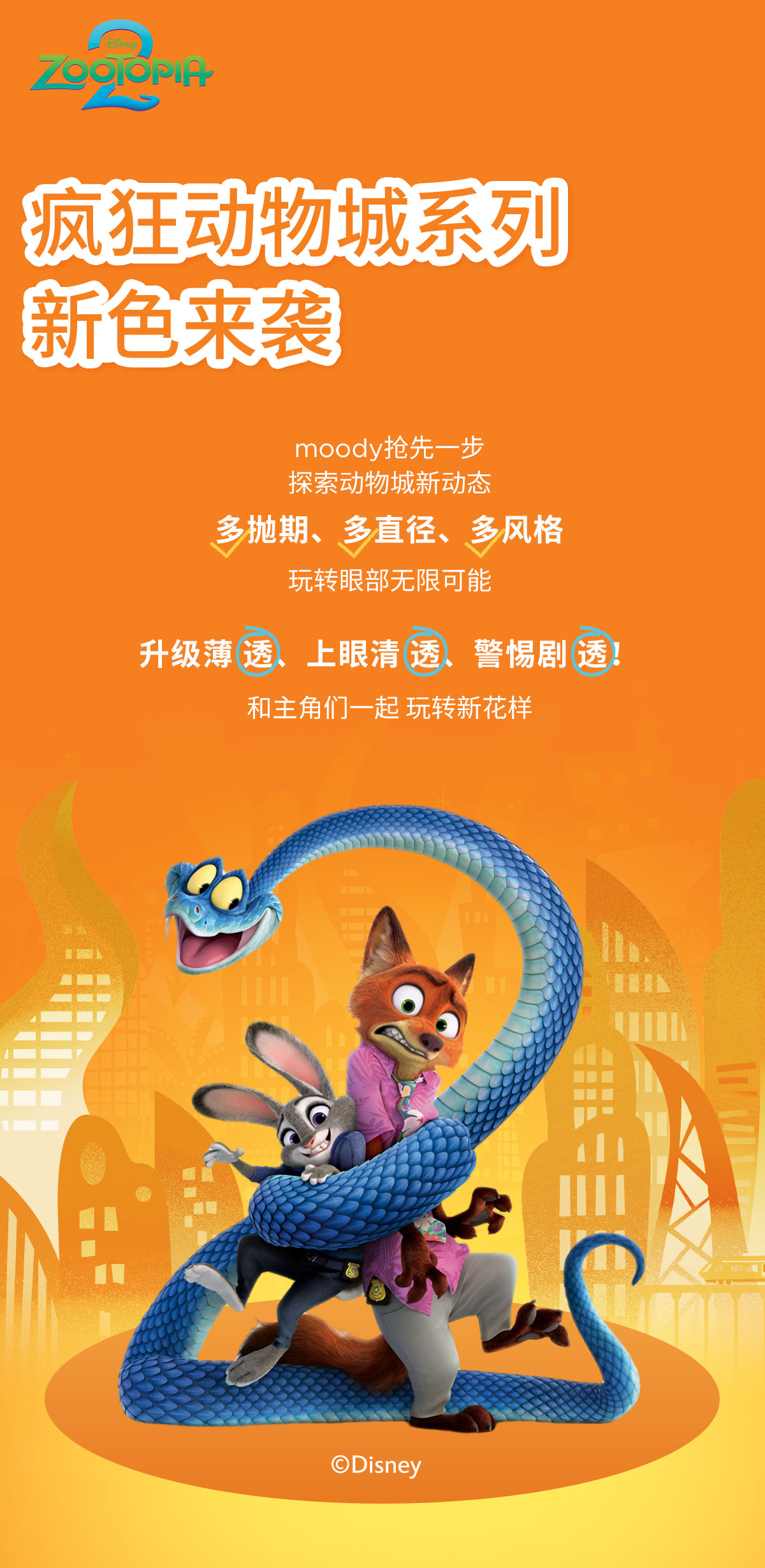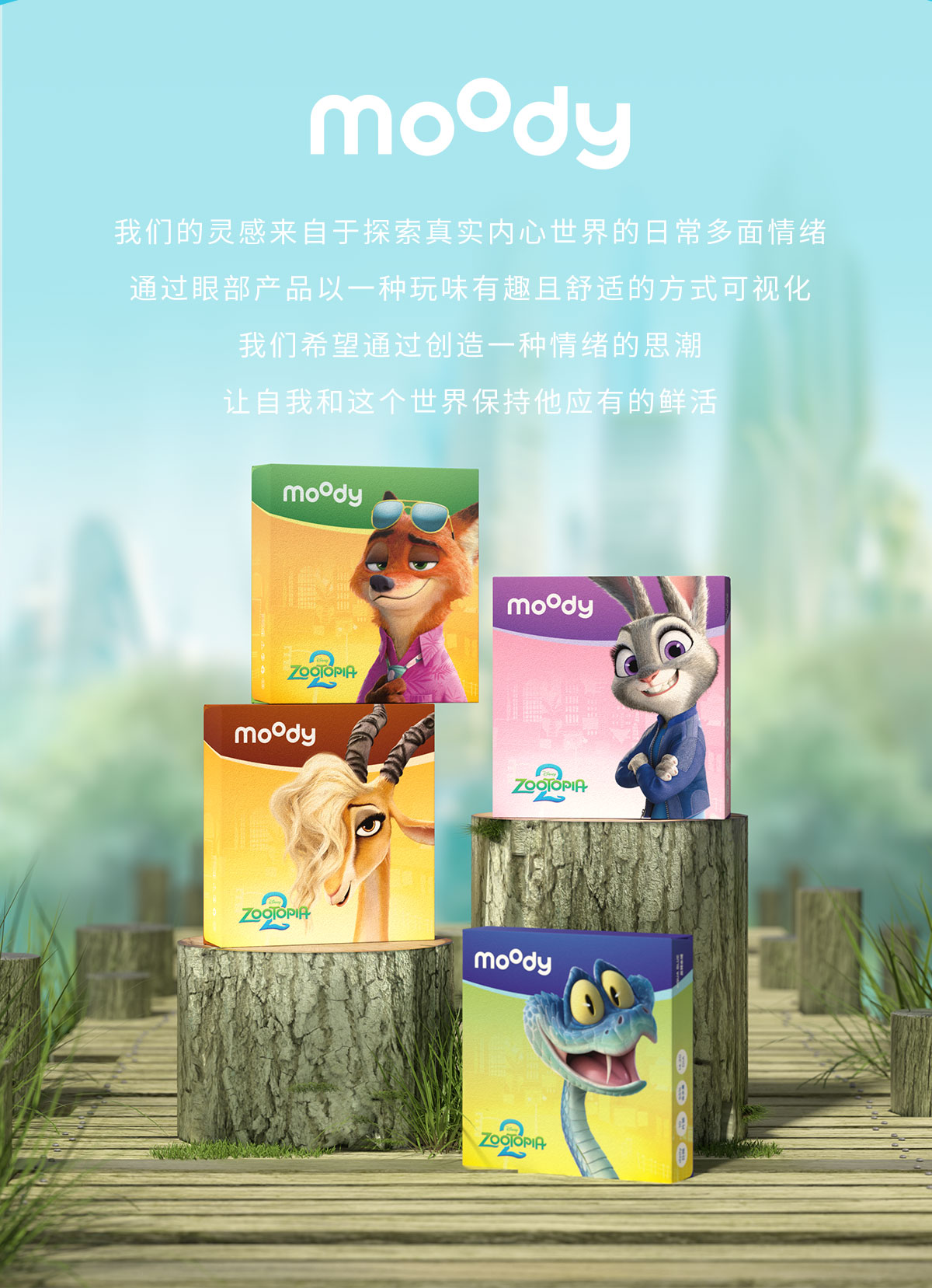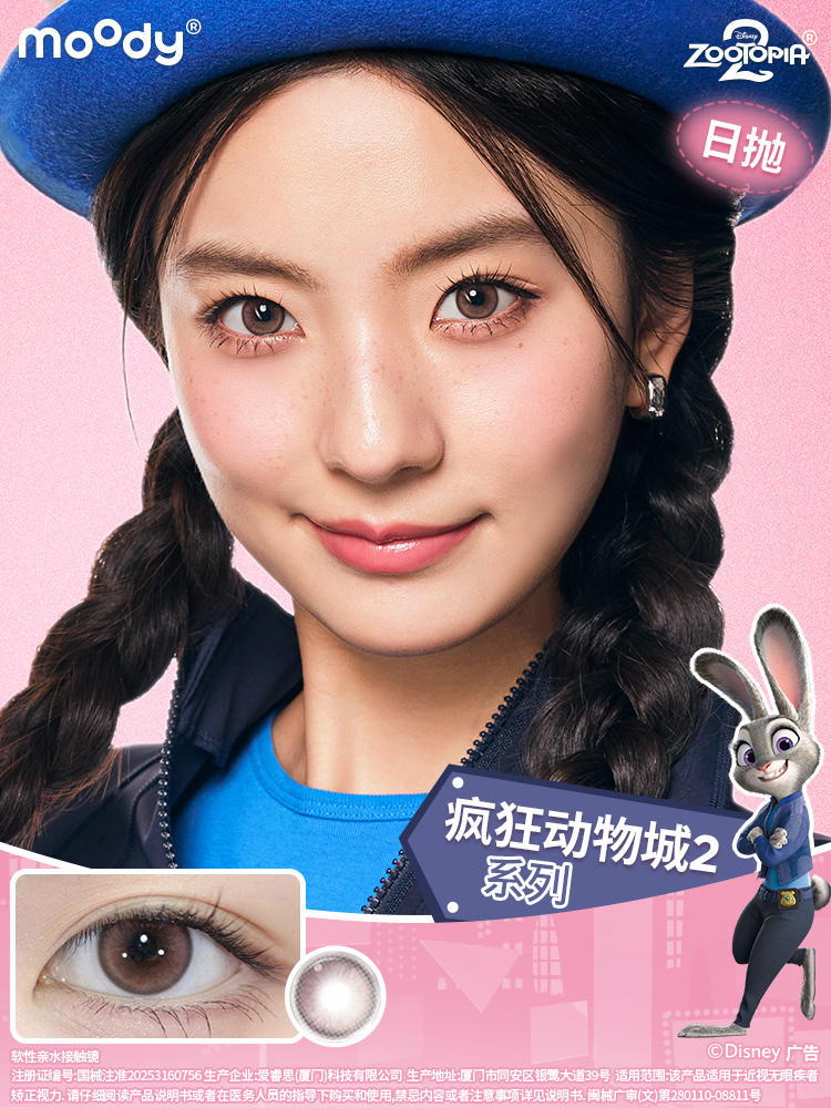 moody美瞳日抛疯狂动物城2少女小直径素颜10片合作自然冒险巡游朱迪粉彩色隐形眼镜
