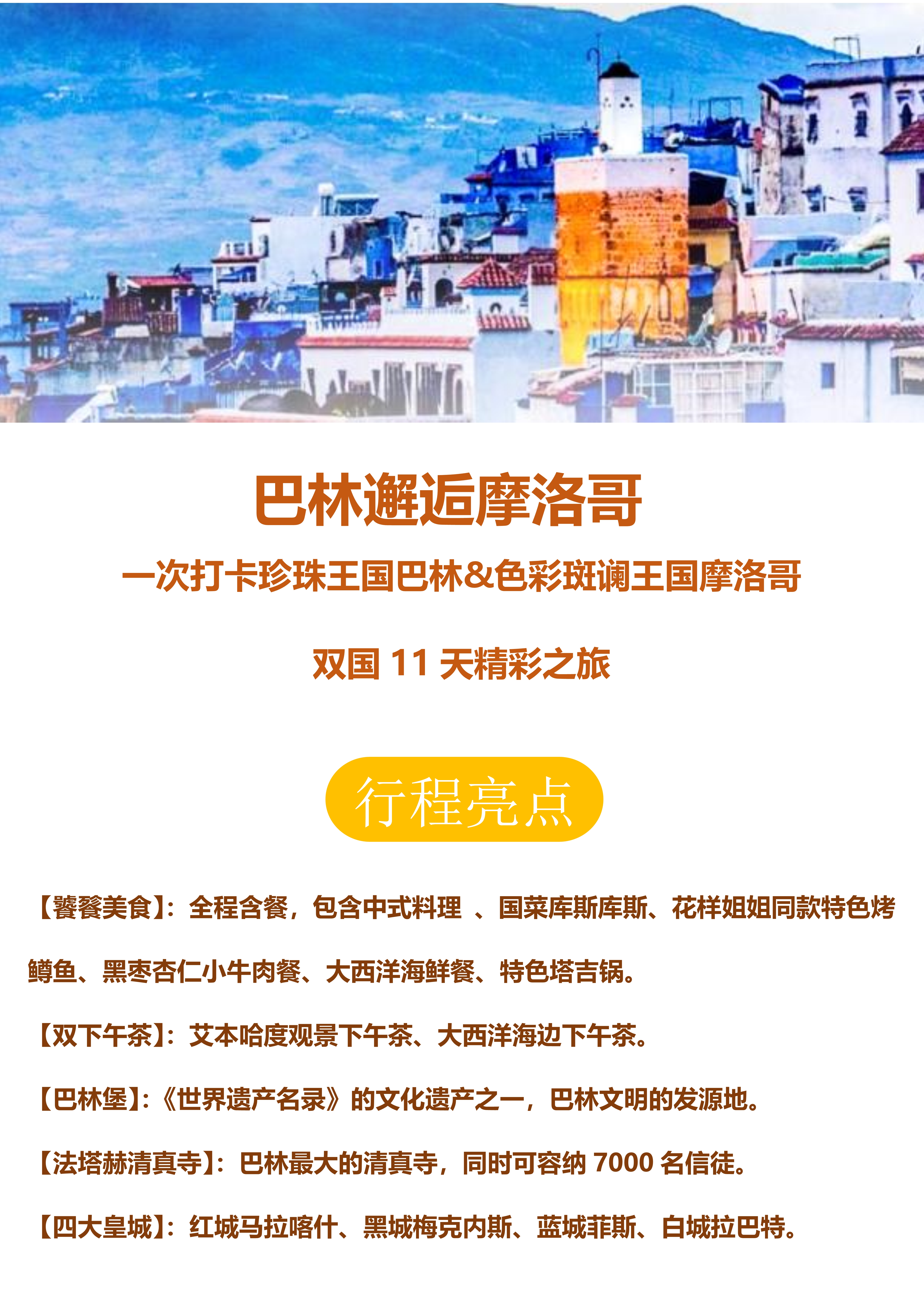 【巴林邂逅摩洛哥】 双国11天精彩之旅