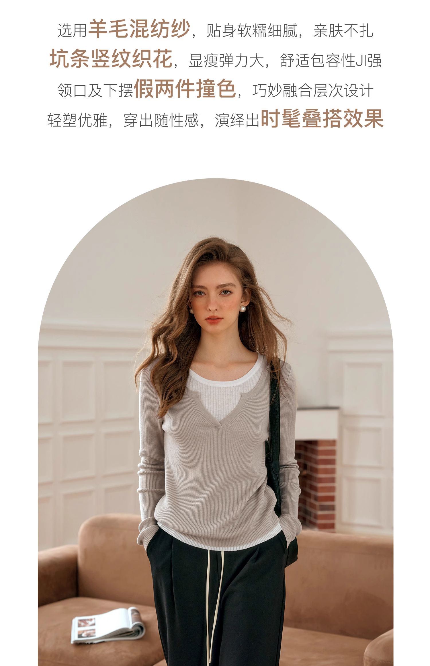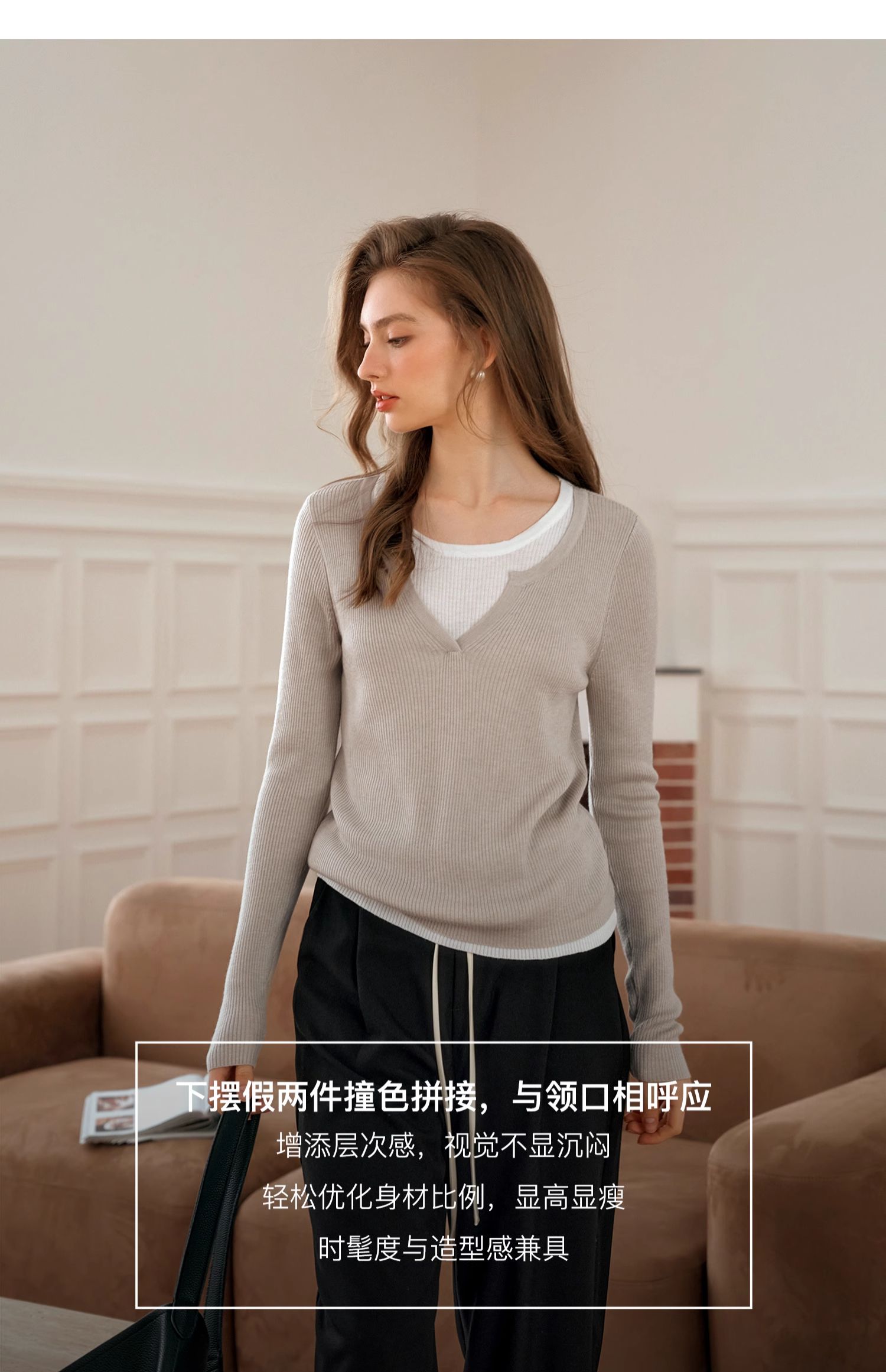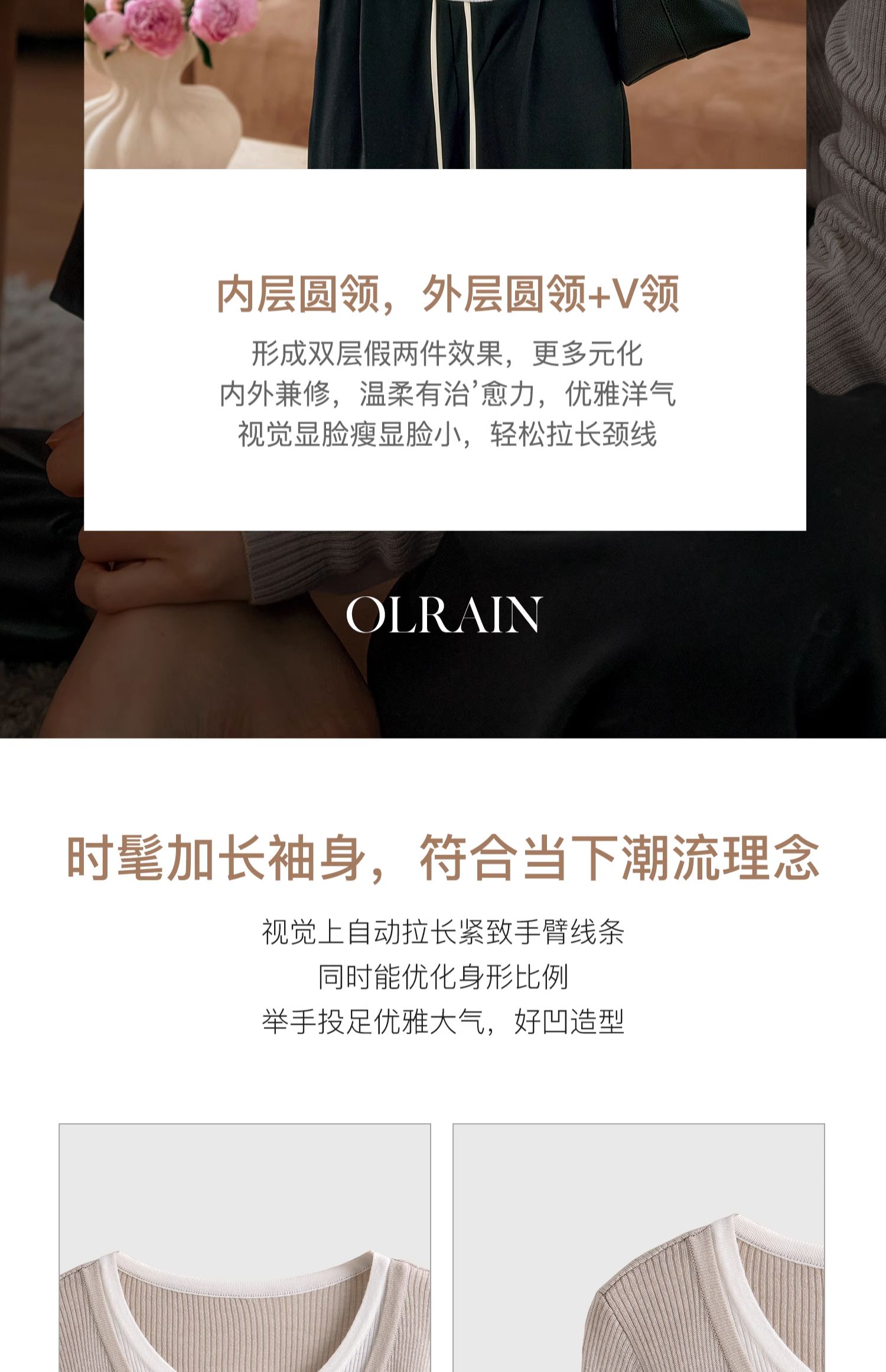 OLrain欧芮儿法式假两件针织衫女早秋2024年新款显瘦薄款套头上衣