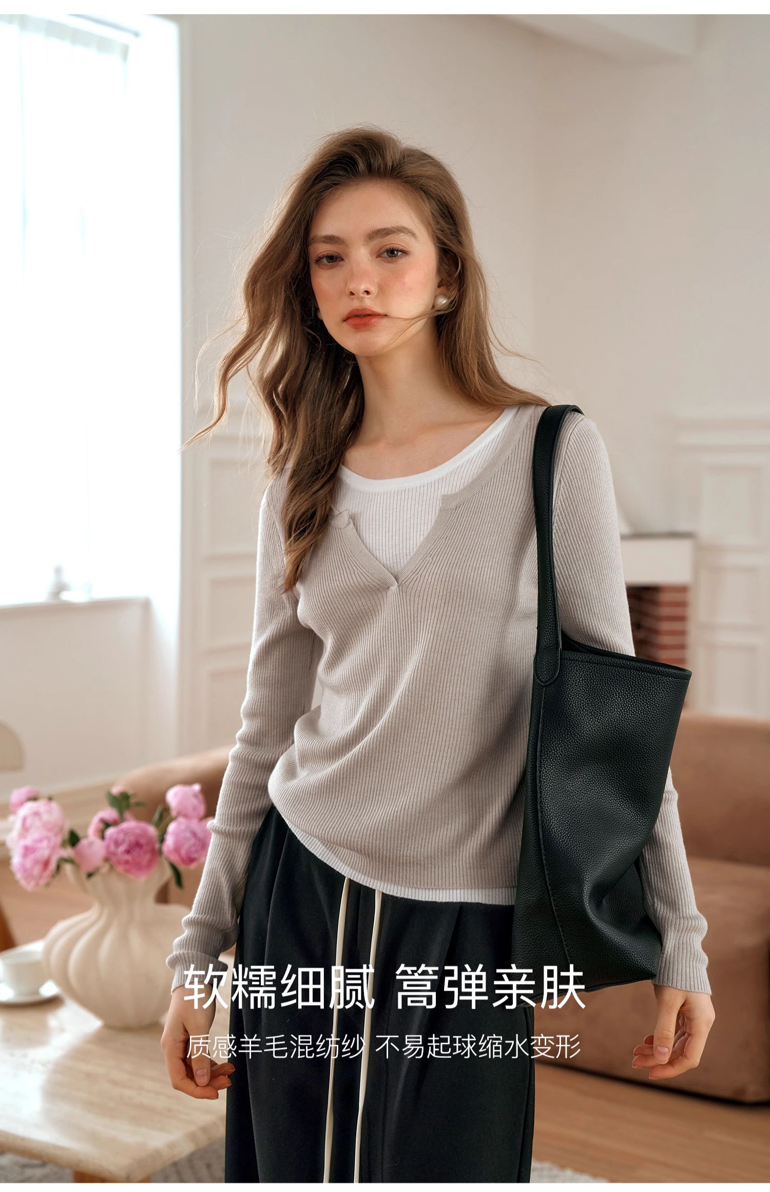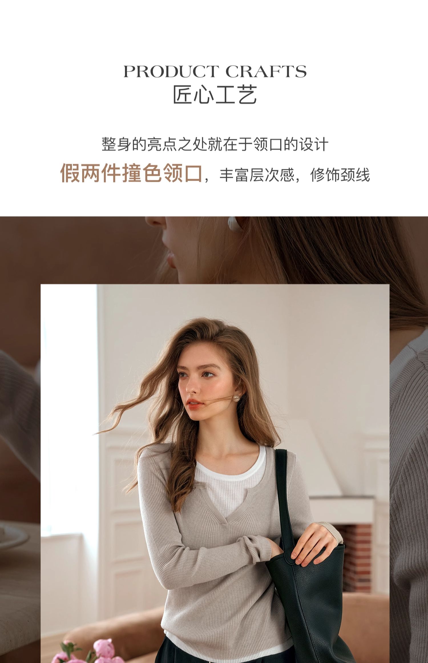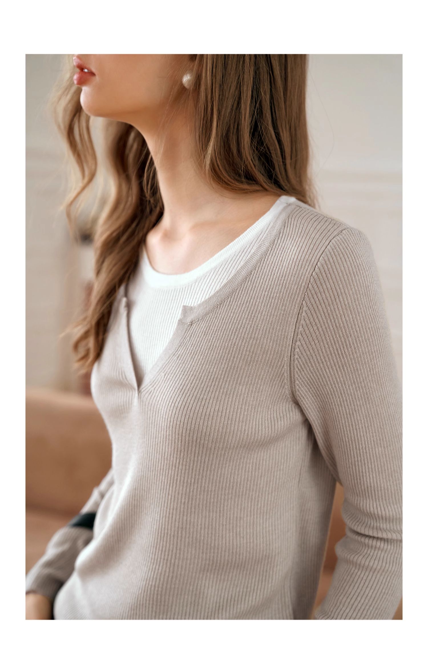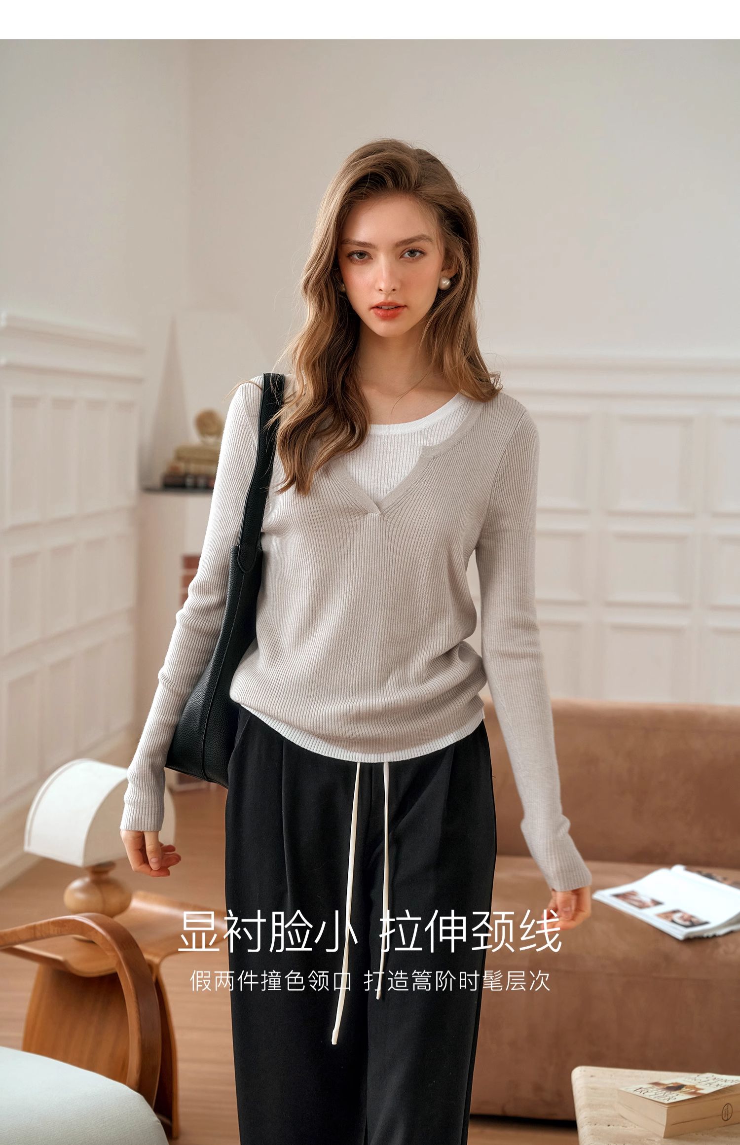 OLrain欧芮儿法式假两件针织衫女早秋2024年新款显瘦薄款套头上衣