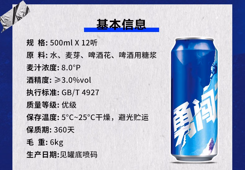 雪花啤酒 8°勇闯天涯500ml*1听/6听/12听整箱