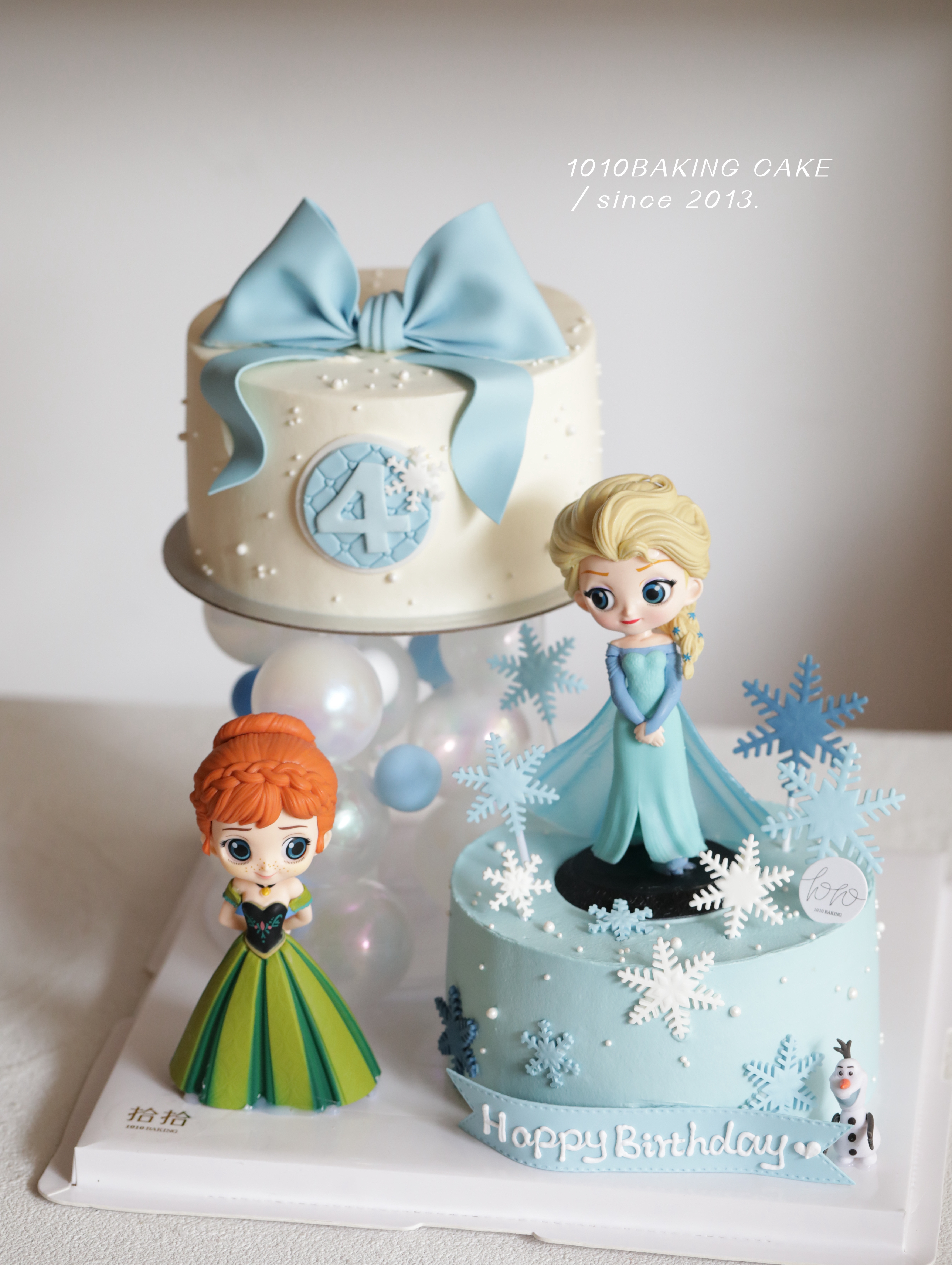 「冰雪奇缘·艾莎安娜」岁数可改·悬浮蛋糕·翻糖巧克力·100%动物奶油(附图6寸+6寸双层·提前4天预订)