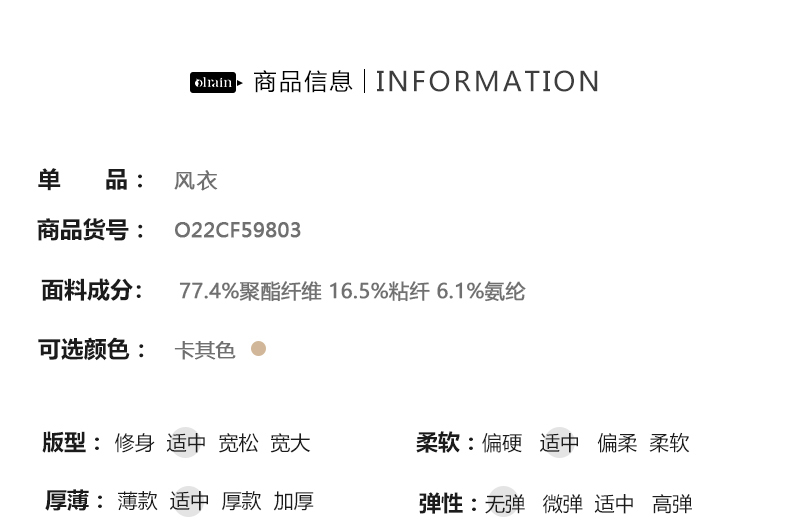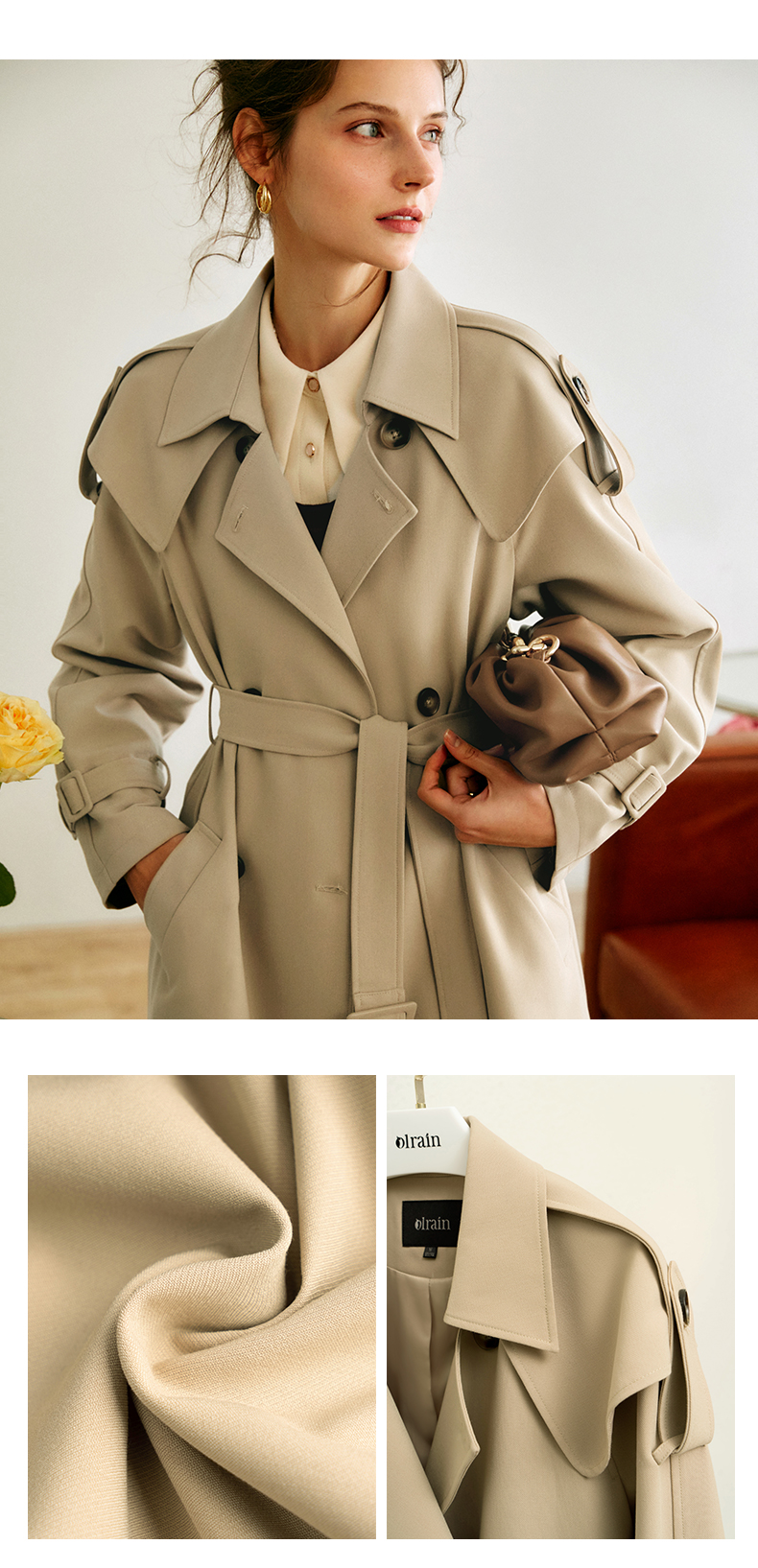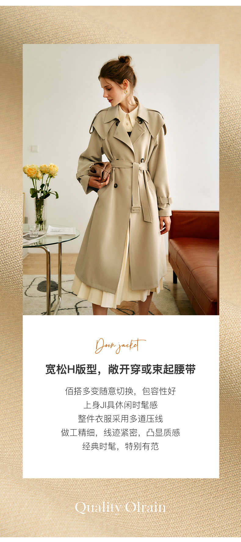 欧芮儿卡其色风衣外套女春季2022新款法式优雅宽松英伦设计感大衣