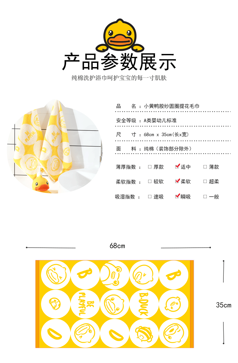 B.Duck小黄鸭股纱提圆圈毛巾68*35cm 772