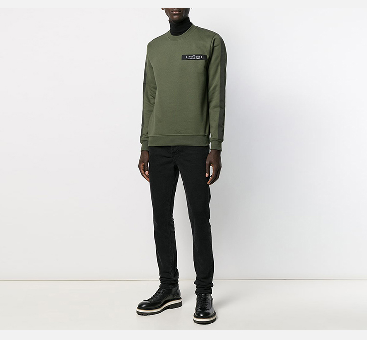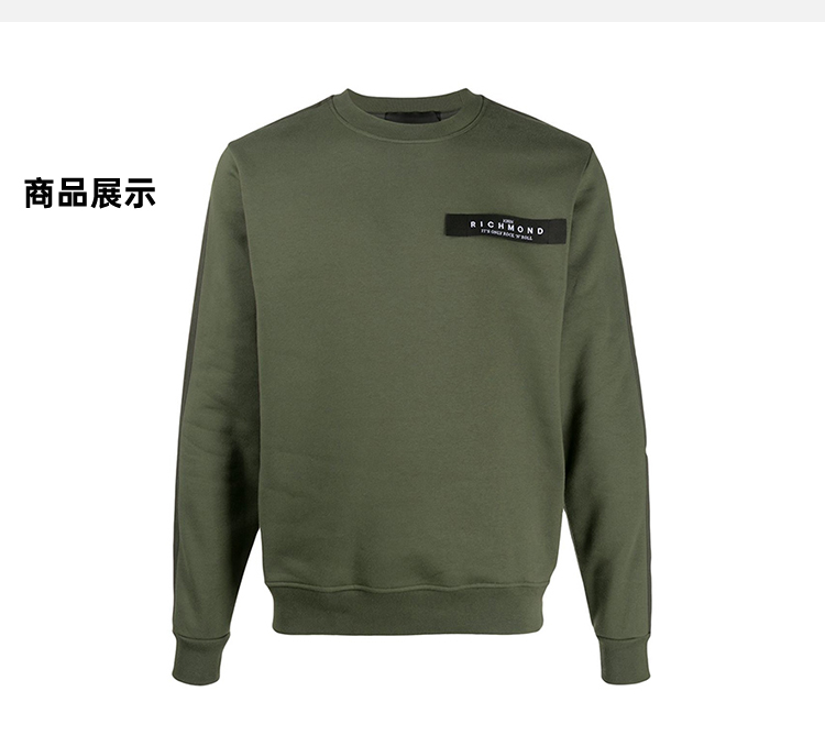 RICHMOND 男士棉质字母徽标印花长袖卫衣 军绿色 RMA19088FE KAKY