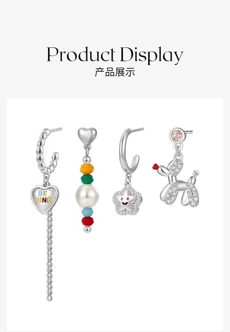 杨超越同款ZEGL串珠耳环女彩色气球狗耳钉银针夏日多巴胺穿搭耳饰