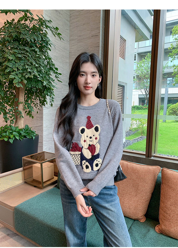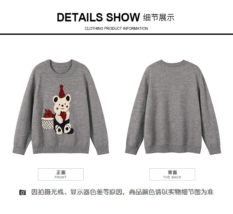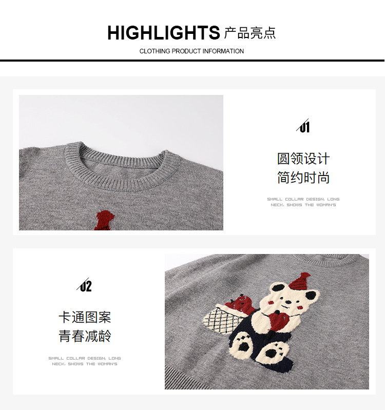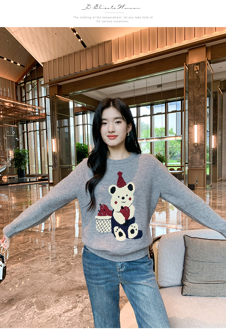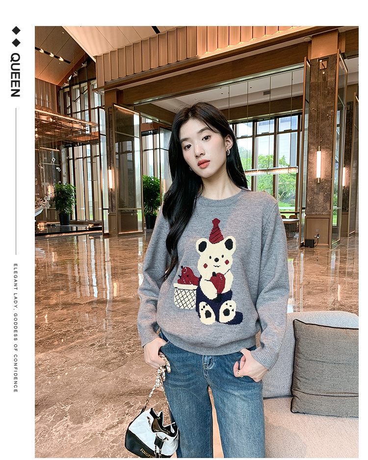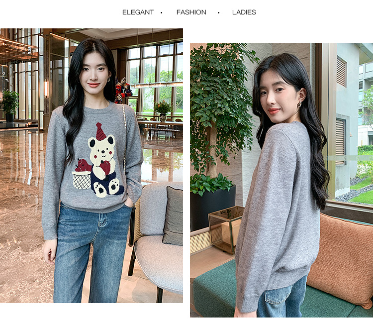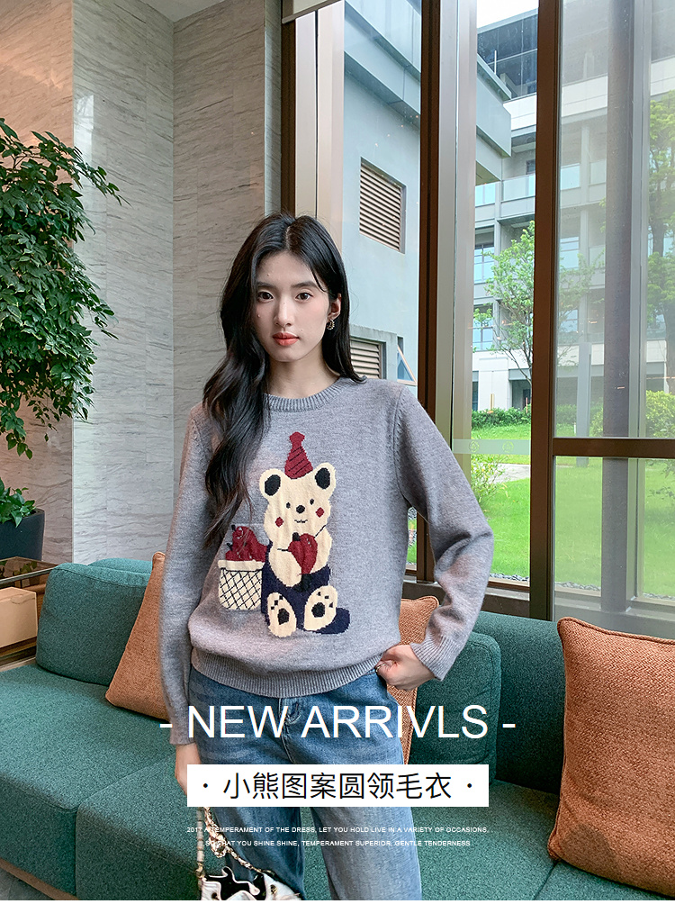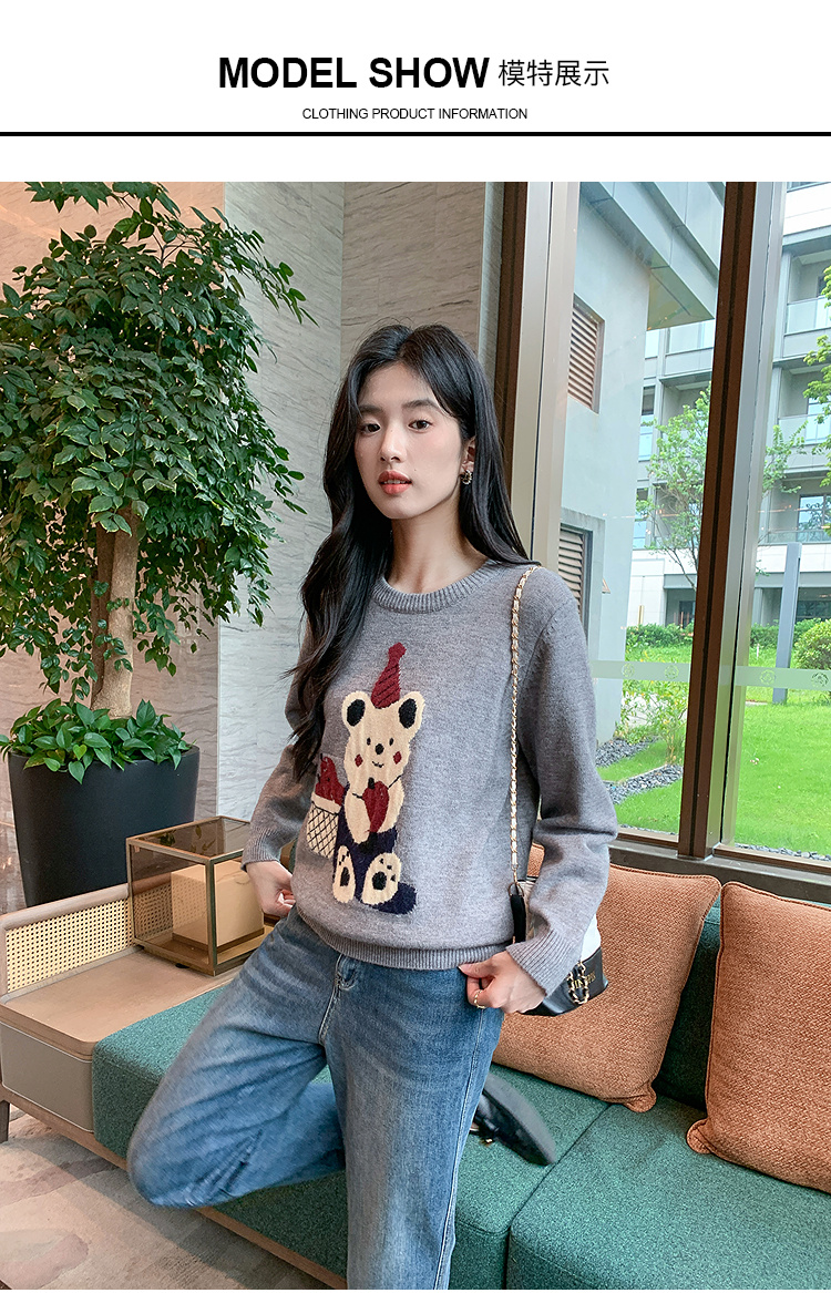奢姿大码女装2025秋装新款胖妹妹小熊图案圆领套头毛衣时尚上衣9653635193