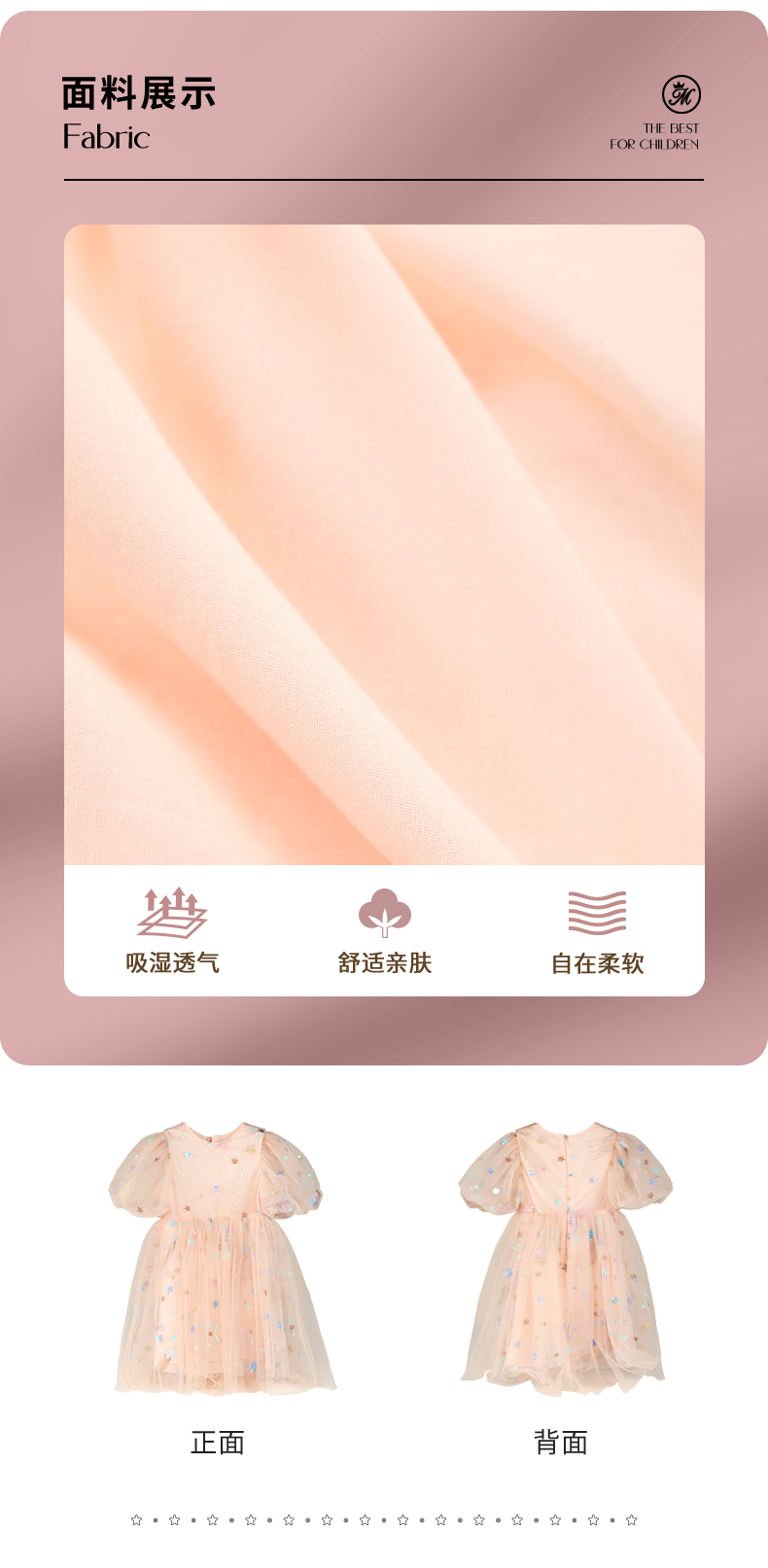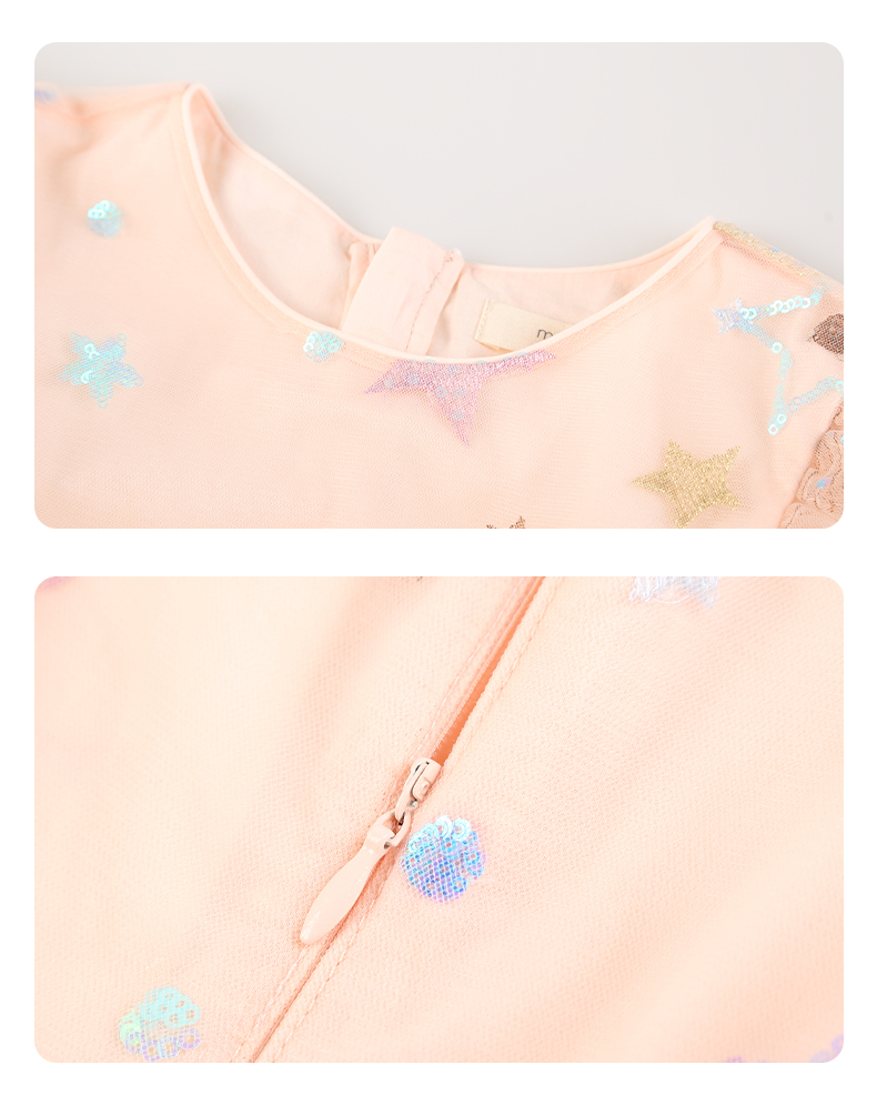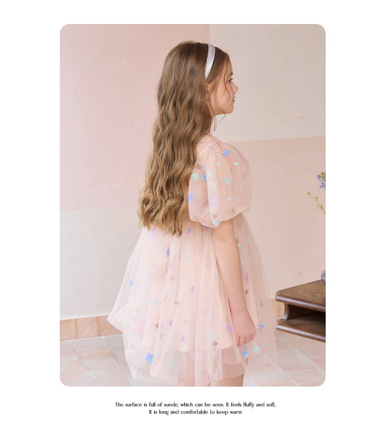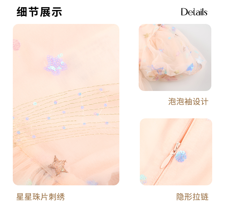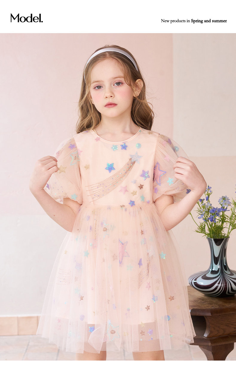 mettekids女童连衣裙儿童夏季粉色网纱裙子中大童泡泡袖公主裙