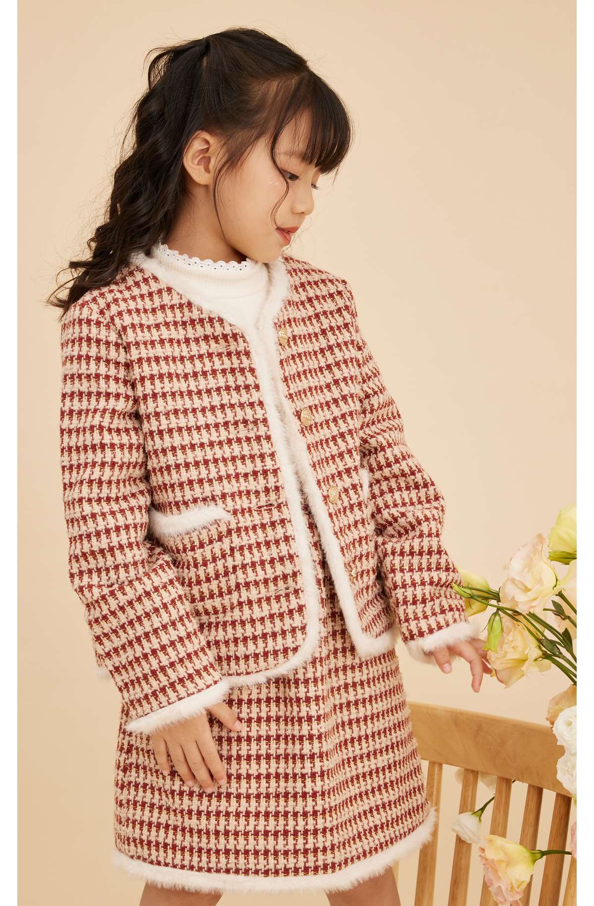 littletime女童小香风套装裙秋冬装2022新款时髦外套裙子两件套