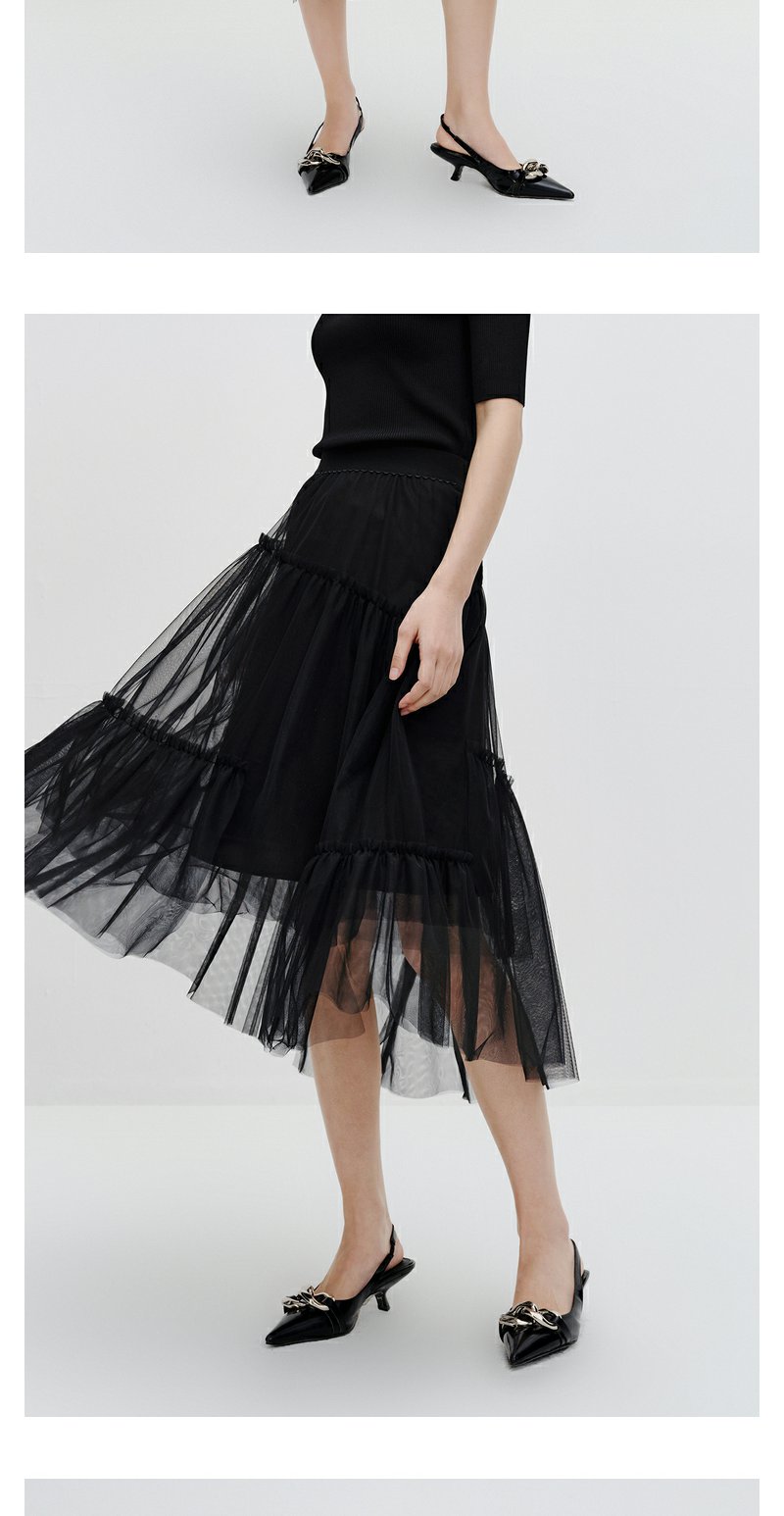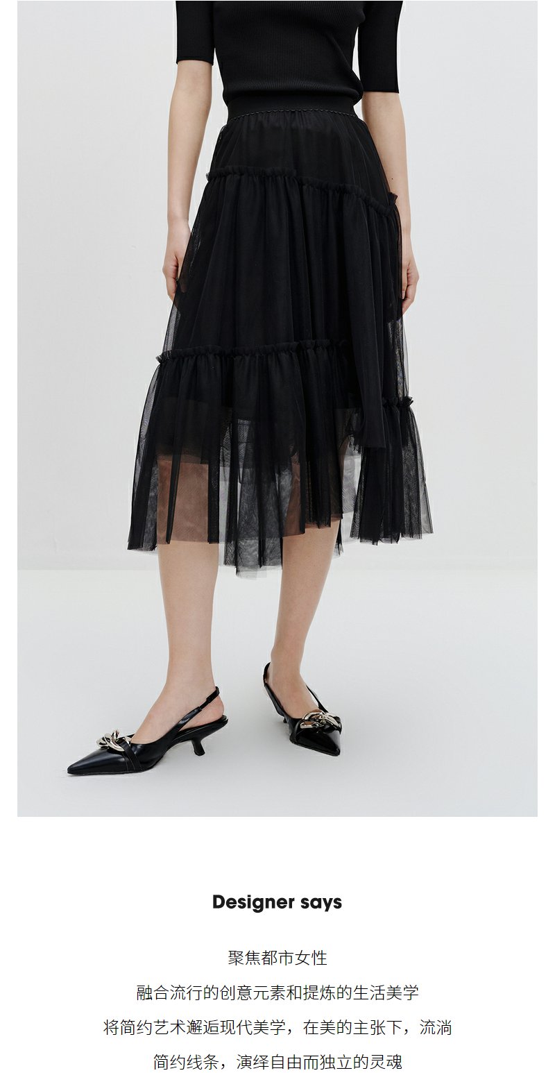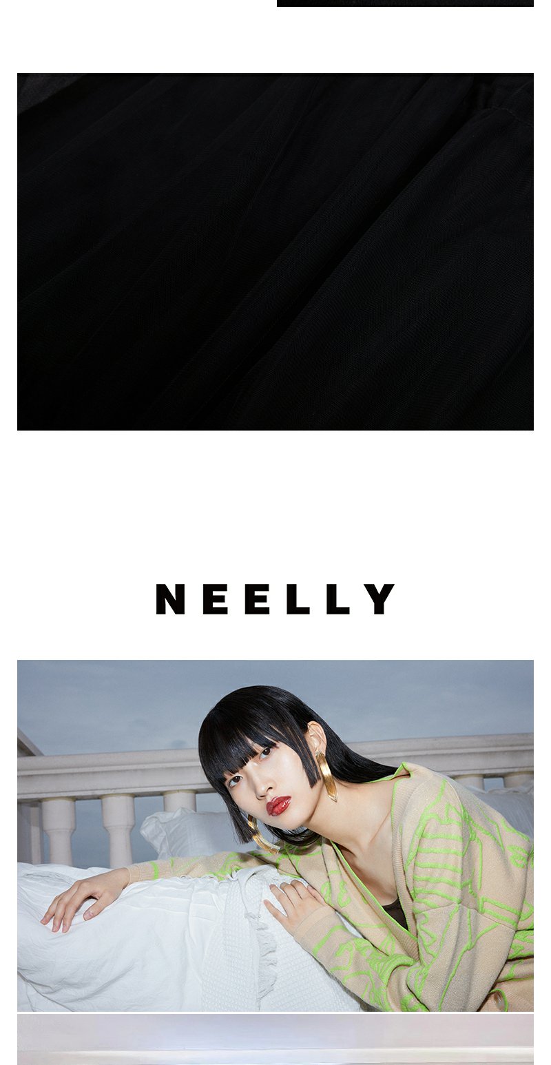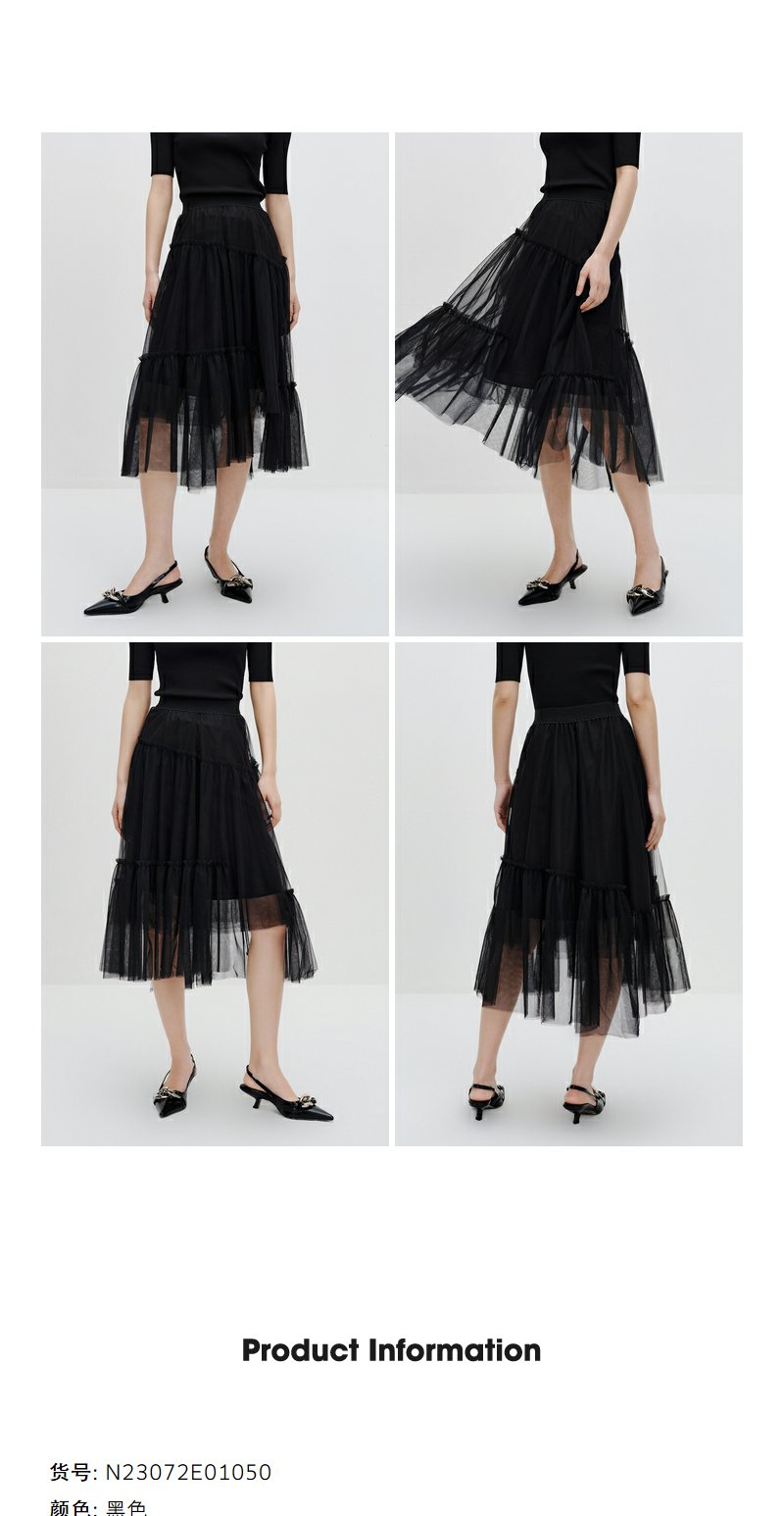 NEELLY纳俪商场同款黑色网纱裙女中长款韩版气质百搭A字裙蓬蓬裙N23072E01050