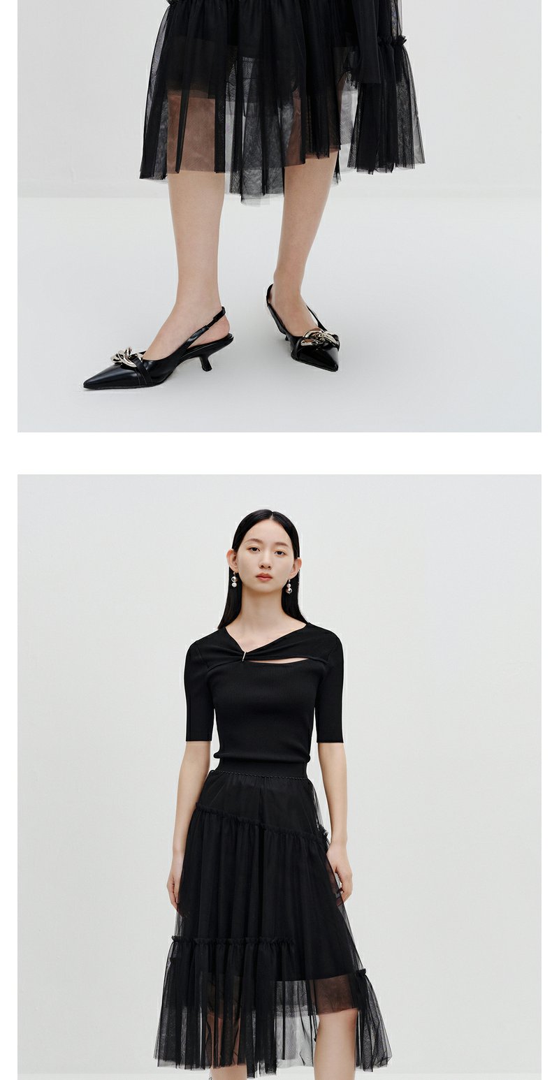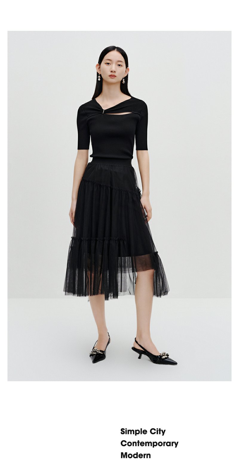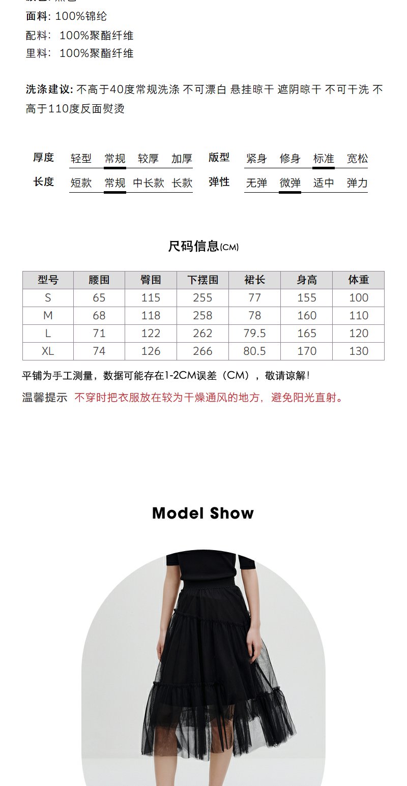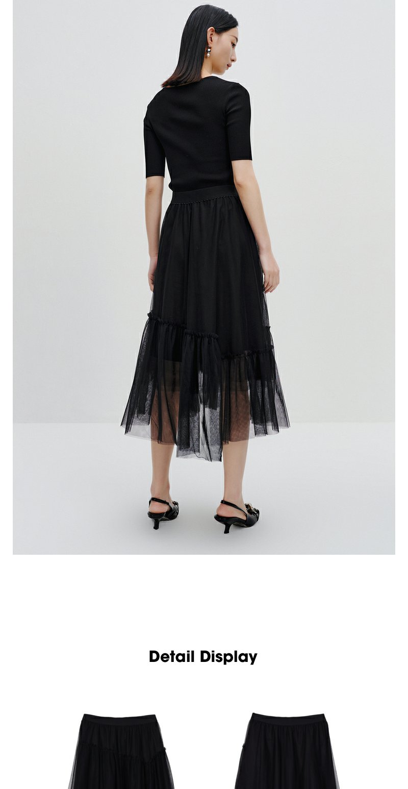 NEELLY纳俪商场同款黑色网纱裙女中长款韩版气质百搭A字裙蓬蓬裙N23072E01050