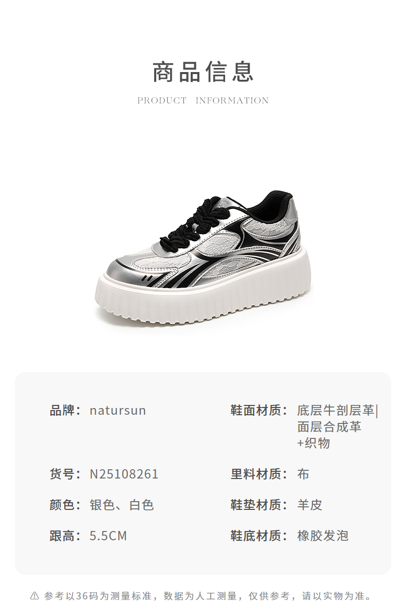 natursun厚底小白鞋女款时尚饼干鞋舒适百搭休闲板鞋N25108261