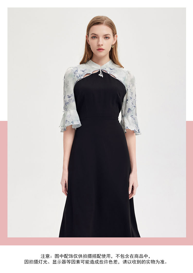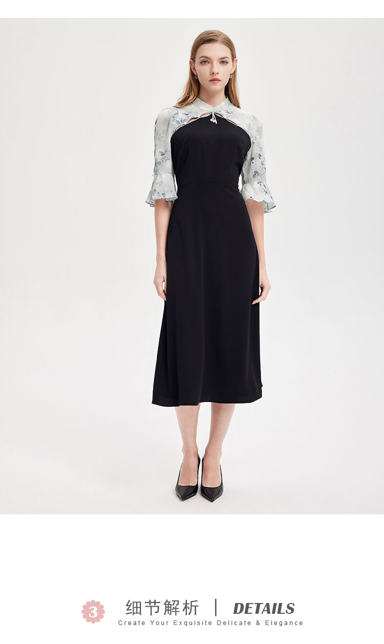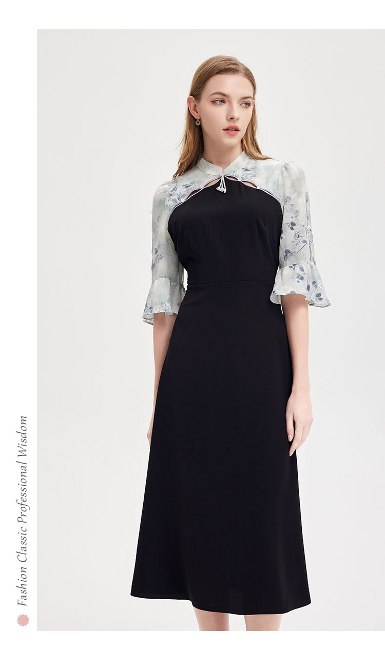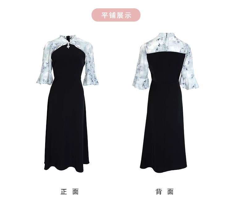 PF825斯尔丽24新款中国风改良式旗袍撞色拼接喇叭收腰优雅时尚连衣裙