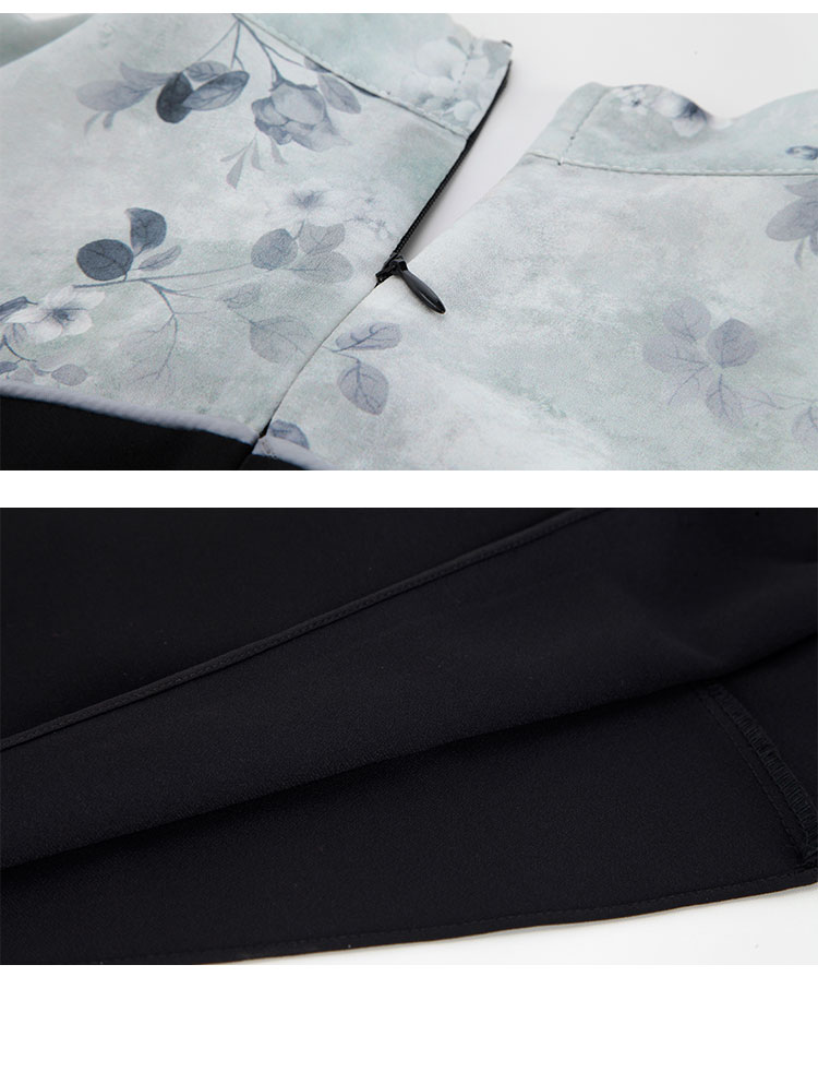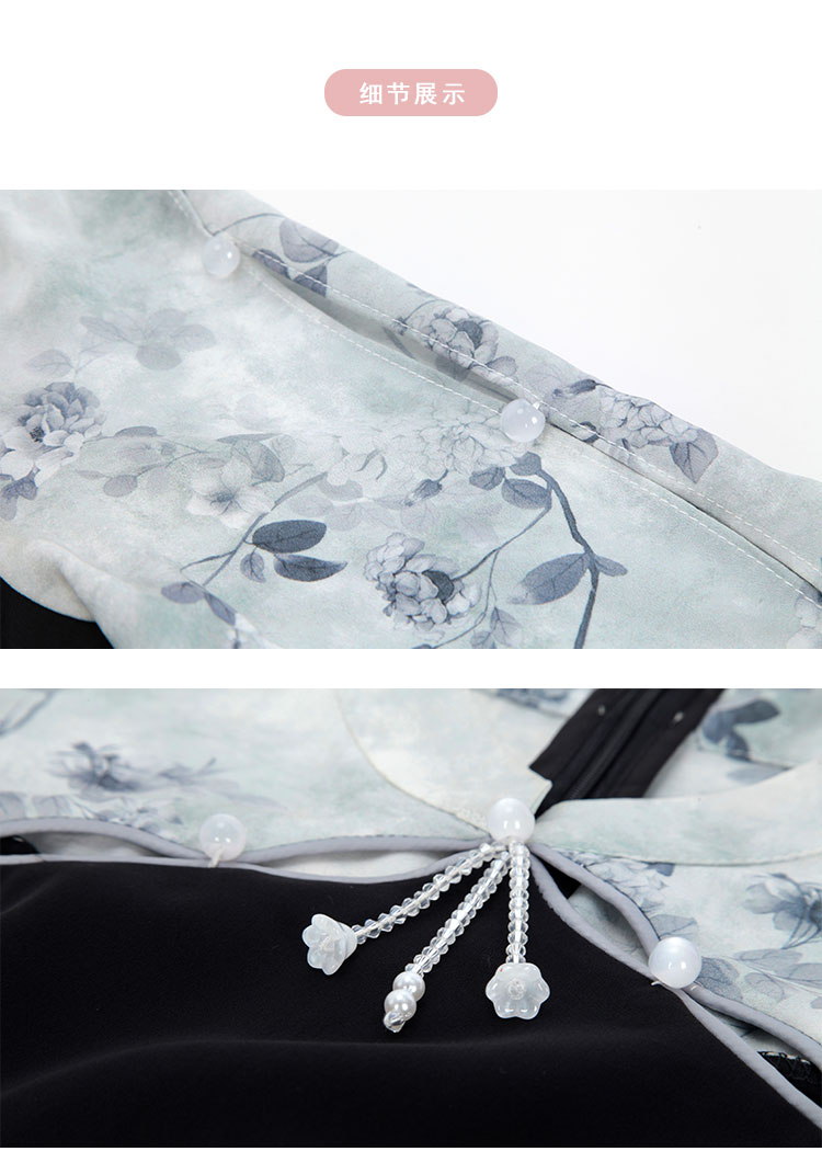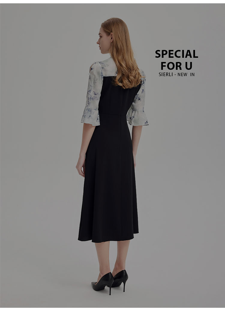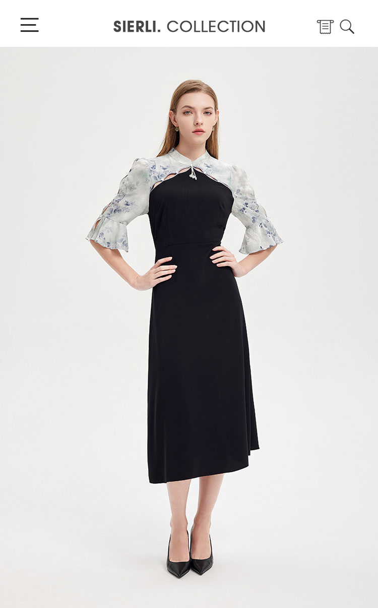 PF825斯尔丽24新款中国风改良式旗袍撞色拼接喇叭收腰优雅时尚连衣裙