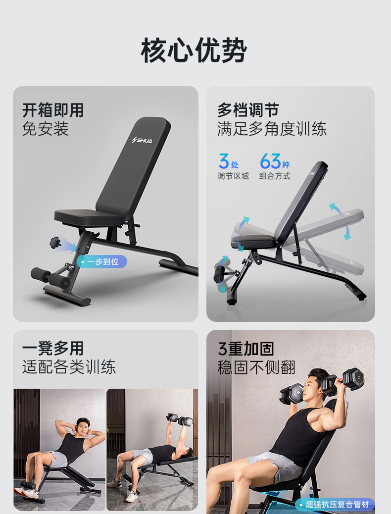舒华哑铃凳家用多功能折叠健身家用器材仰卧起坐卧推辅助器G593