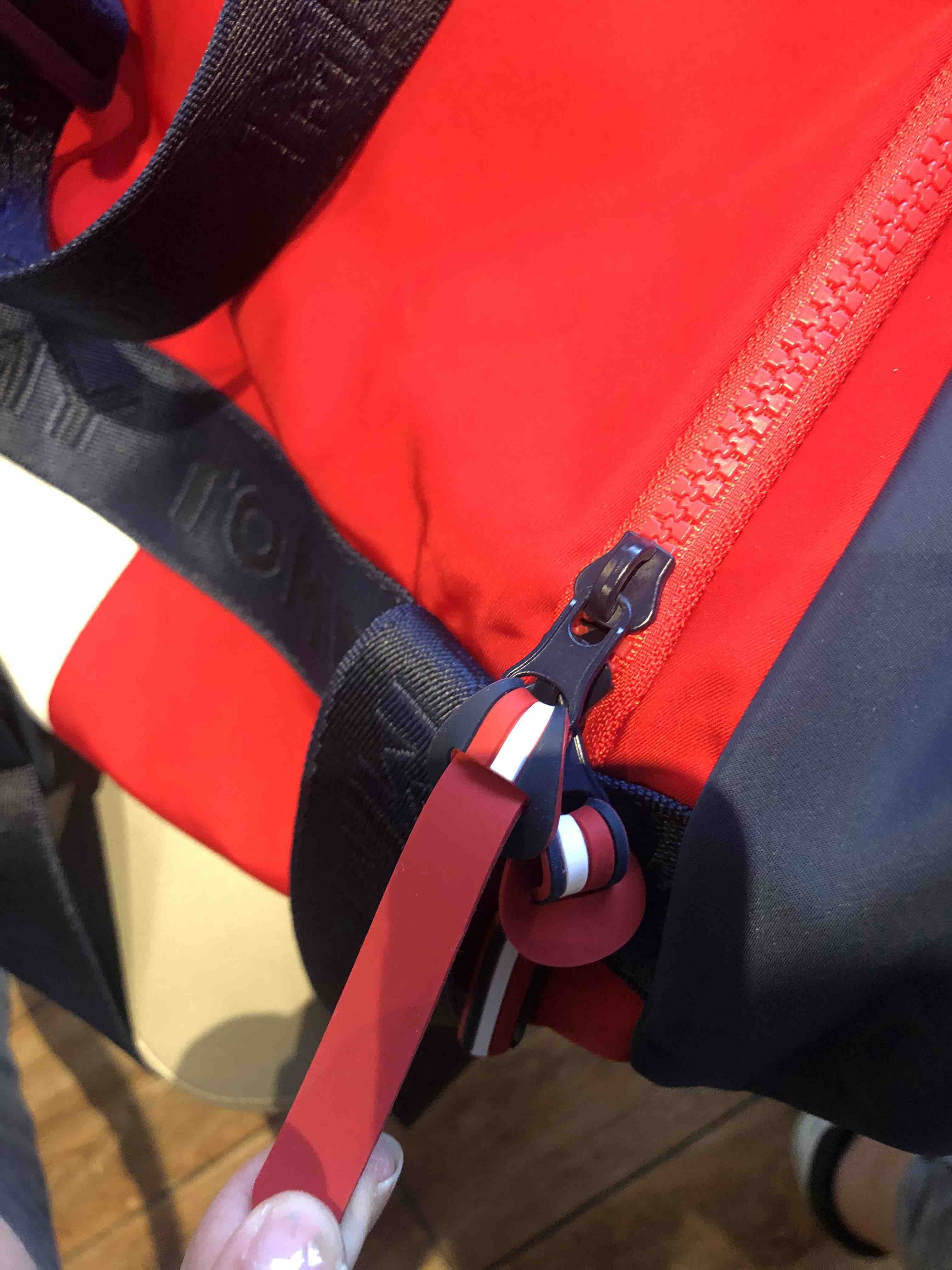 细节看看,拉链处都是品牌方定制条纹软胶。