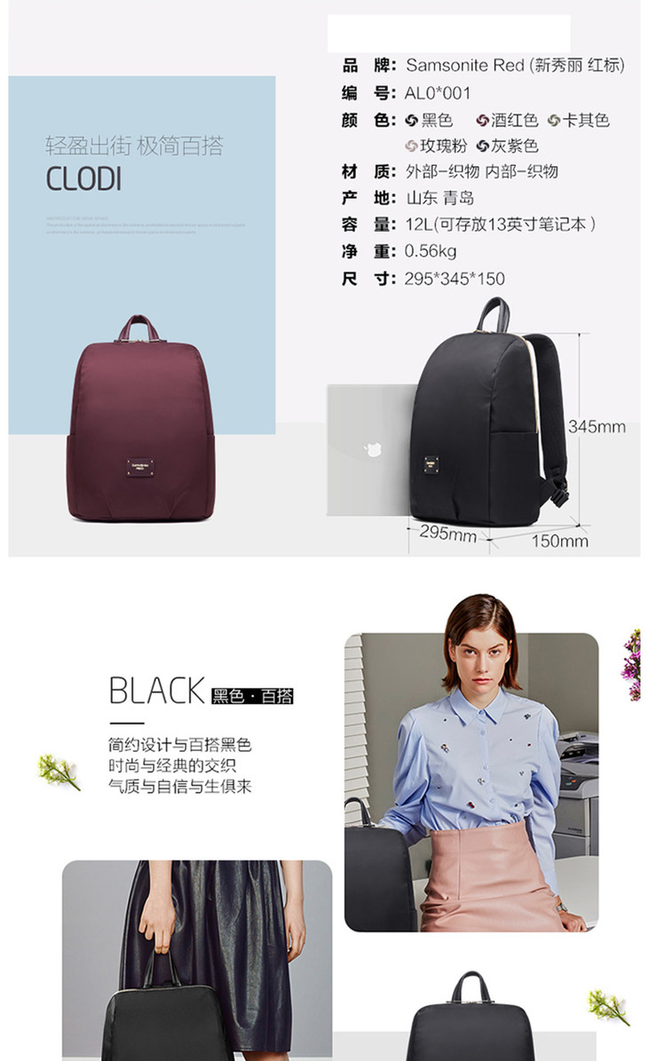 新秀丽女士双肩包 韩式风格 极简百搭 轻盈出街 AL0