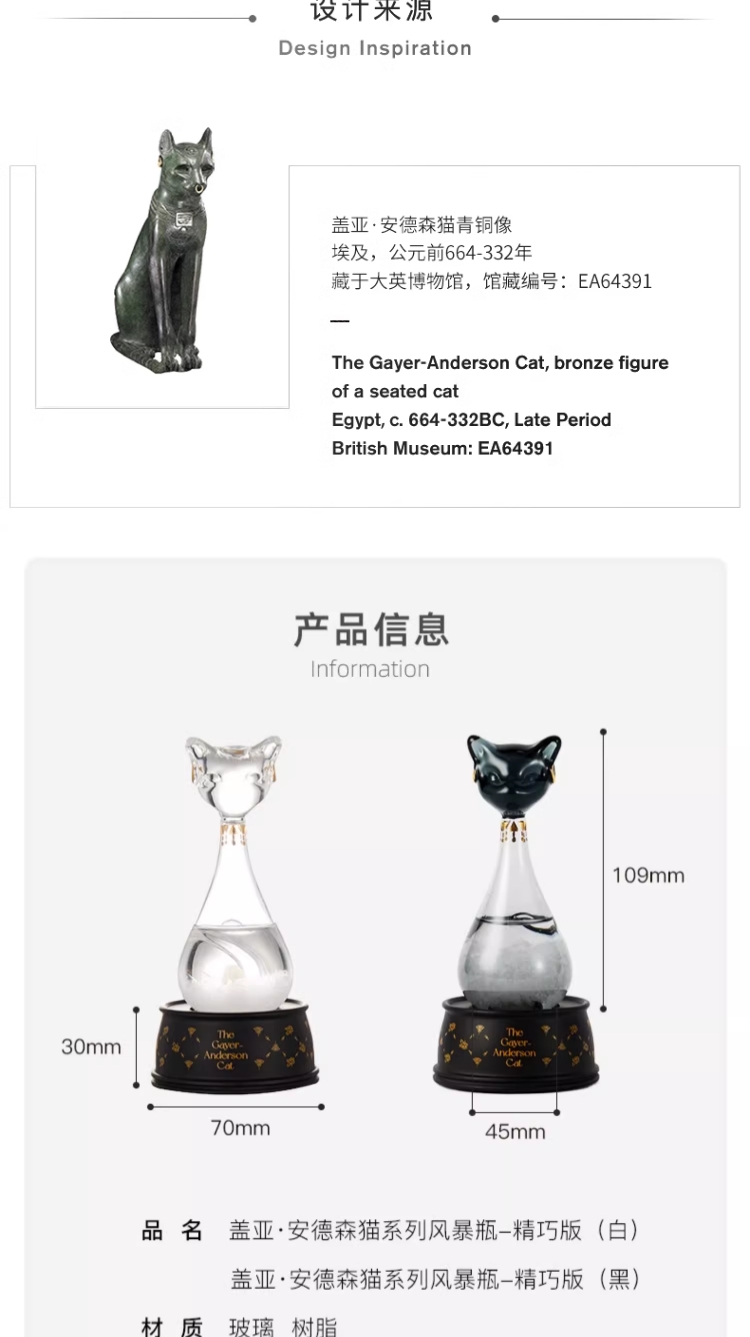 大英博物馆盖亚·安德森猫系列 时尚精致风暴瓶天气瓶精巧版 摆件