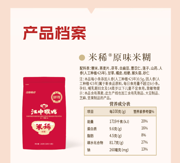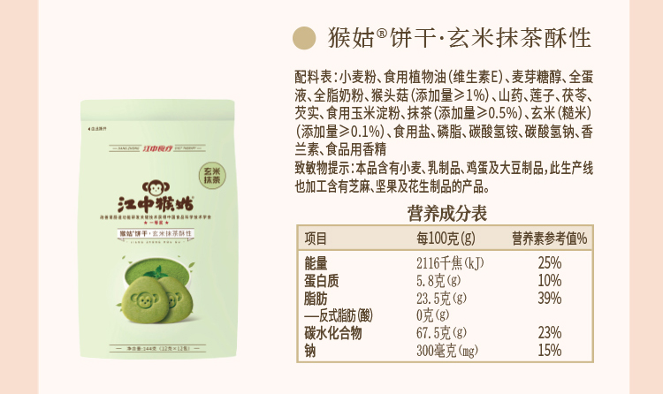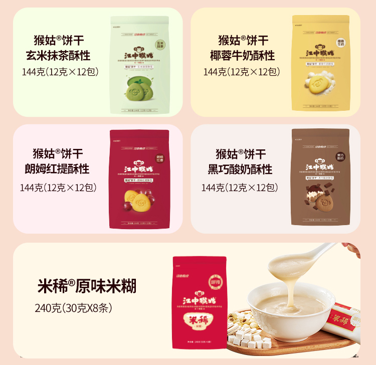 江中猴姑·猴姑礼盒 816g/盒(礼盒含1袋米稀+4袋饼干)2025年9月生产/保质期12个月 新老包装随机发货