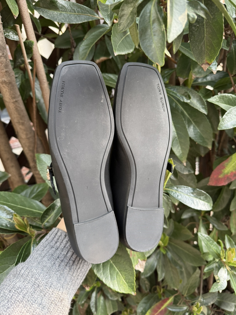 侧边搭配的tb字母很有设计感,同时这个方头带着一丢丢桀骜不驯,比圆头显得奶凶奶凶的。大底其实很扎实,不是薄薄一层,防滑耐磨橡胶底,很给力,给我的感觉就像壁虎吸盘那么防滑。