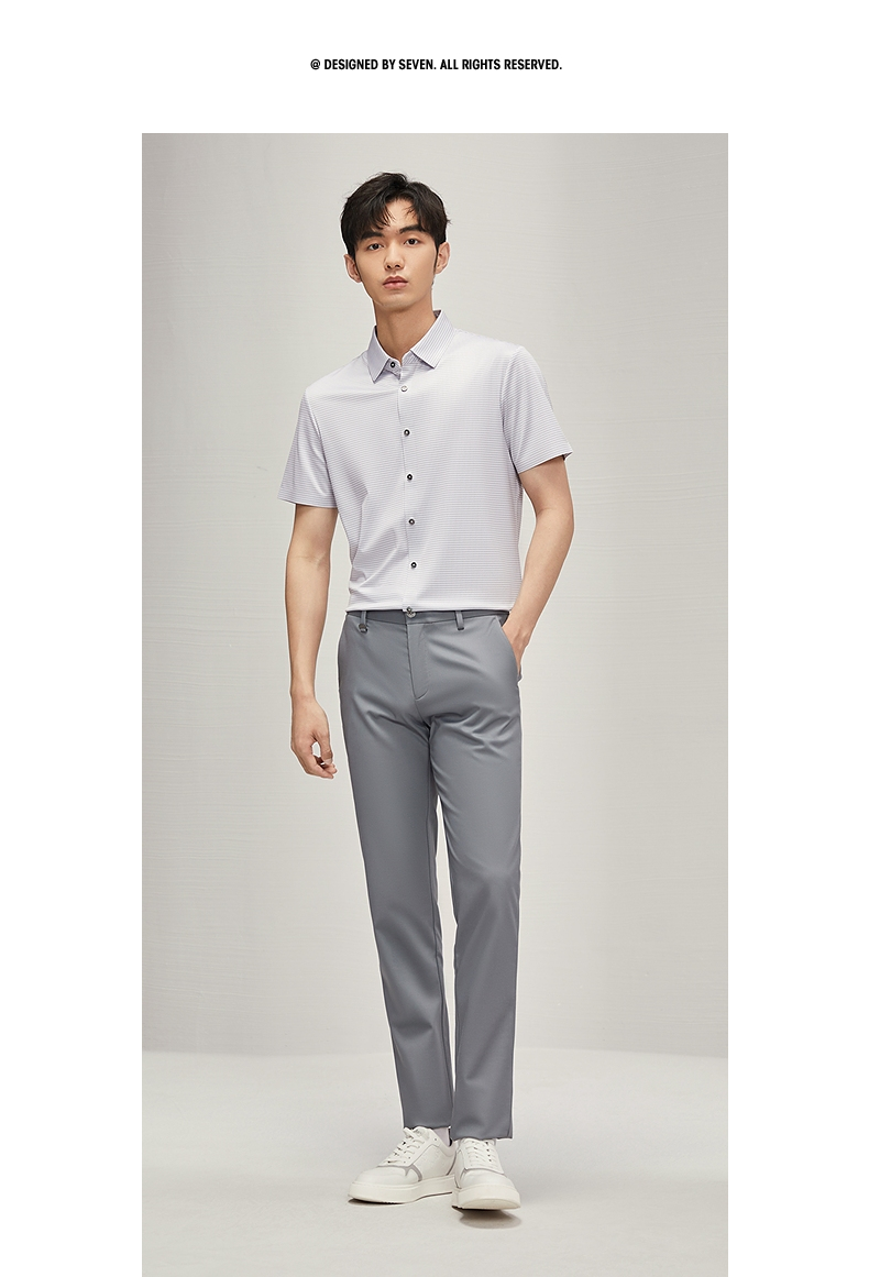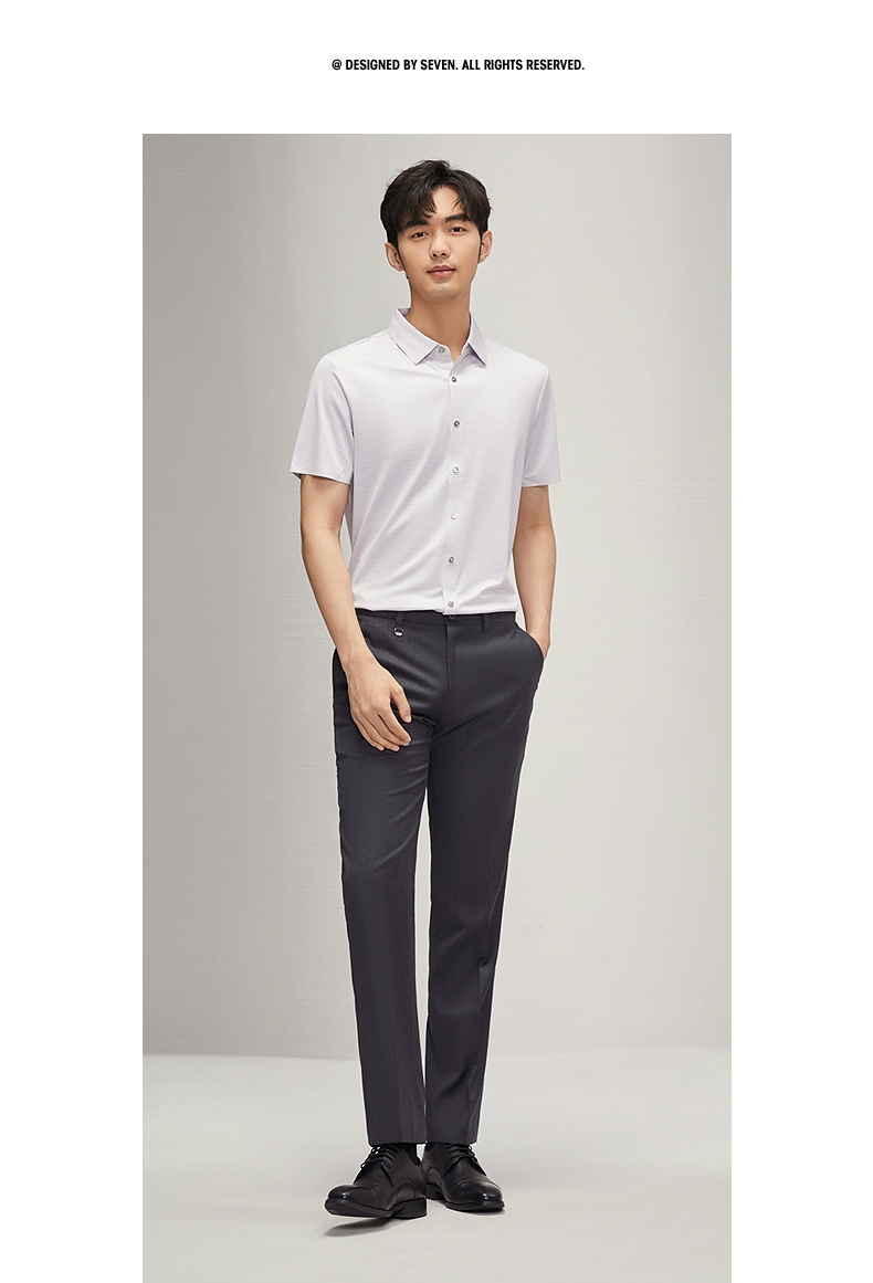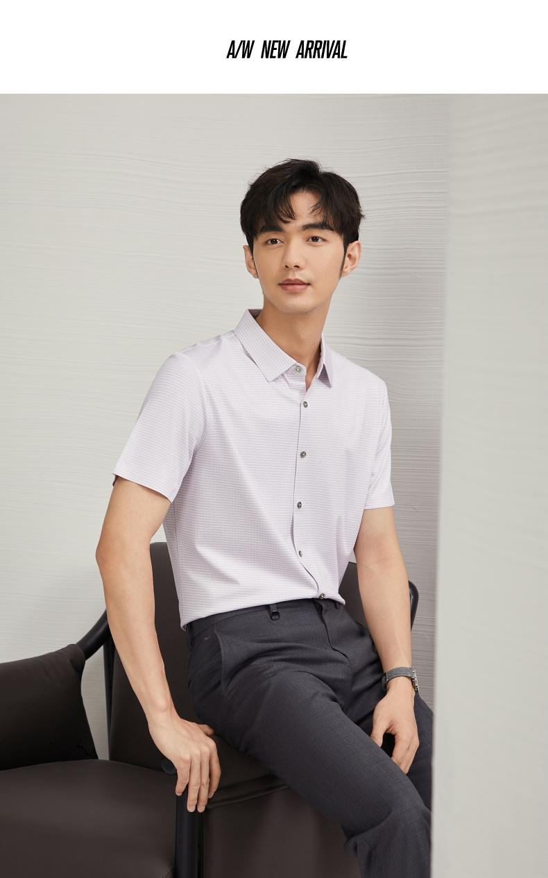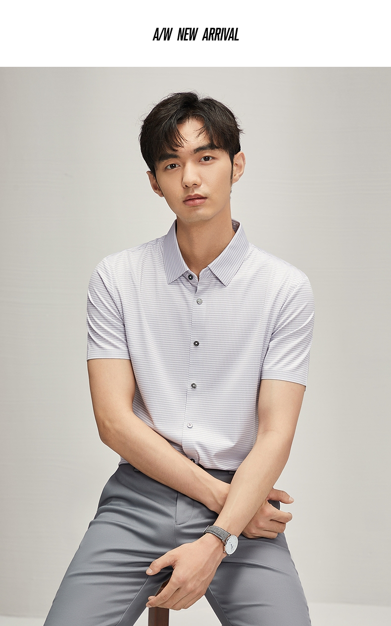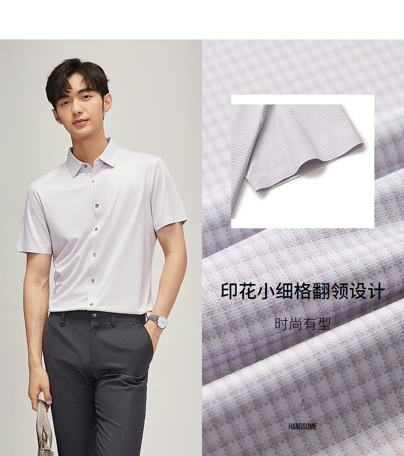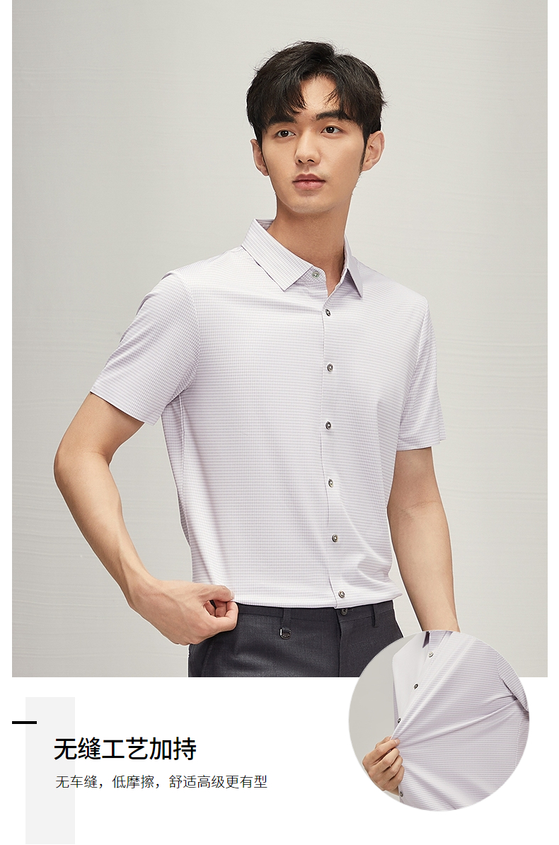 【高弹】柒牌男士短袖衬衫2025夏季新款时尚休闲含莫代尔细格衬衣 128A70290