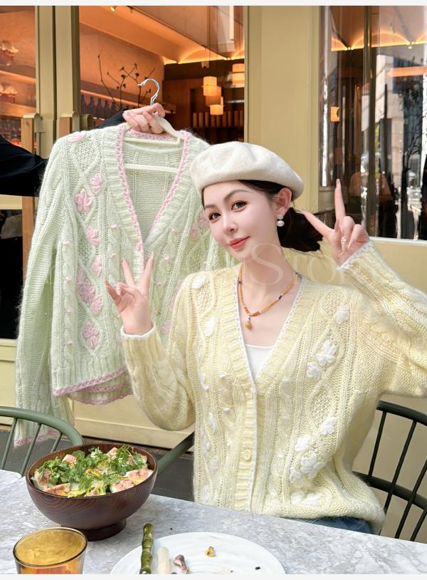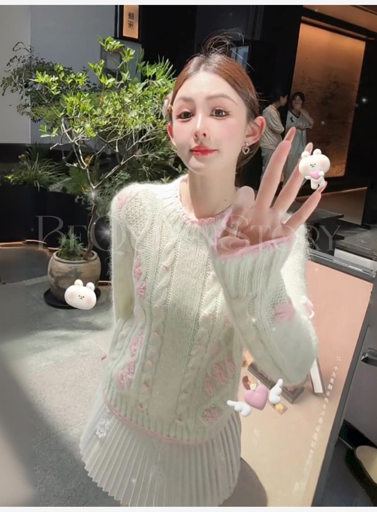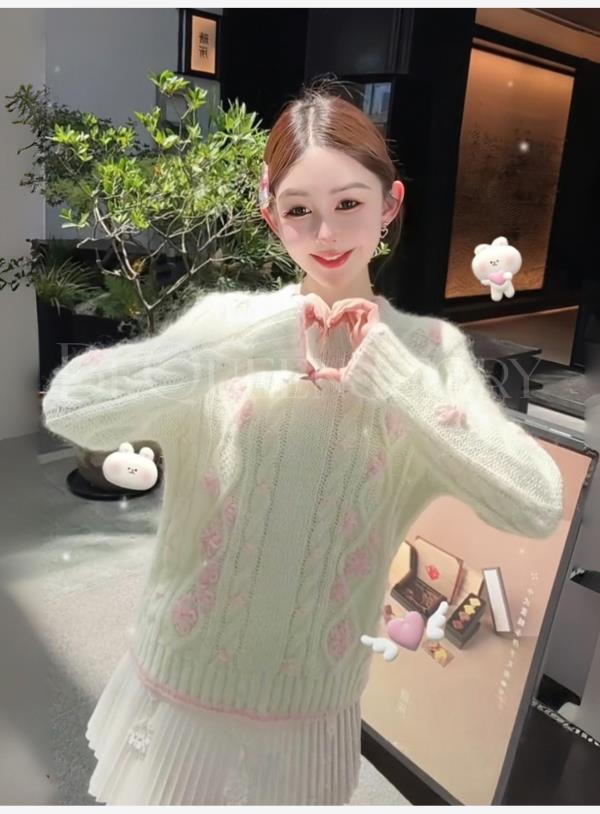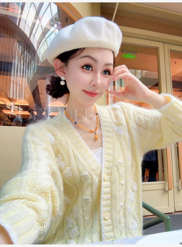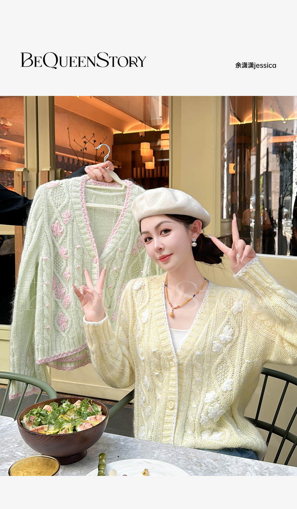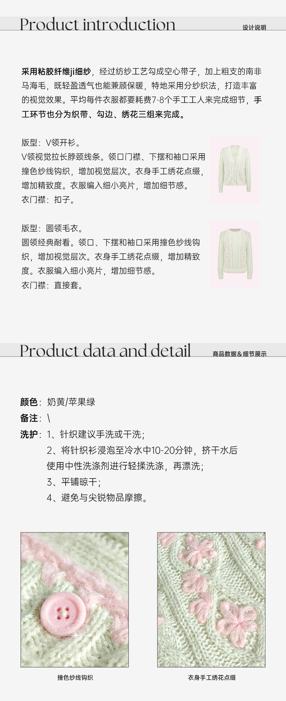 余潇潇【蔷薇岛邂逅】绵羊毛马海毛混纺拼接亮片V领开衫&圆领毛衣