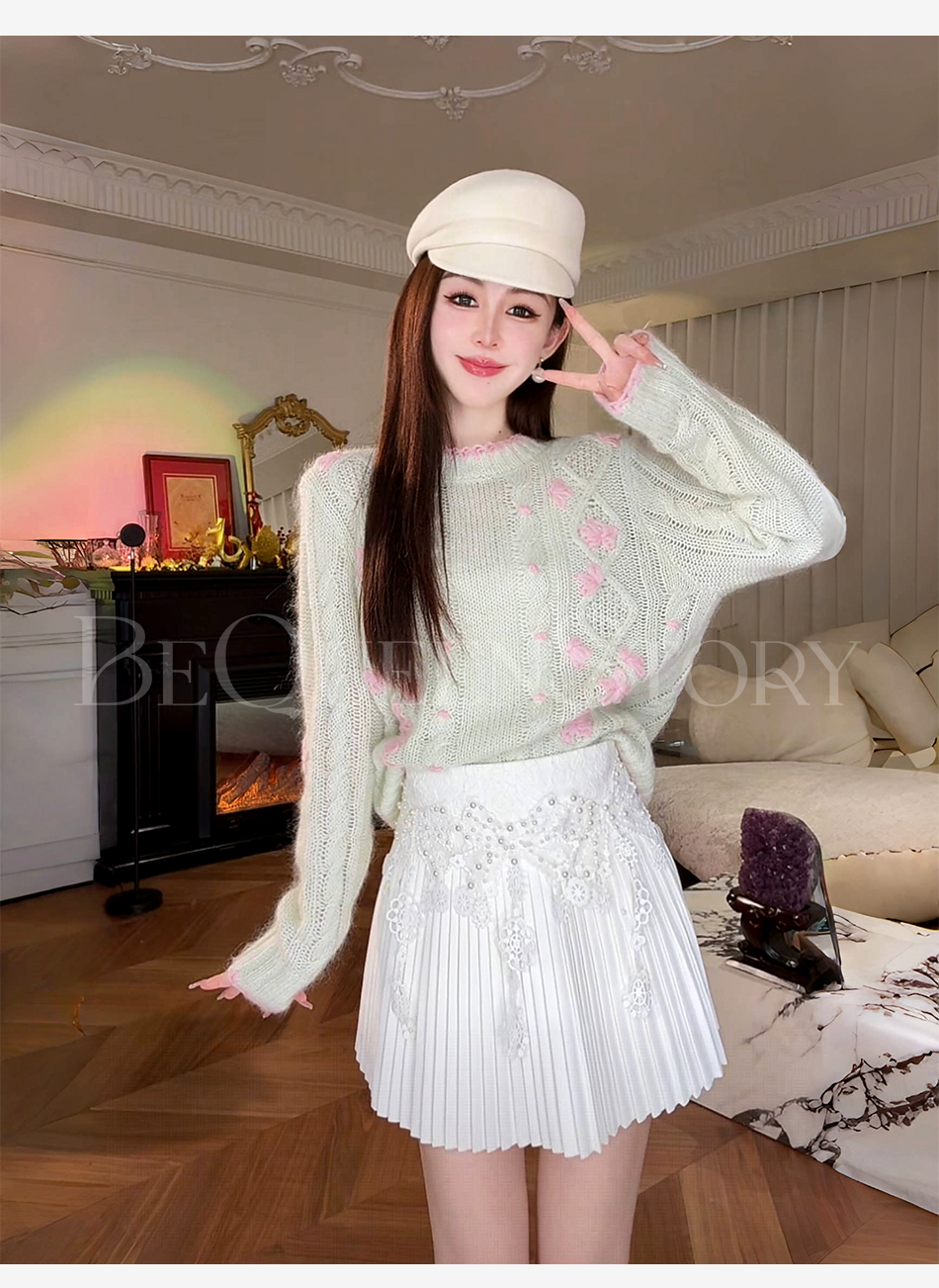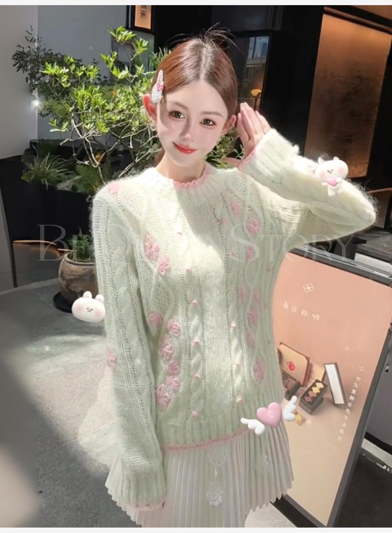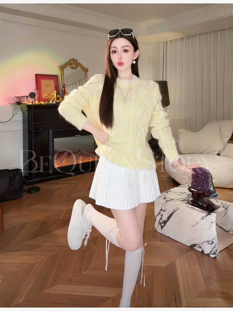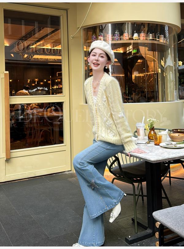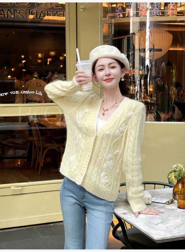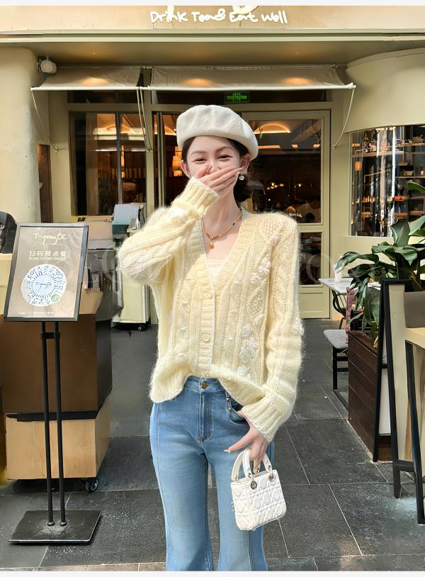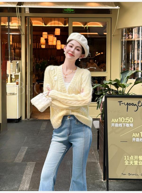 余潇潇【蔷薇岛邂逅】绵羊毛马海毛混纺拼接亮片V领开衫&圆领毛衣