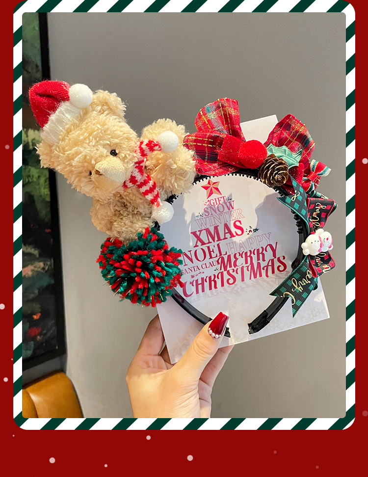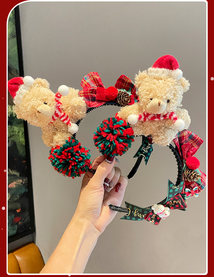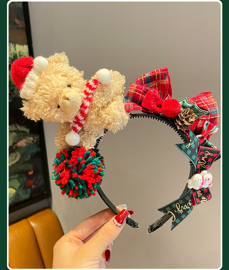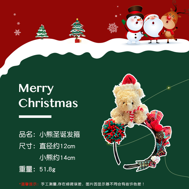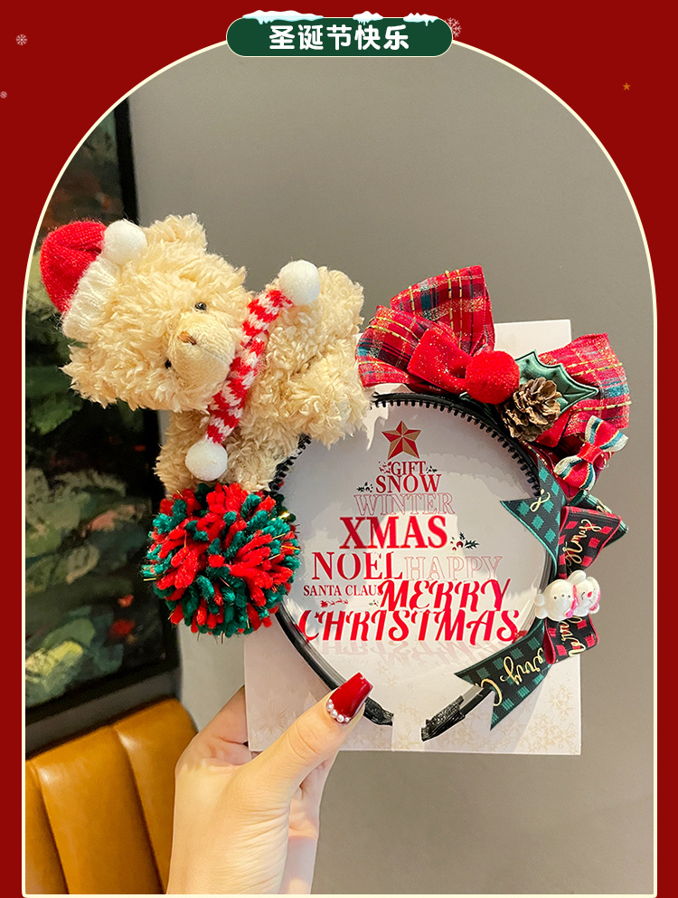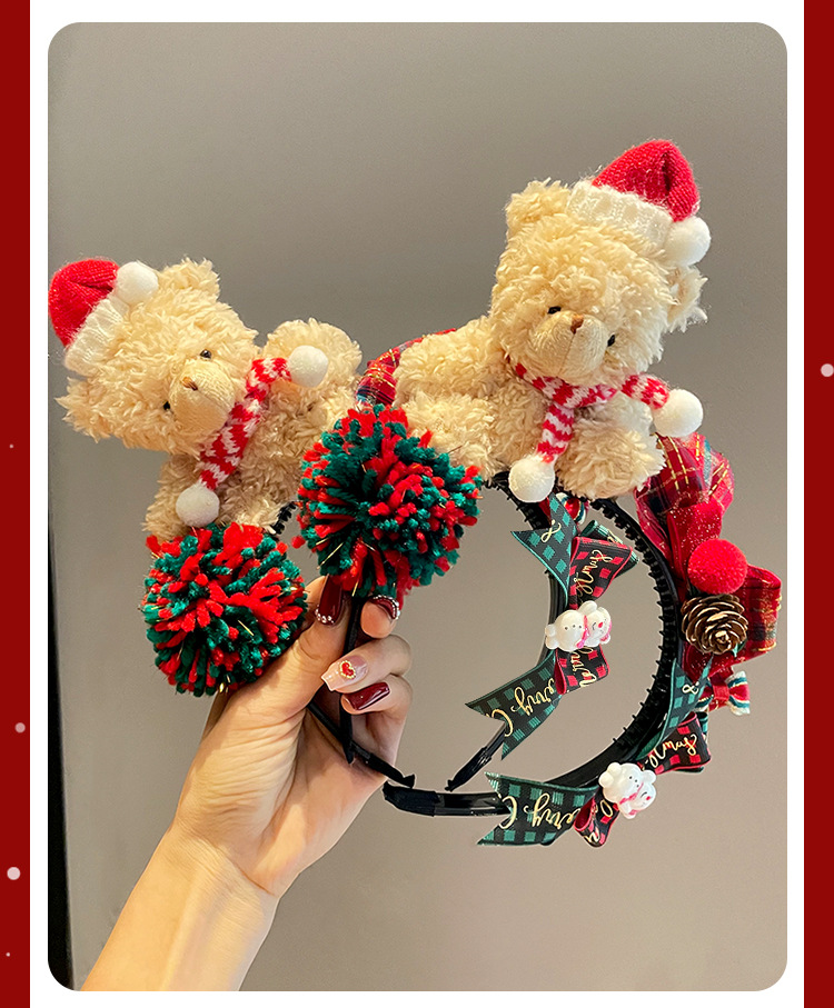 【圣诞节日发箍】毛绒小熊头箍 可爱公仔头饰 防滑带齿头扣活动聚会装扮