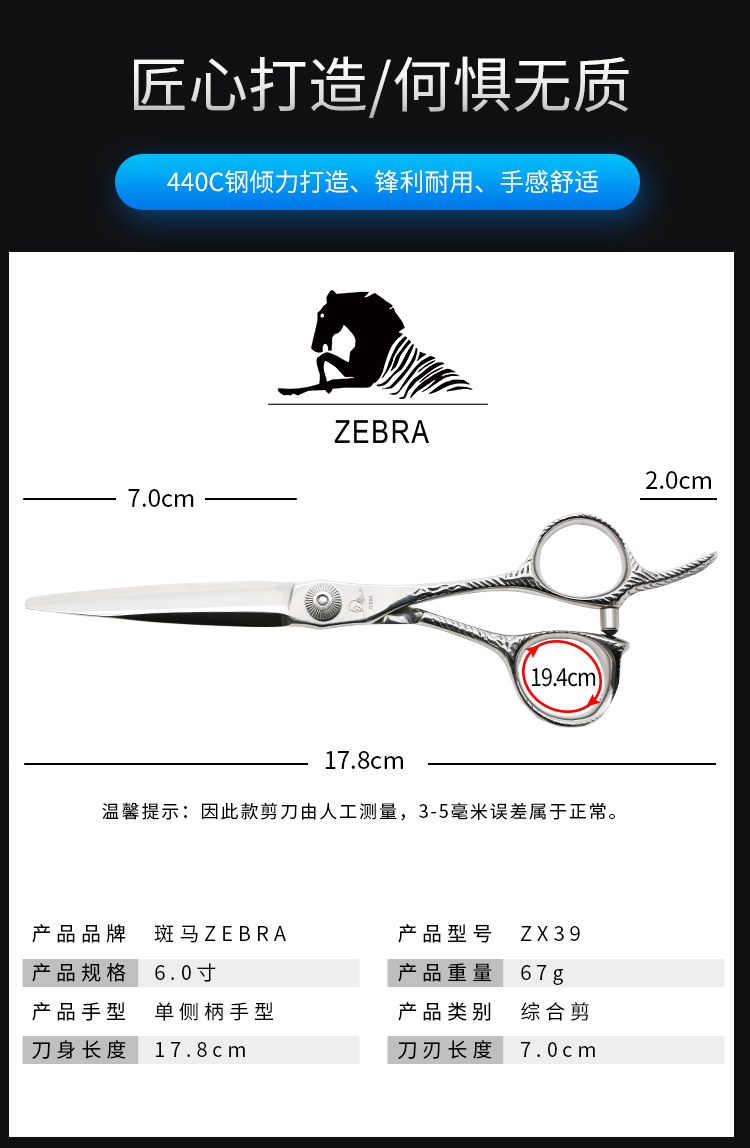 ZEBRA斑马 剪刀 ZX39 锋利/直发/刘海/结构剪/线条剪/但侧柄/平剪/6.0寸
