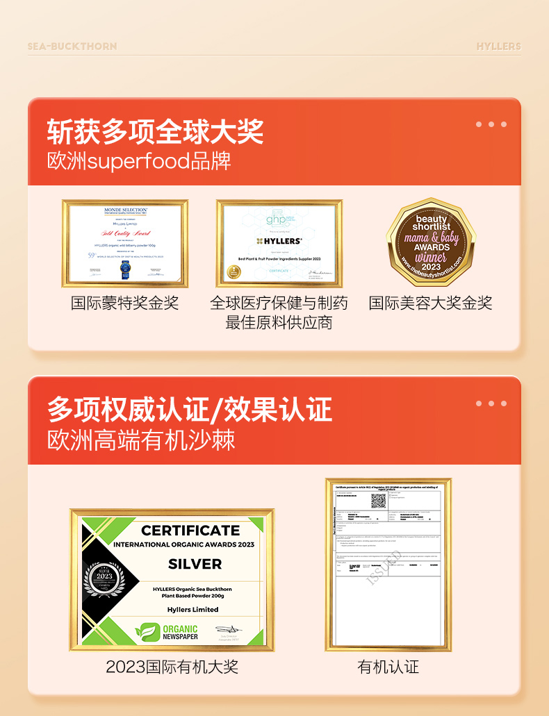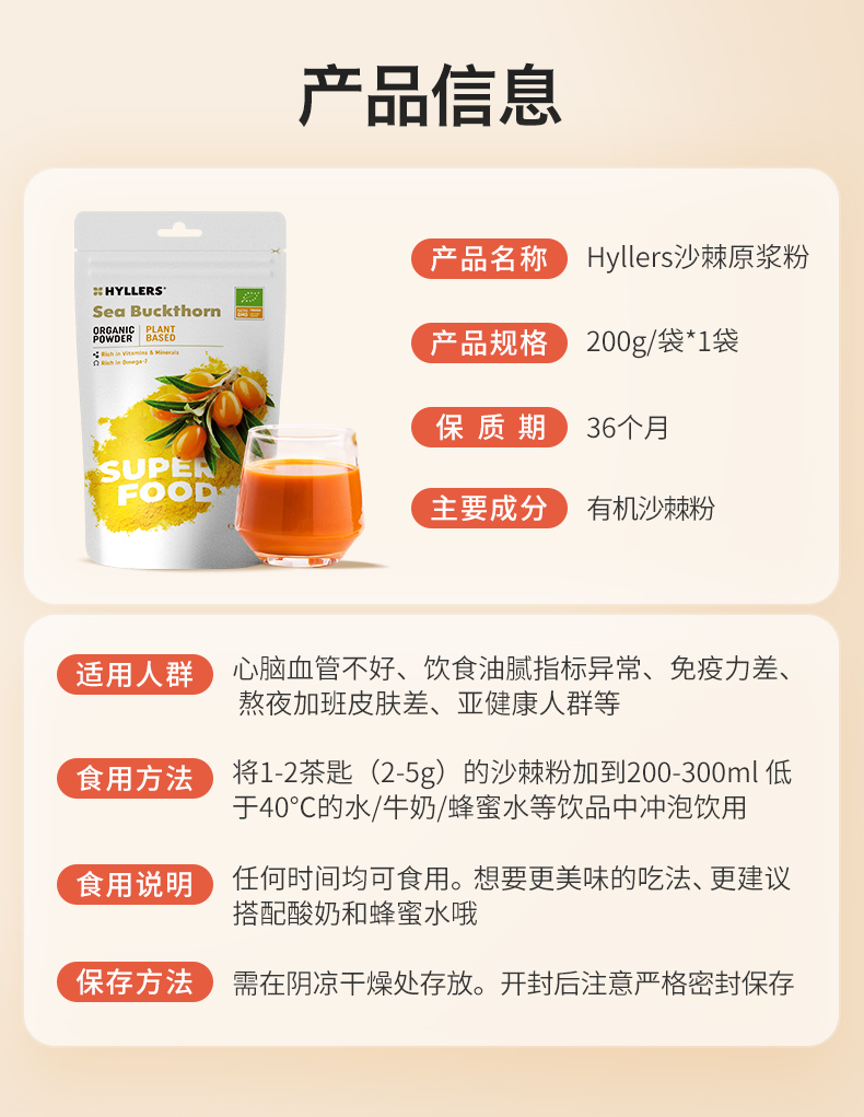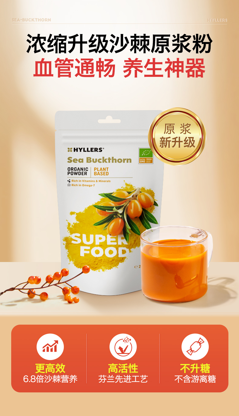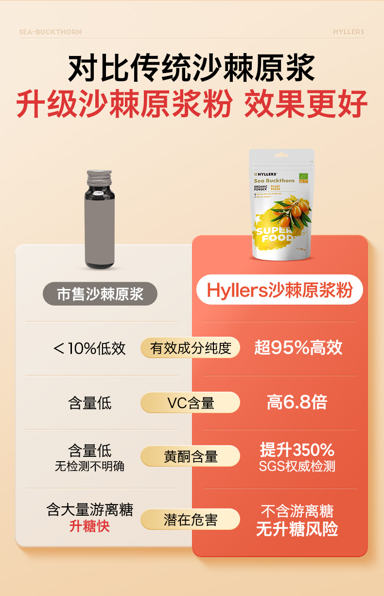 Hyllers有机沙棘粉全果籽油维生素c调理体质非原汁原浆