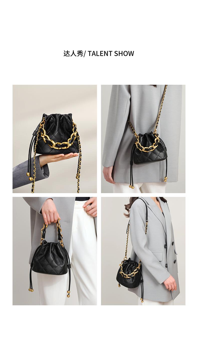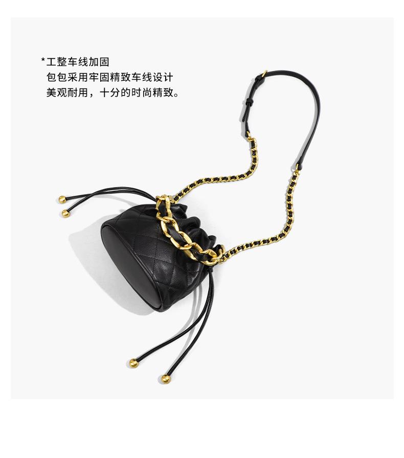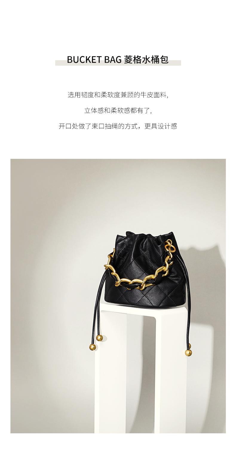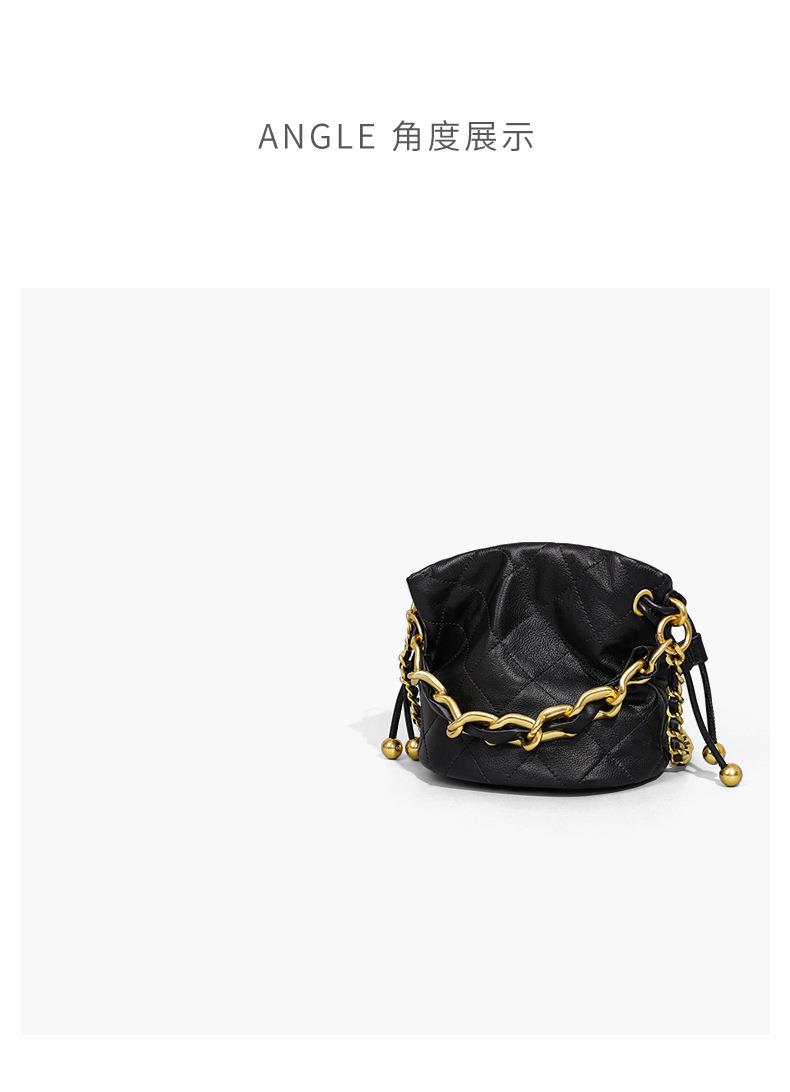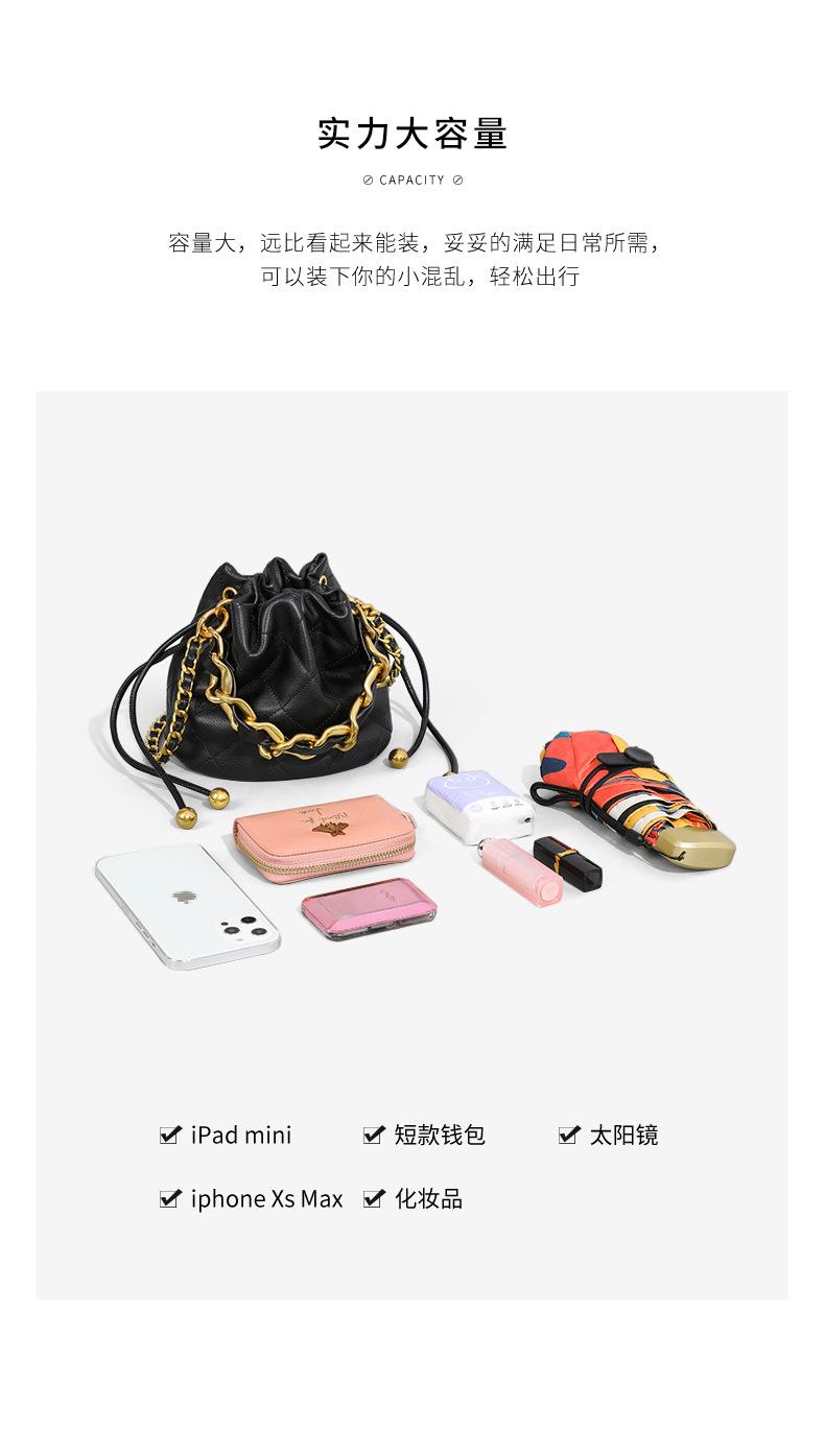 Viney包包新款高级质感时尚斜挎水桶包迷你手提单肩链条真皮女包
