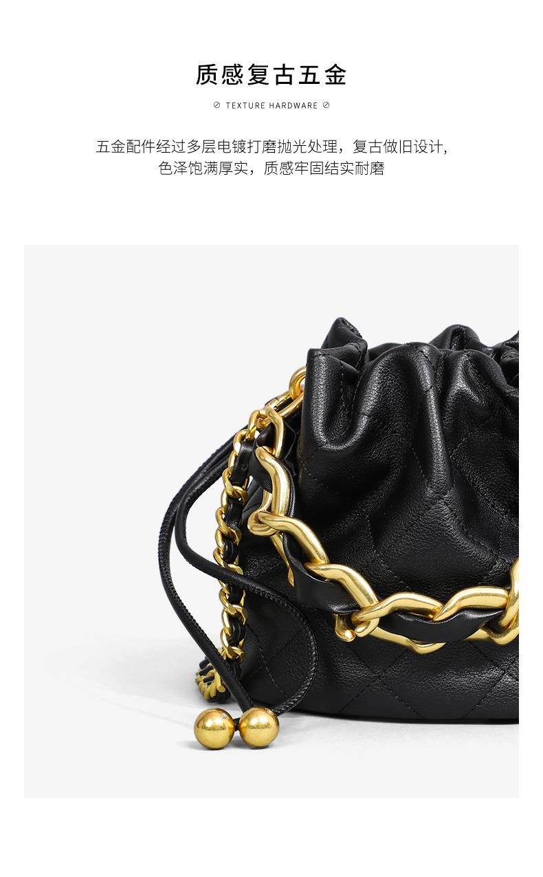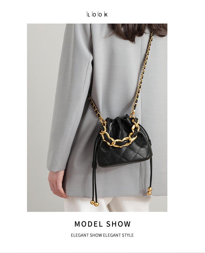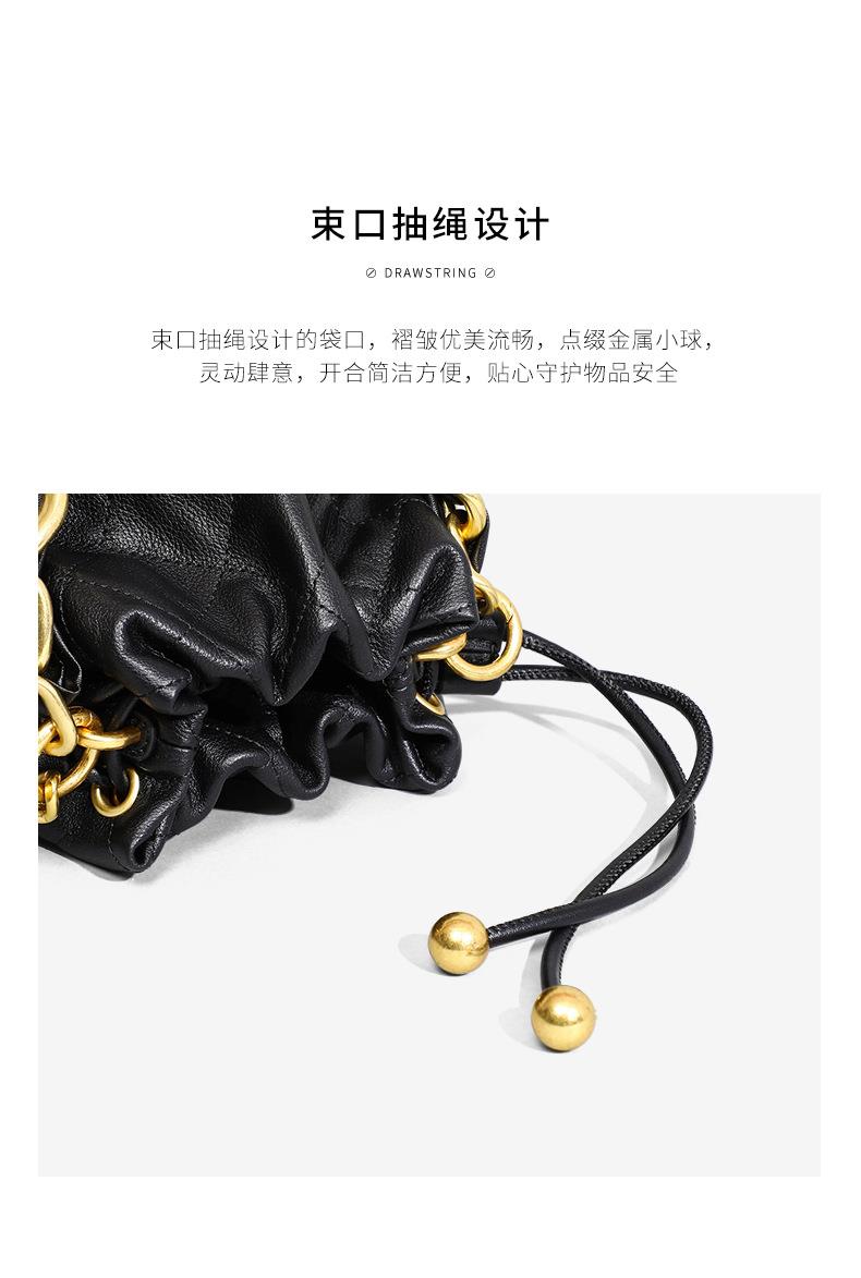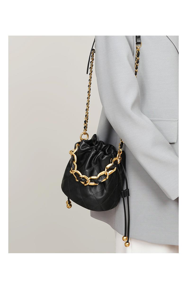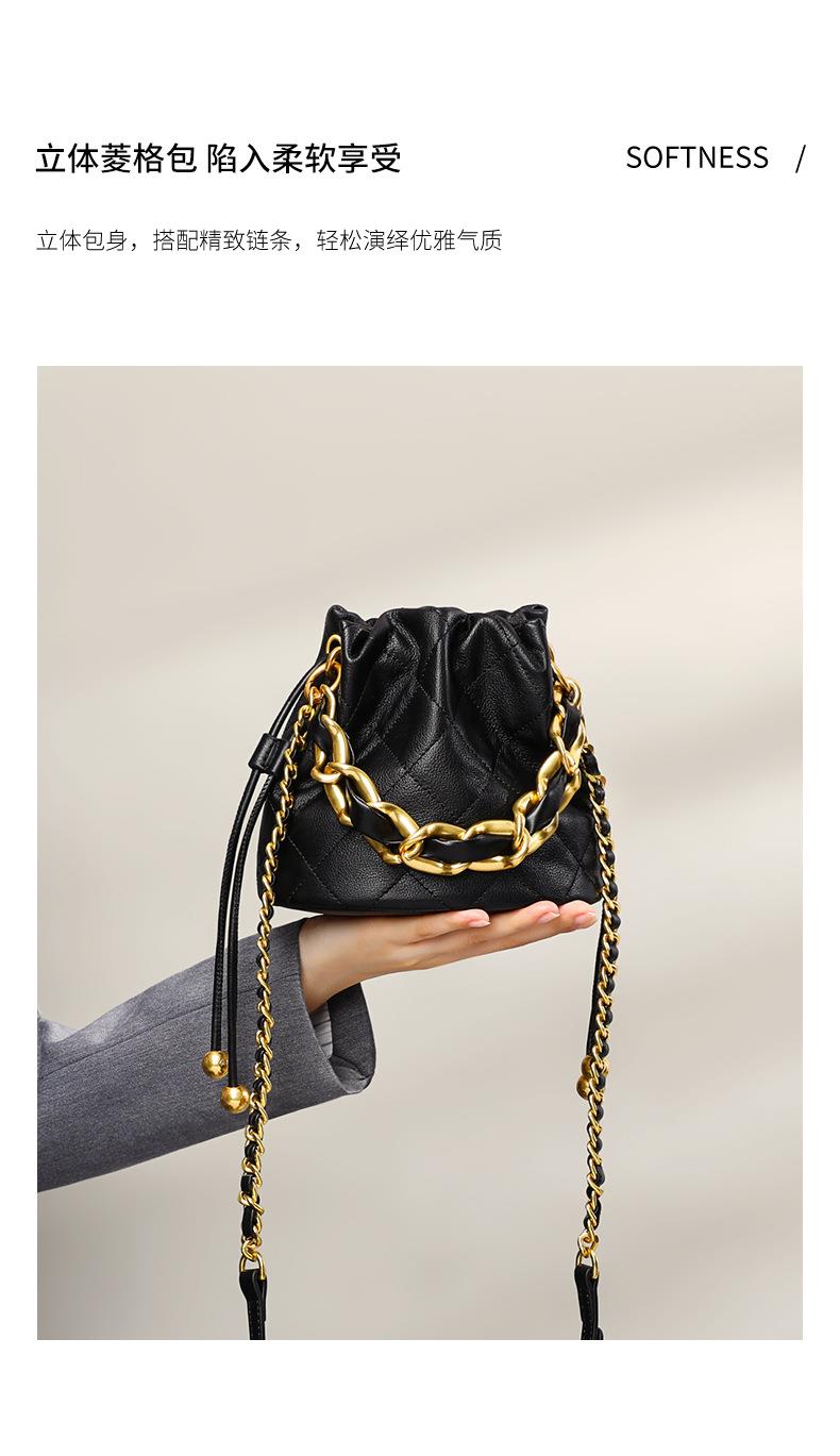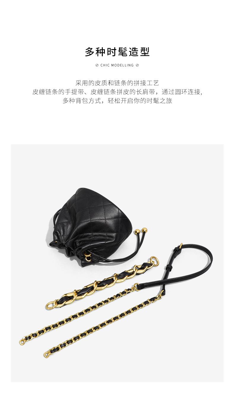 Viney包包新款高级质感时尚斜挎水桶包迷你手提单肩链条真皮女包