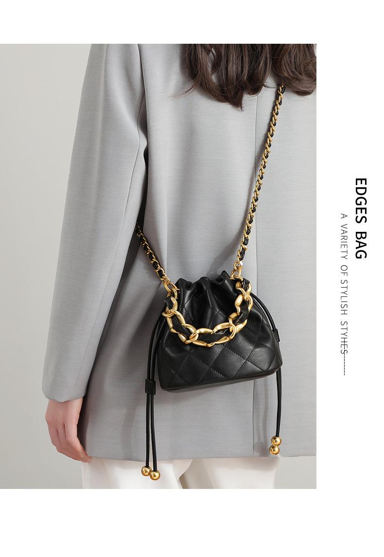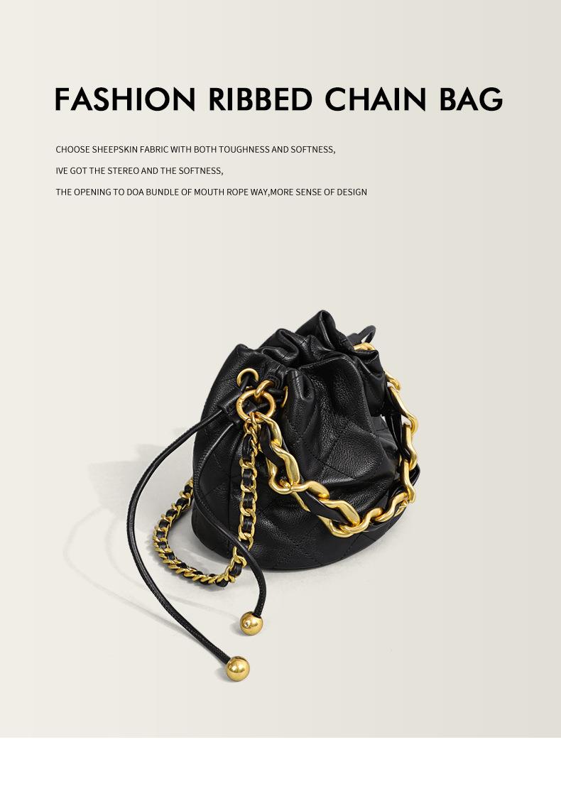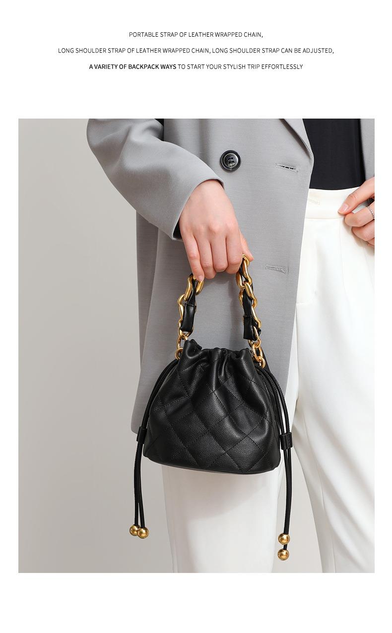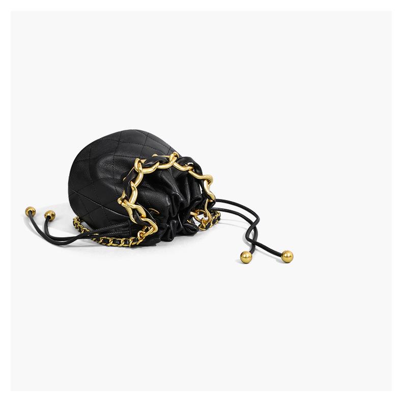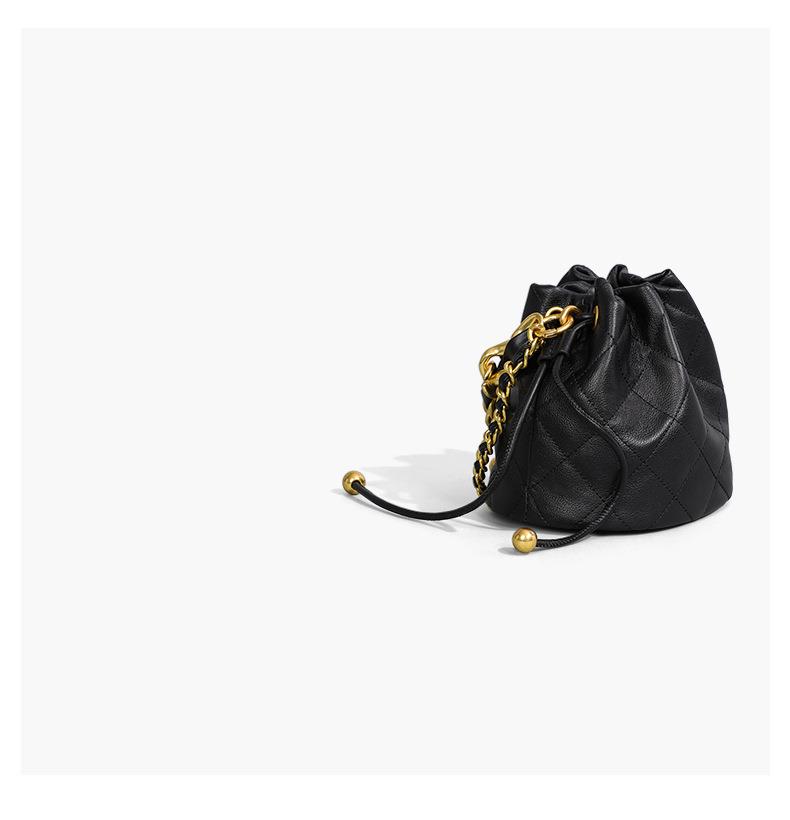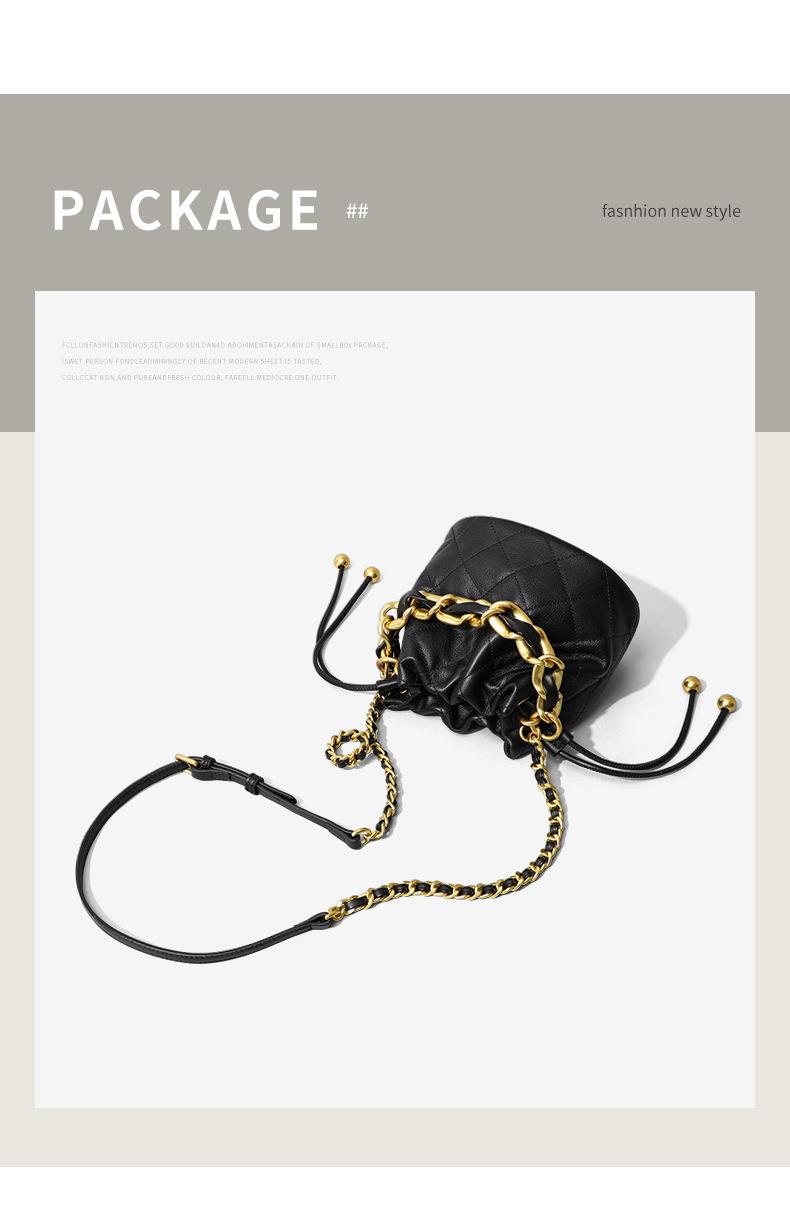 Viney包包新款高级质感时尚斜挎水桶包迷你手提单肩链条真皮女包
