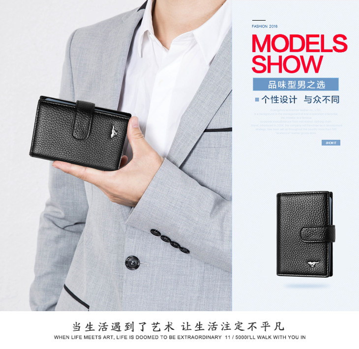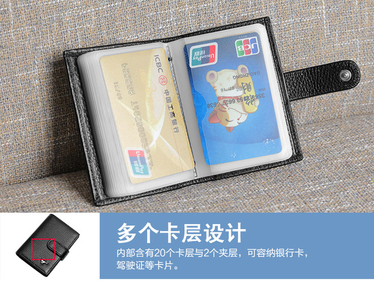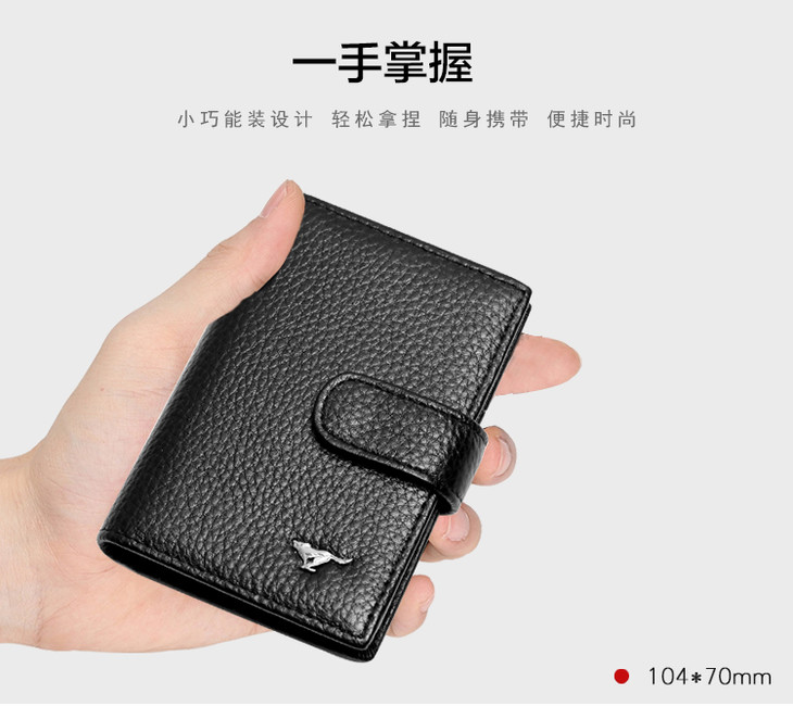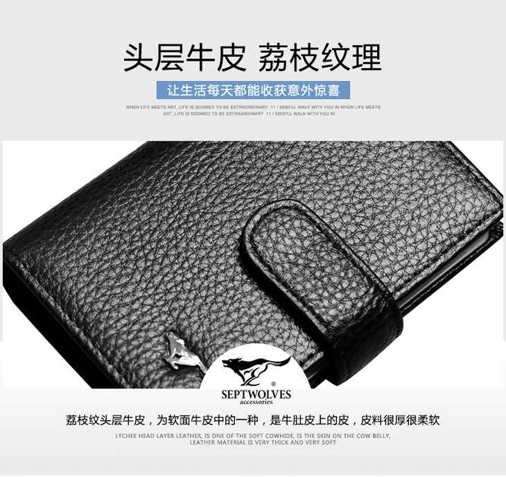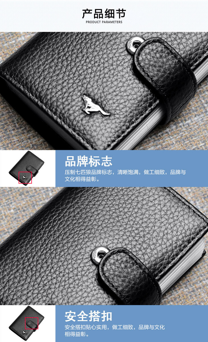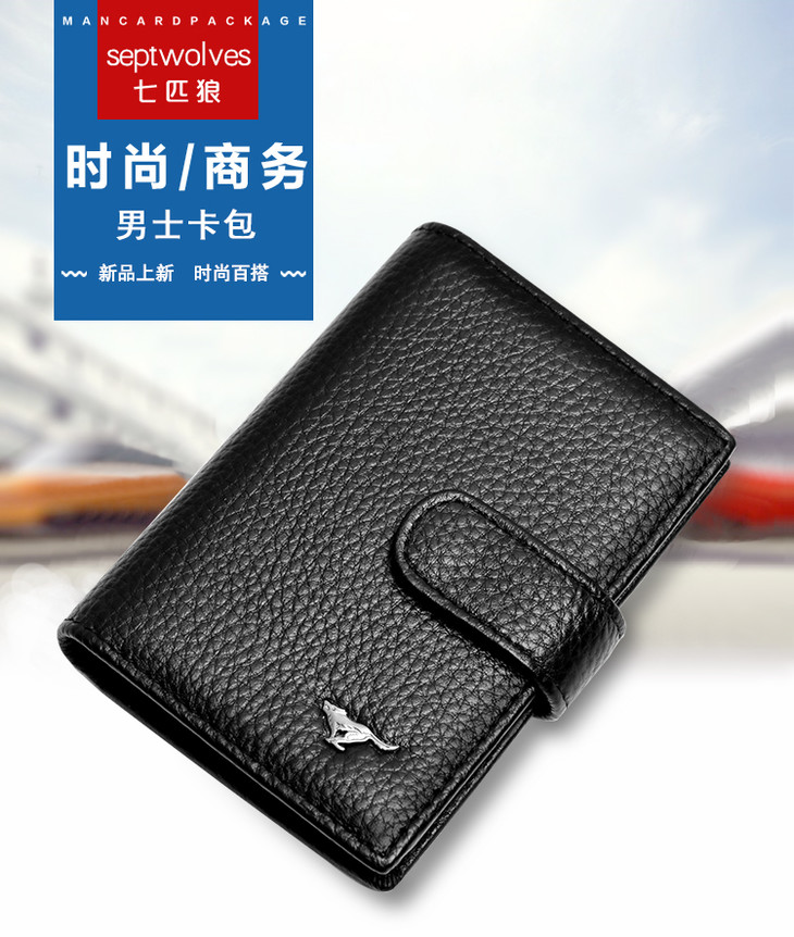 七匹狼 男士卡包卡片包 多功能多卡位银行卡夹头层牛皮信用卡套 大容量证件包 黑色3A3074231-01
