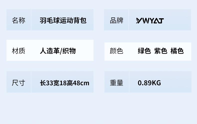 YWYAT/威亚拓羽毛球包网球运动健身包游泳双肩背包训练高中大学