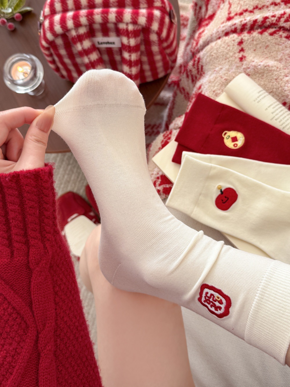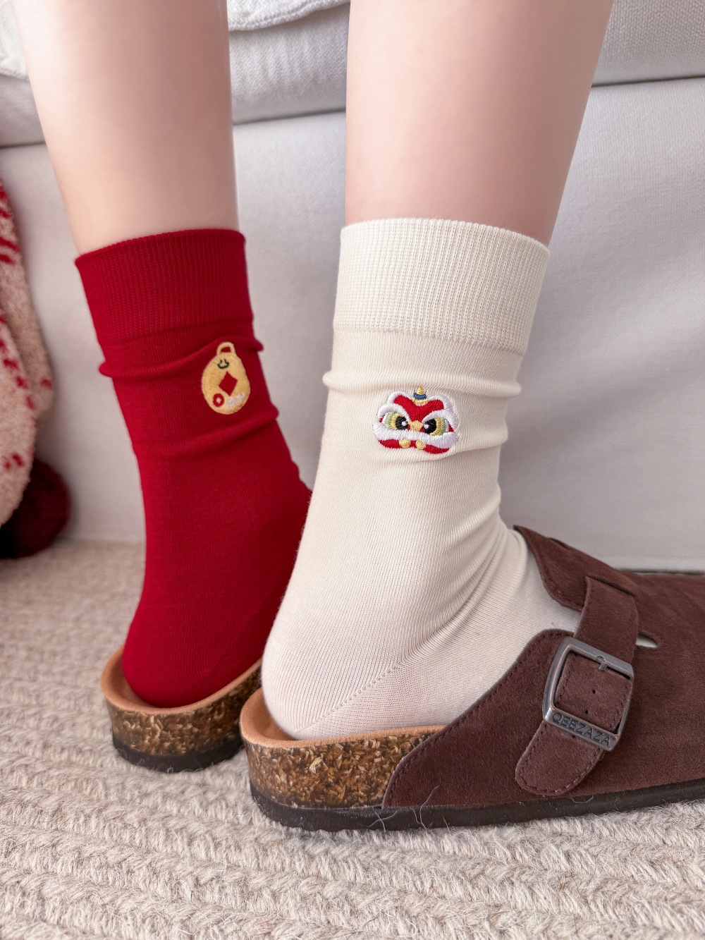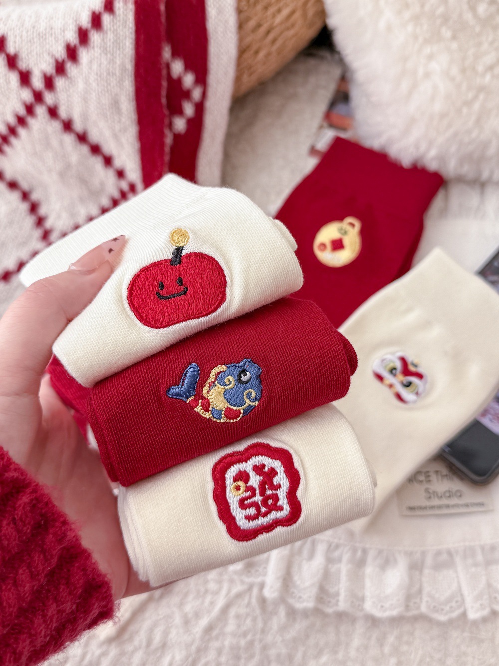 【平安喜乐❗️好运红袜】无骨锦鲤刺绣本命年大红新年袜子女醒狮发财平安喜乐学院风鸿运袜。jb