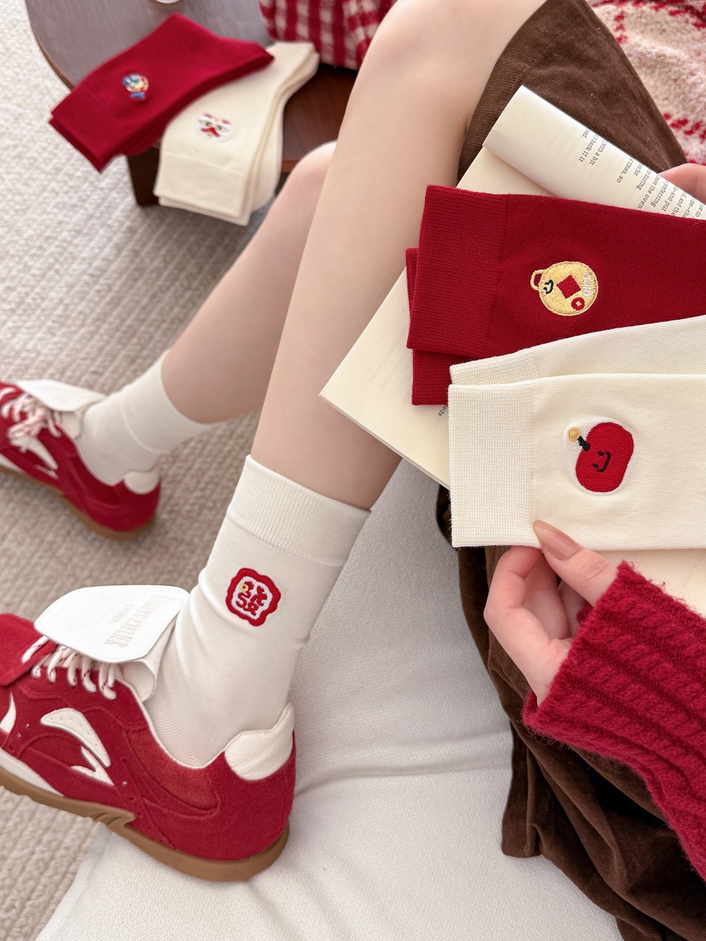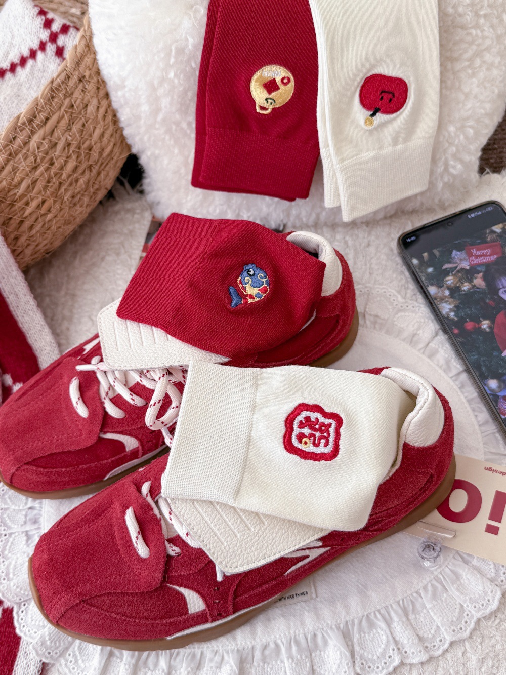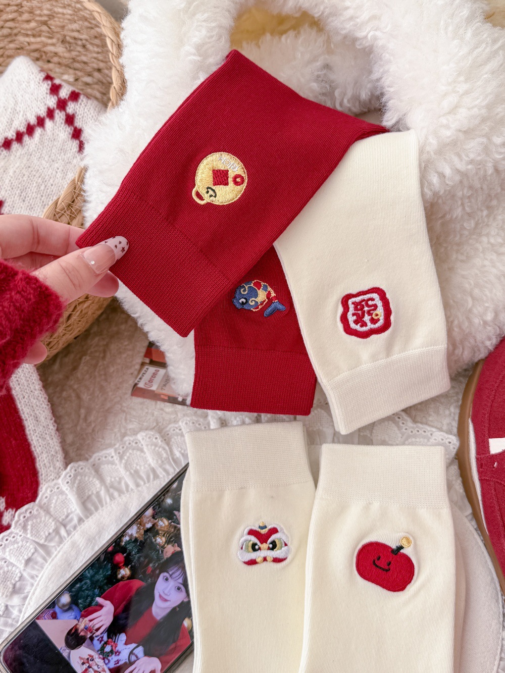 【平安喜乐❗️好运红袜】无骨锦鲤刺绣本命年大红新年袜子女醒狮发财平安喜乐学院风鸿运袜。jb