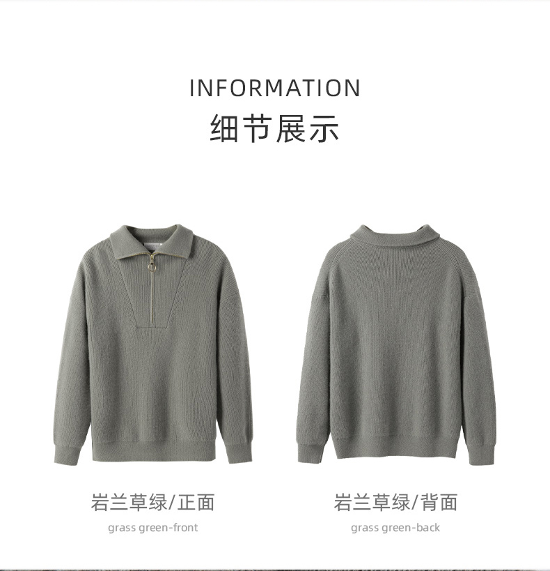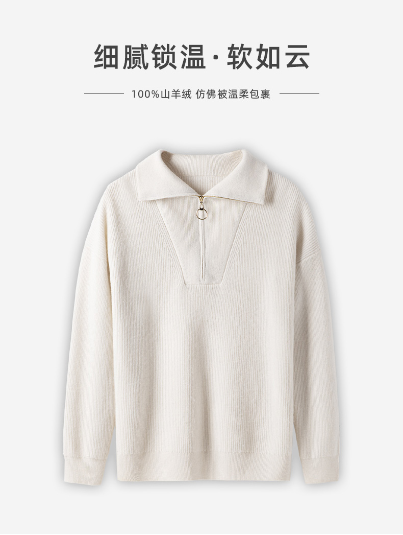 羚荌渼半高领拉链廓形加厚女羊绒衫