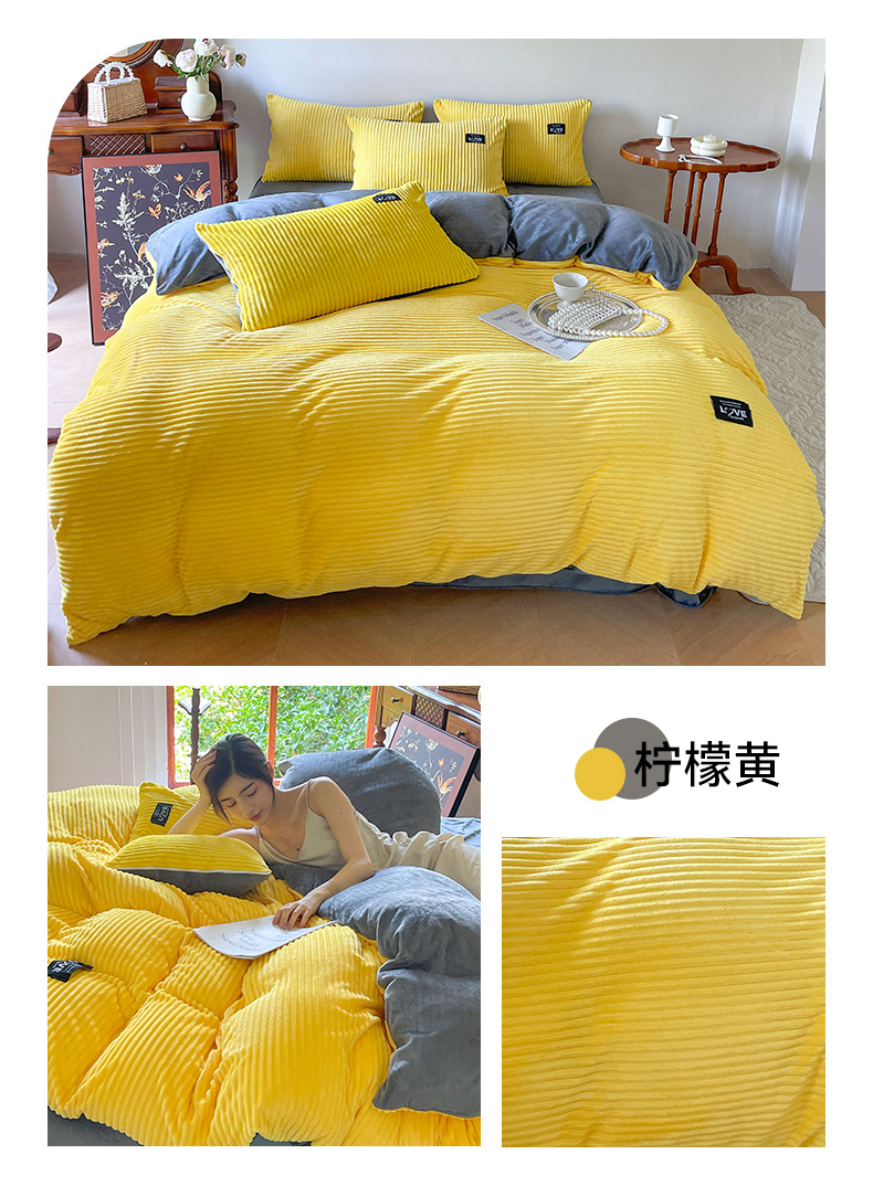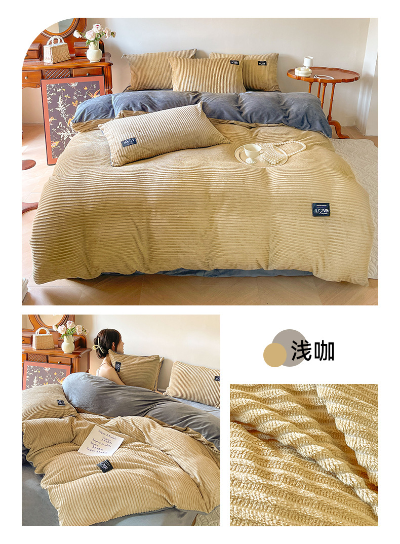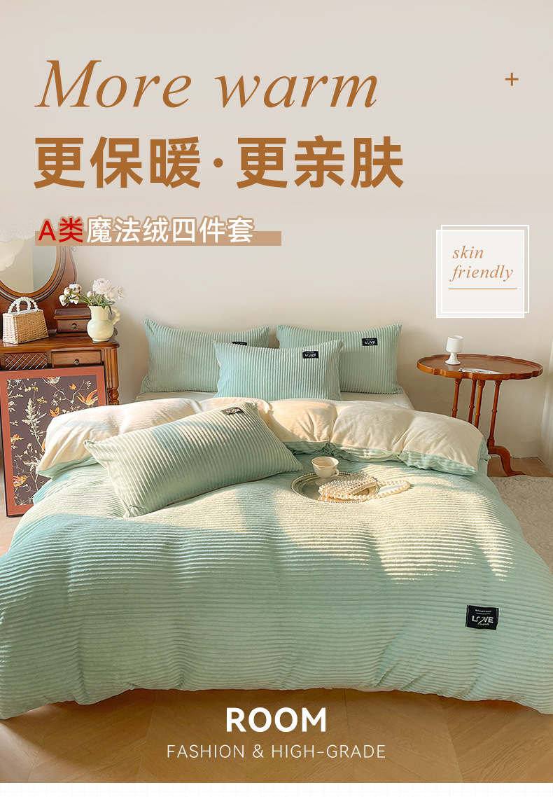 【床笠款牛奶魔法绒四件套】暖冬新品A类牛奶魔法绒四件套冬季保暖加厚双面纯色