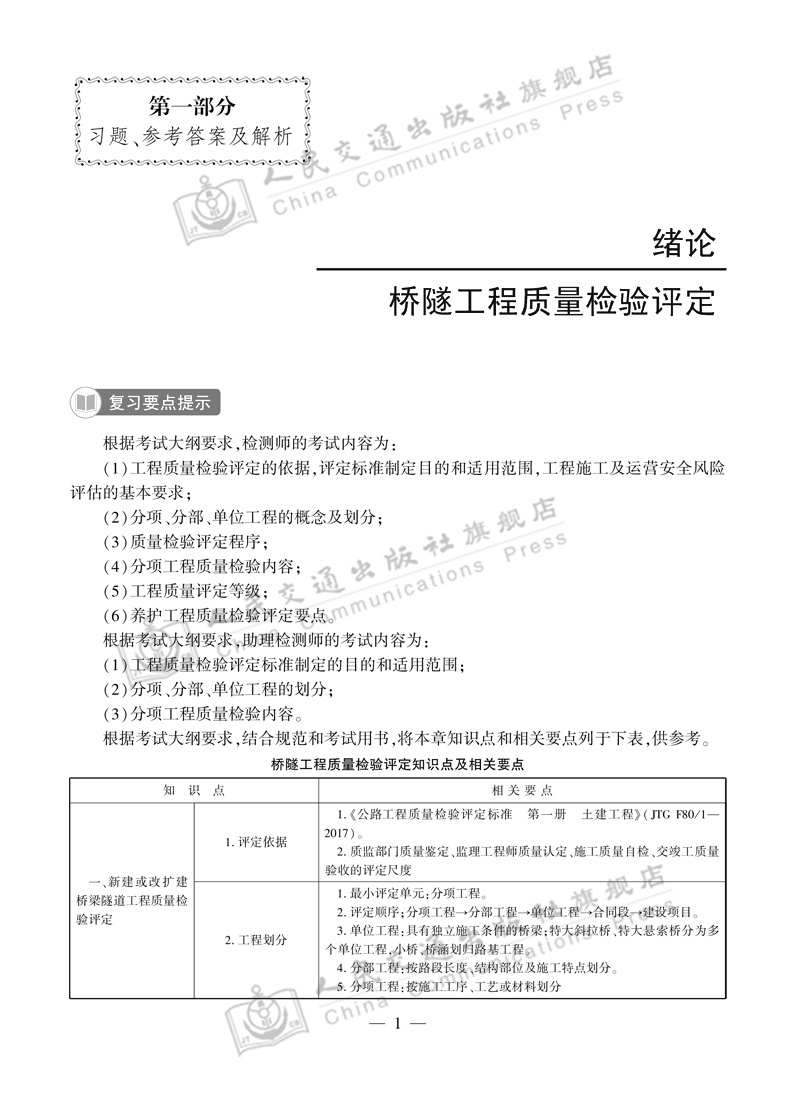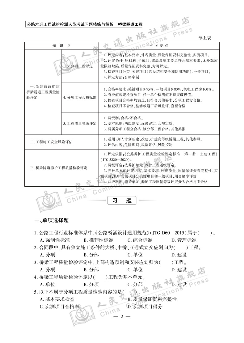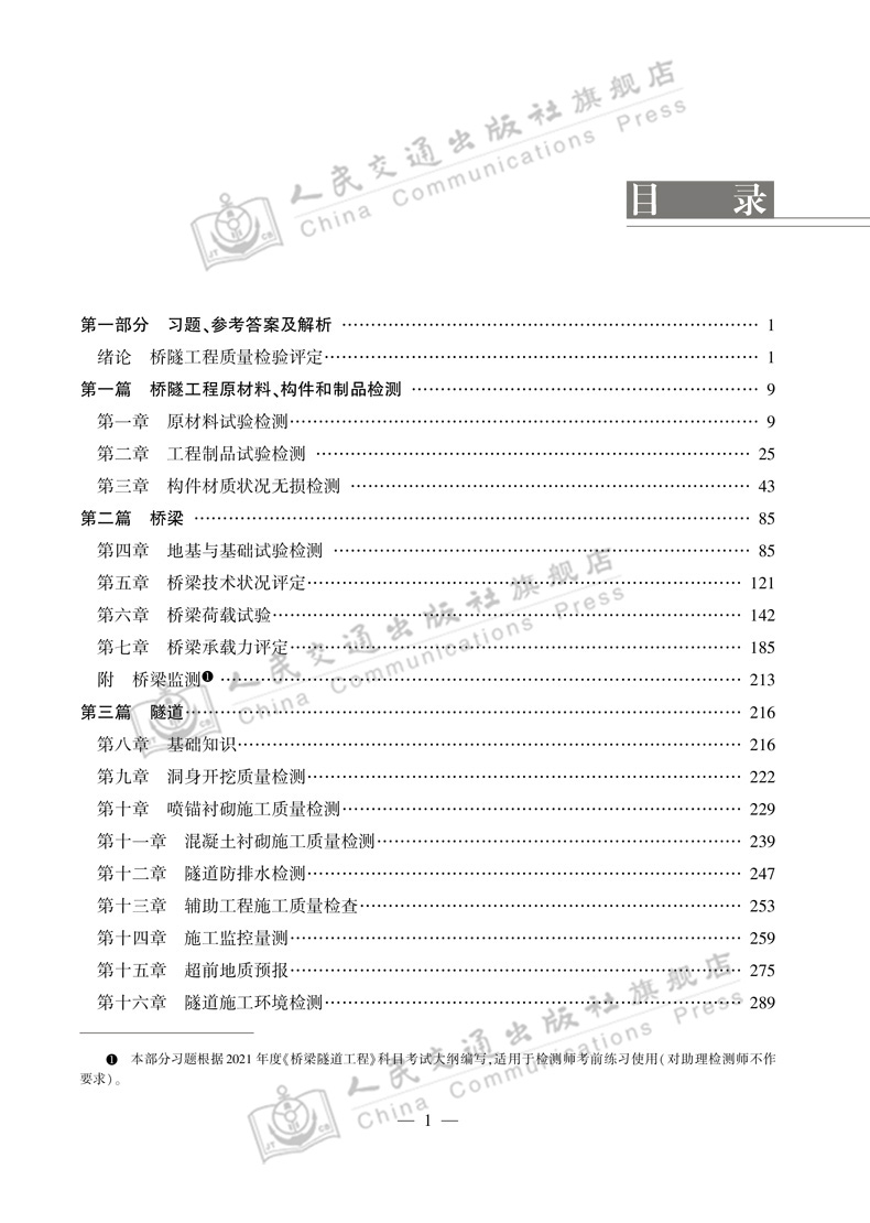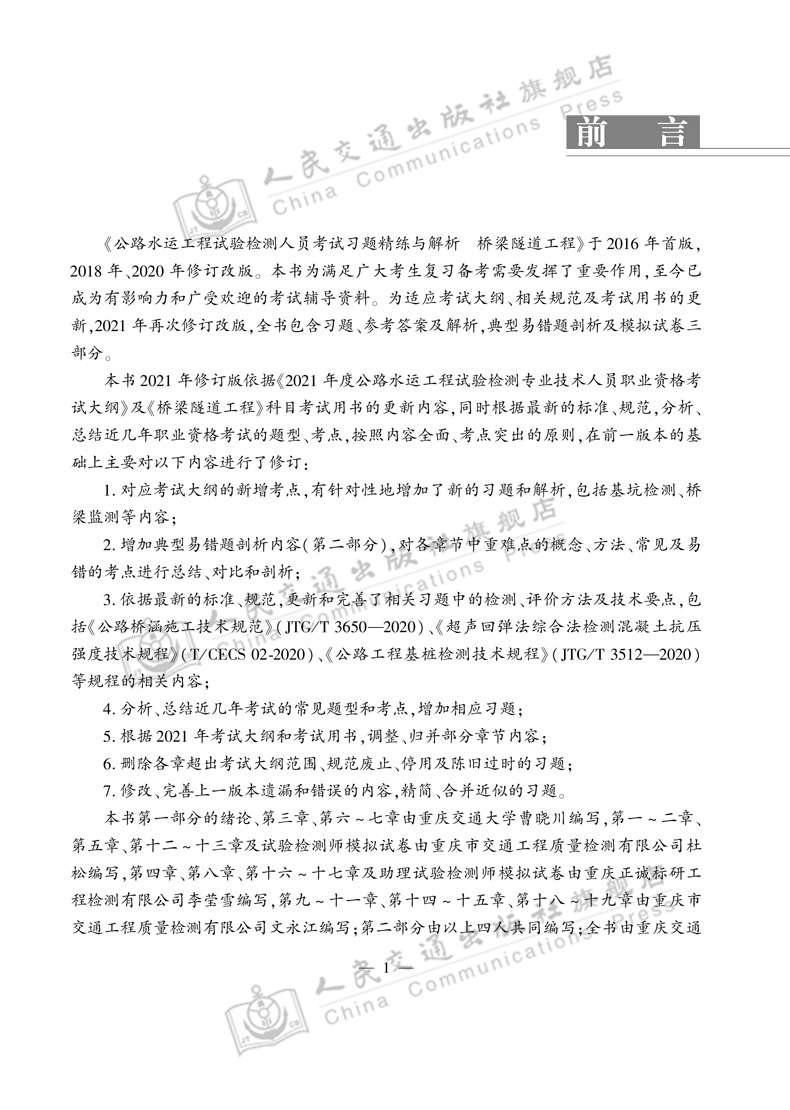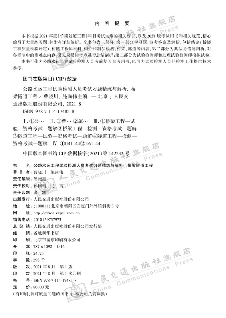书名:2021公路水运工程试验检测人员考试习题精练与解析 桥梁隧道工程