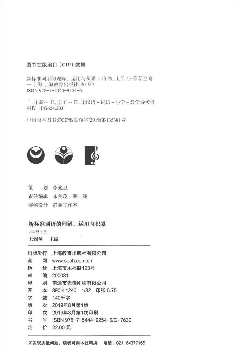 部编版 新标准词语的理解运用与积累 4年级上册/四年级第一学期 语文 与统编本新教材配套使用 上海小学教材教辅 上海教育出版社